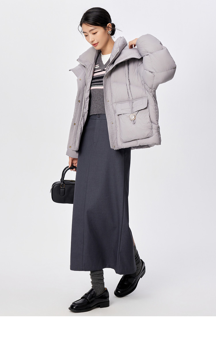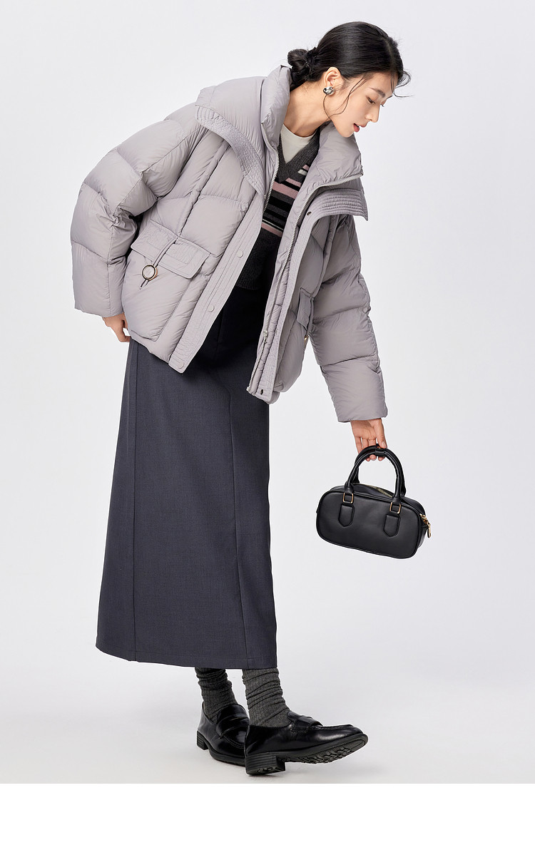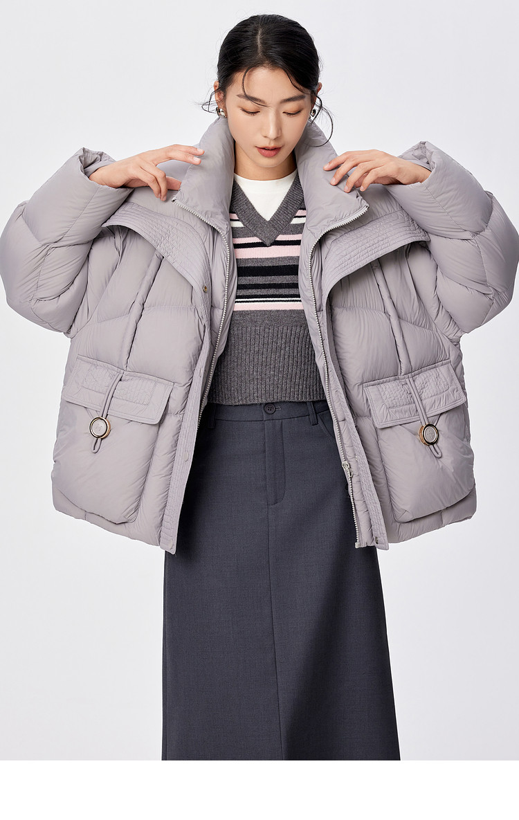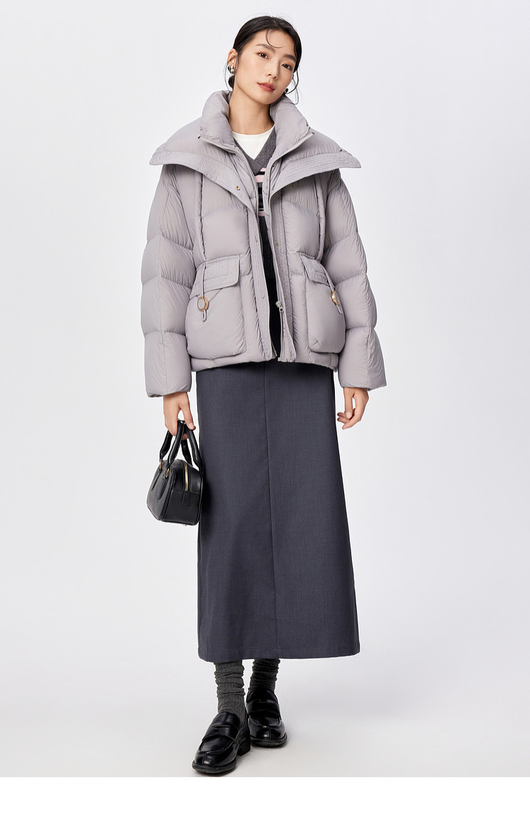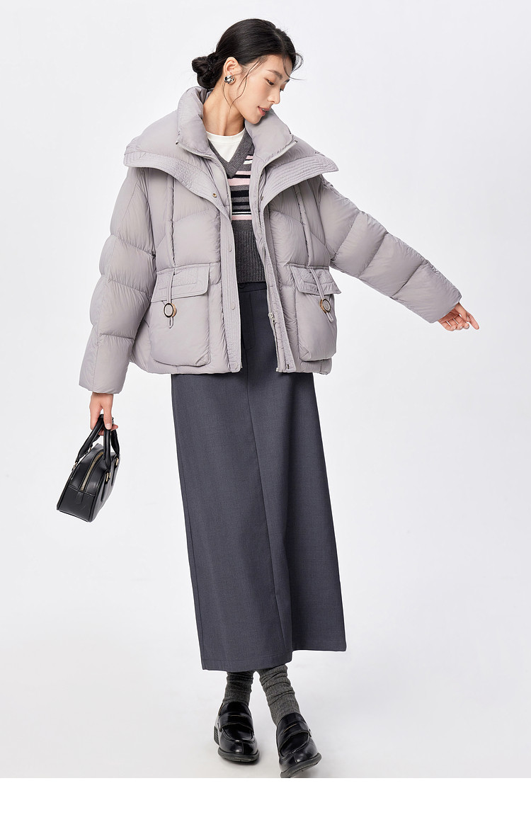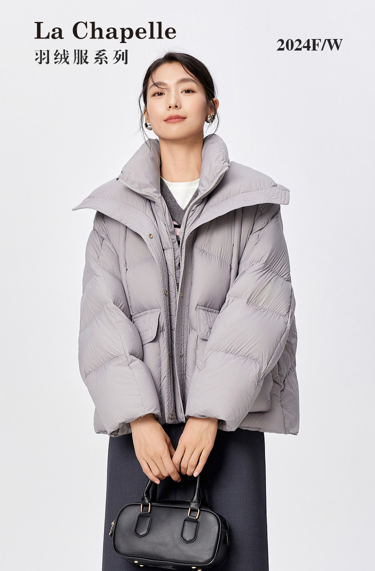 La Chapelle Gray Large Lapel Down Jacket Women's 2025 Winter New Korean Style Loose Thickened Warm Bread Jacket