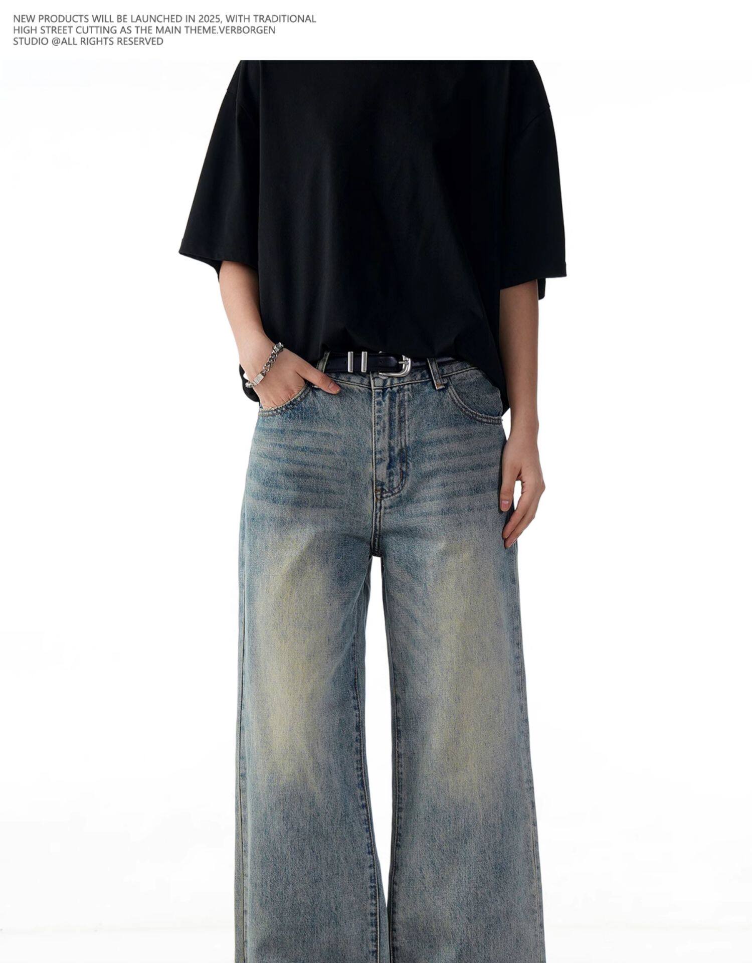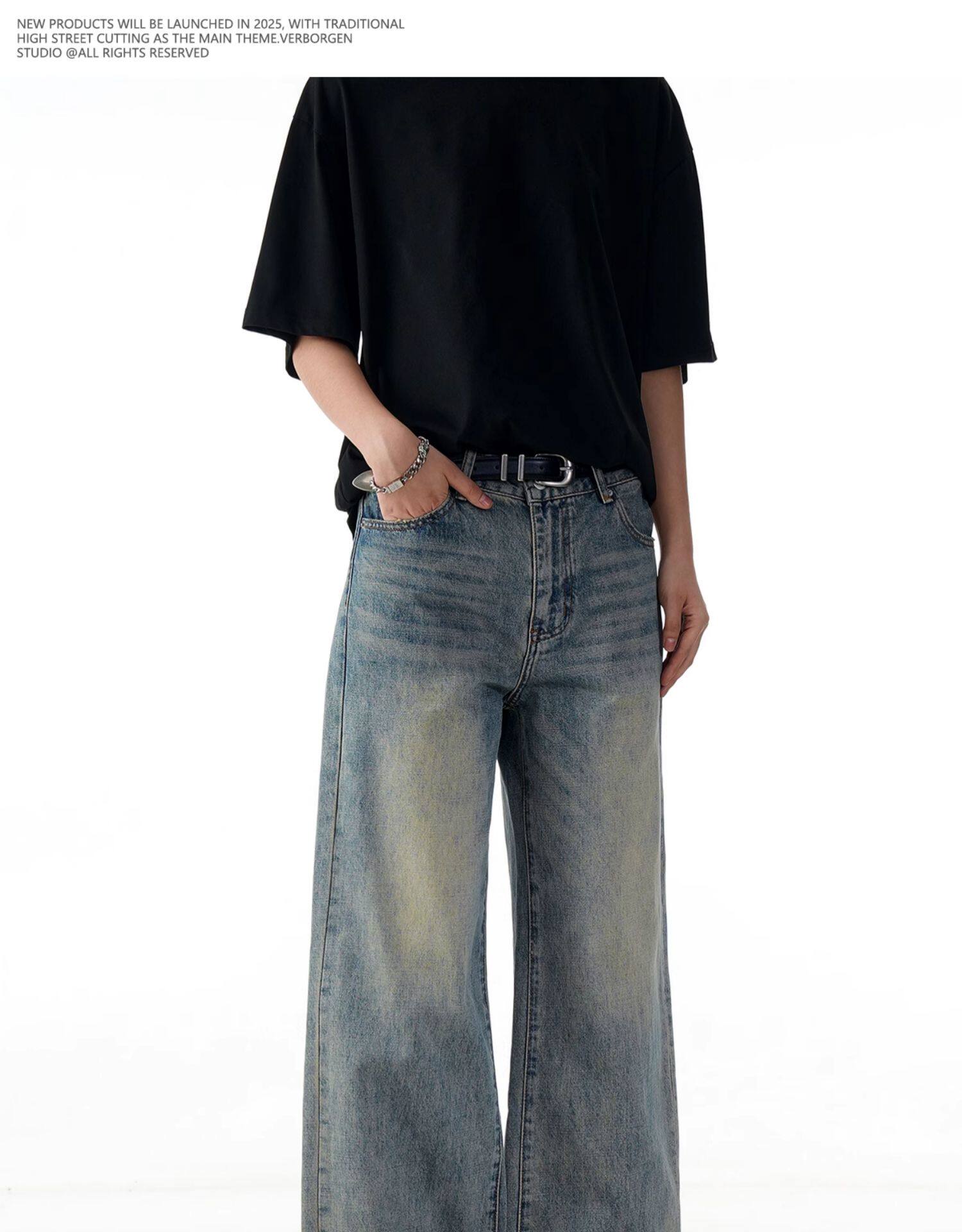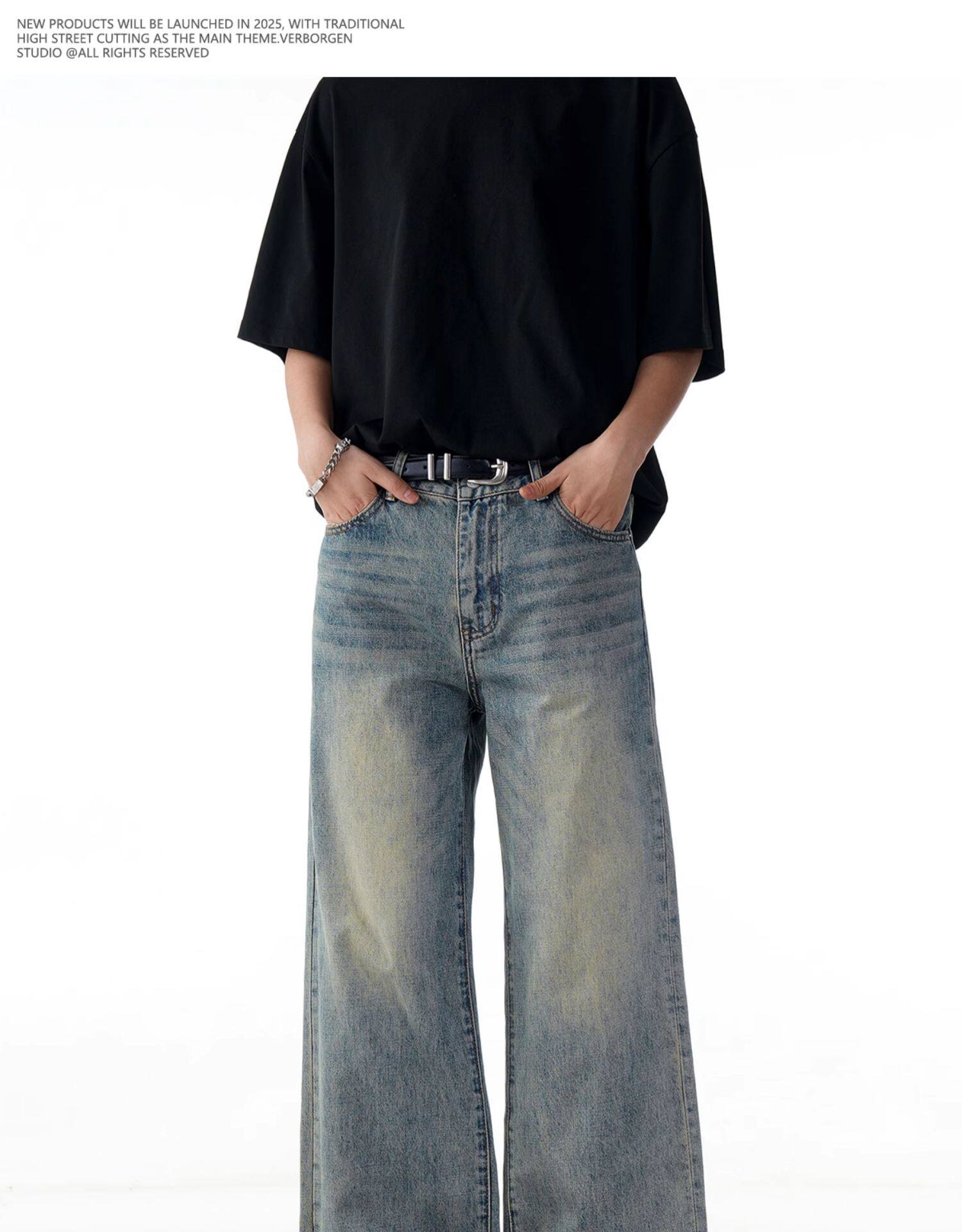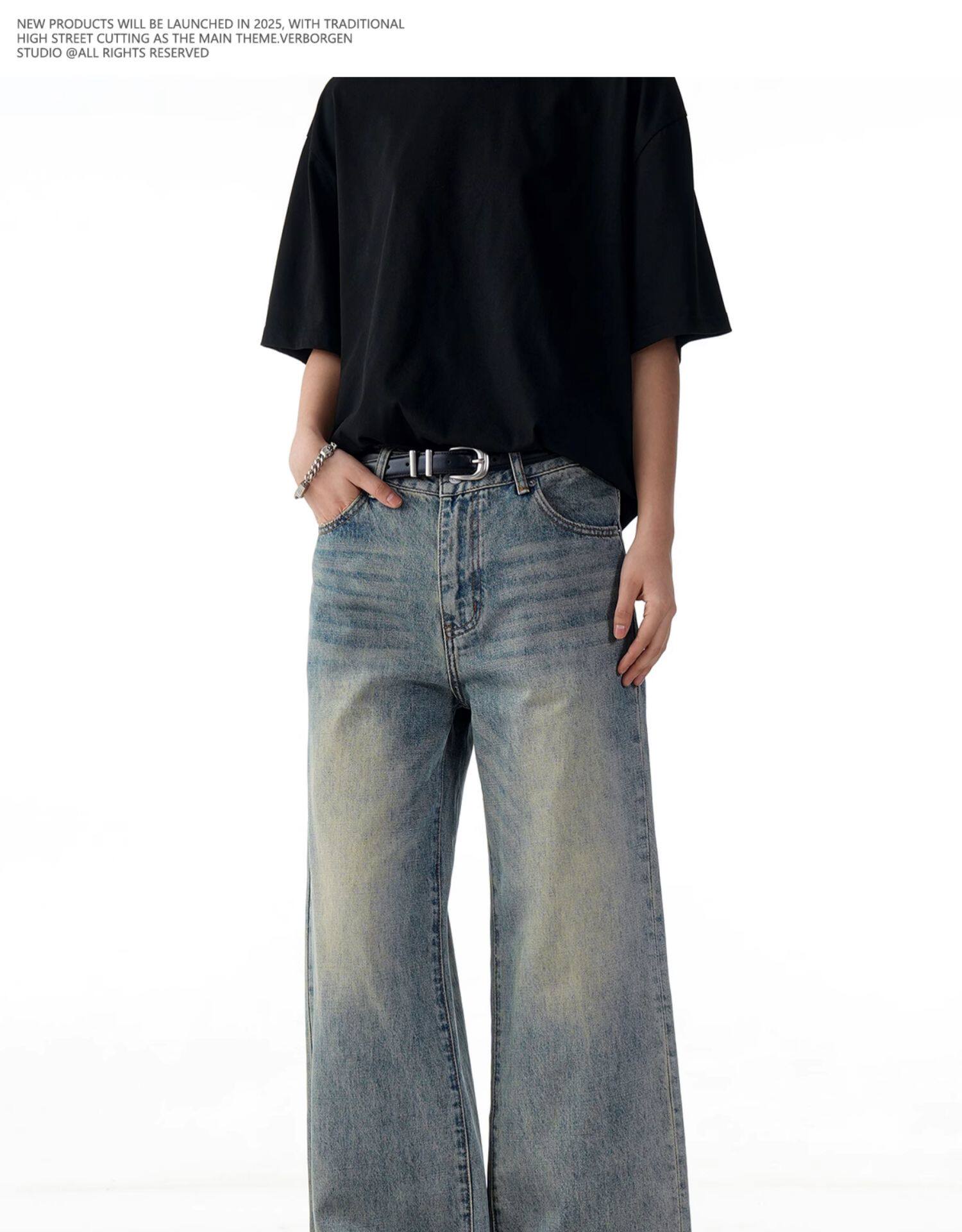 Verborgen American Retro Washed Distressed Straight-Leg Jeans Trendy Basic Versatile Cleanfit Pants