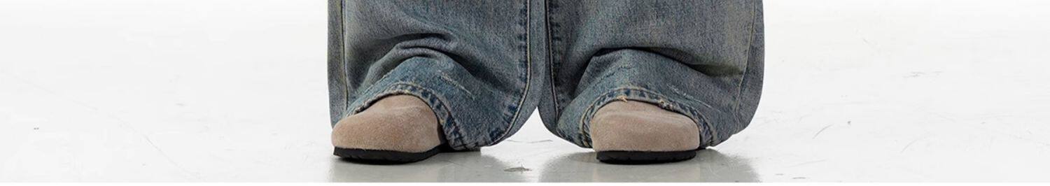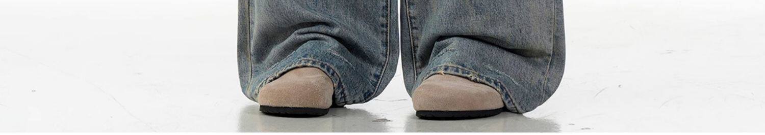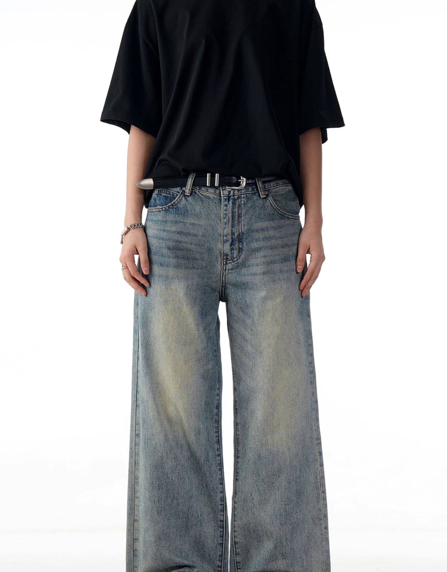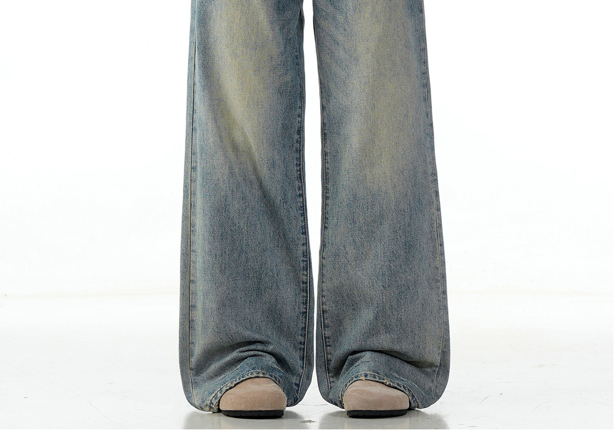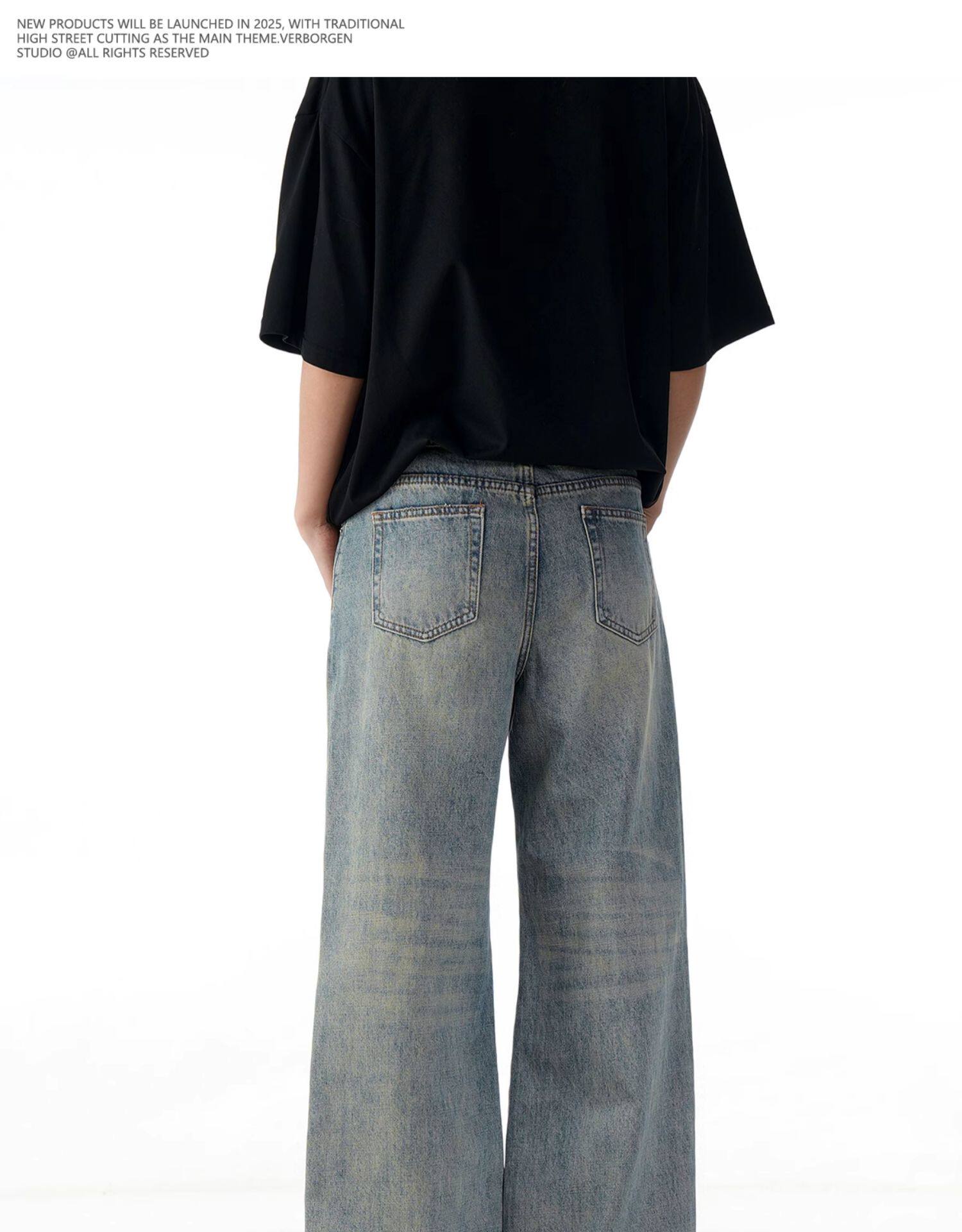 Verborgen American Retro Washed Distressed Straight-Leg Jeans Trendy Basic Versatile Cleanfit Pants