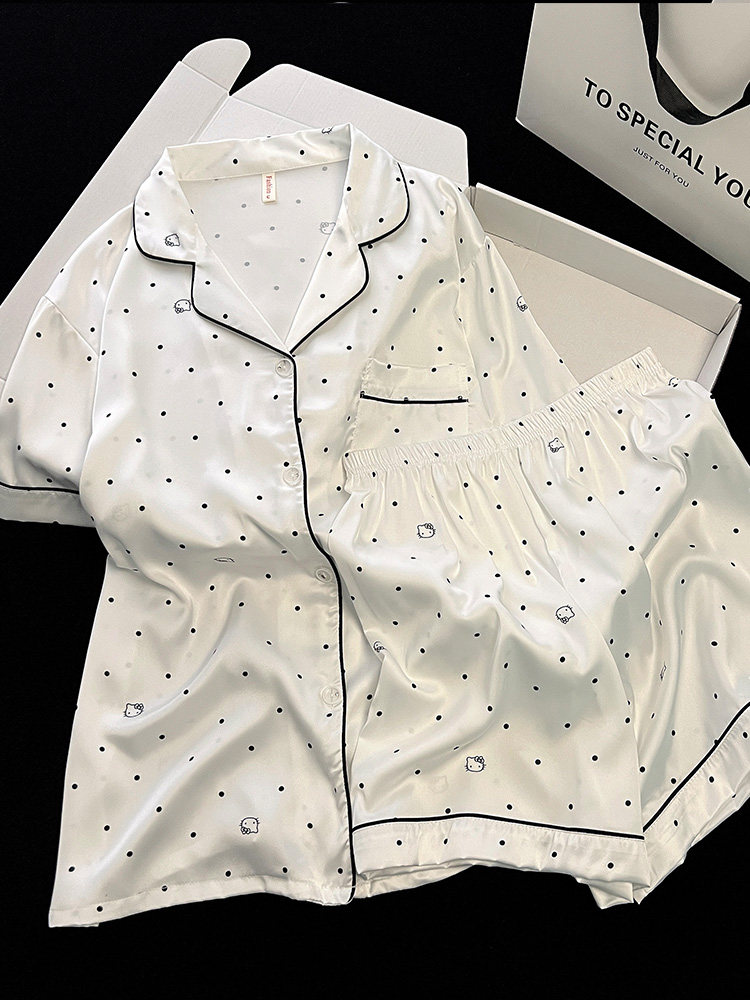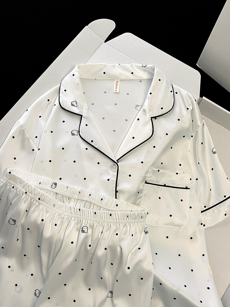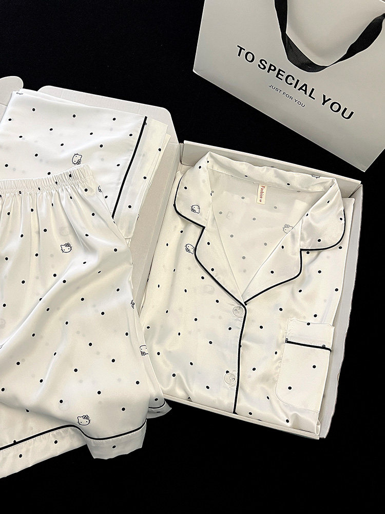 2026 new polka dot pajamas for women, summer ice silk short-sleeved three-piece set, high-end, sweet, can be worn outside, thin home clothes
