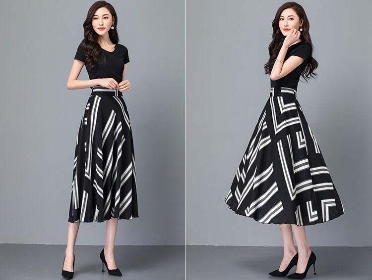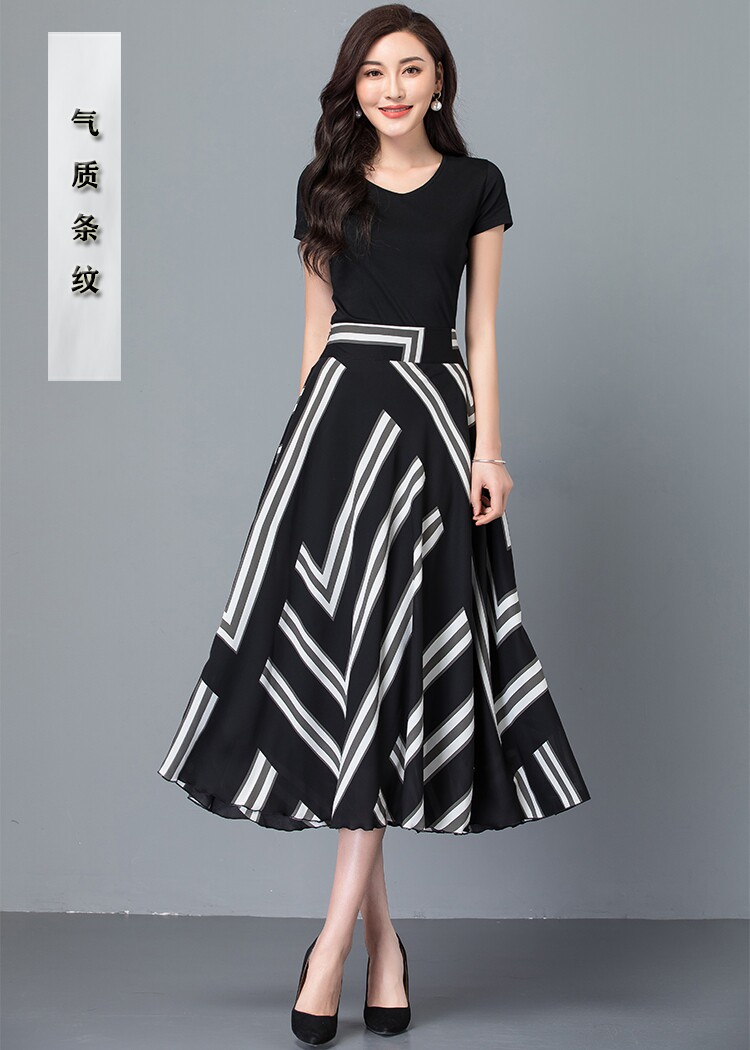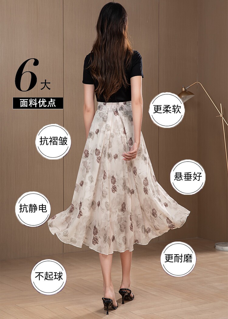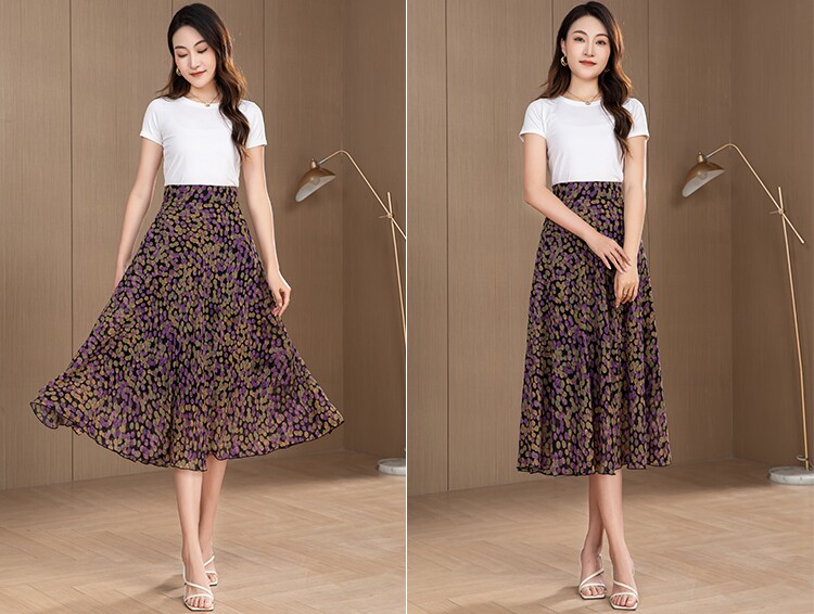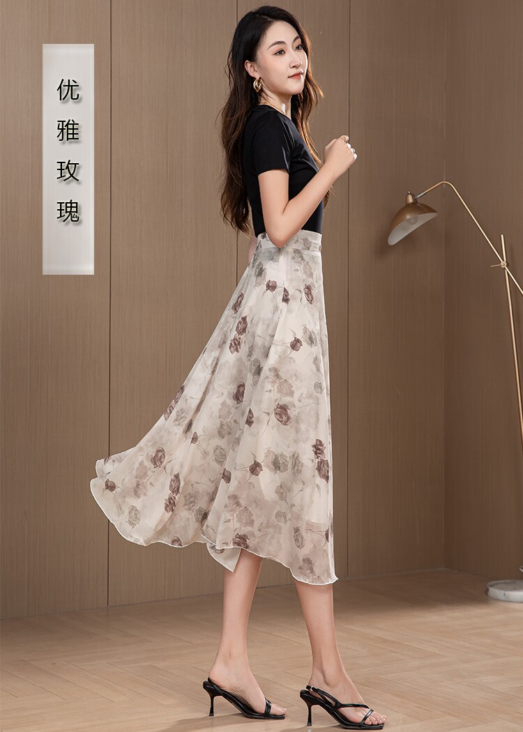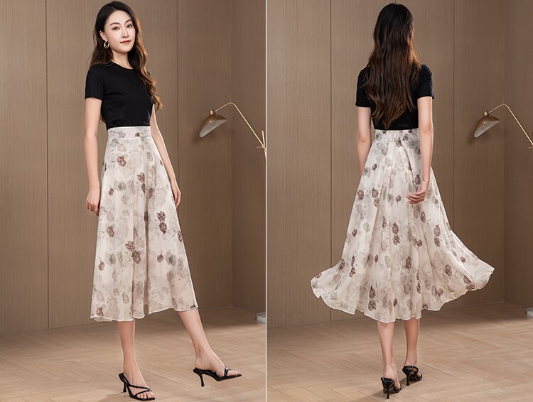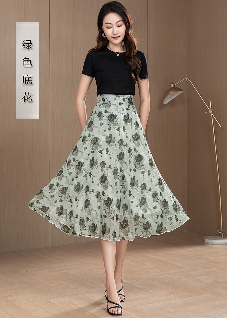 Skirt Women's Summer Mid-Length New Style Fresh Printed A-Line Skirt Slimming Look over the Knee Draped Holiday Chiffon Women's Mid-Skirt