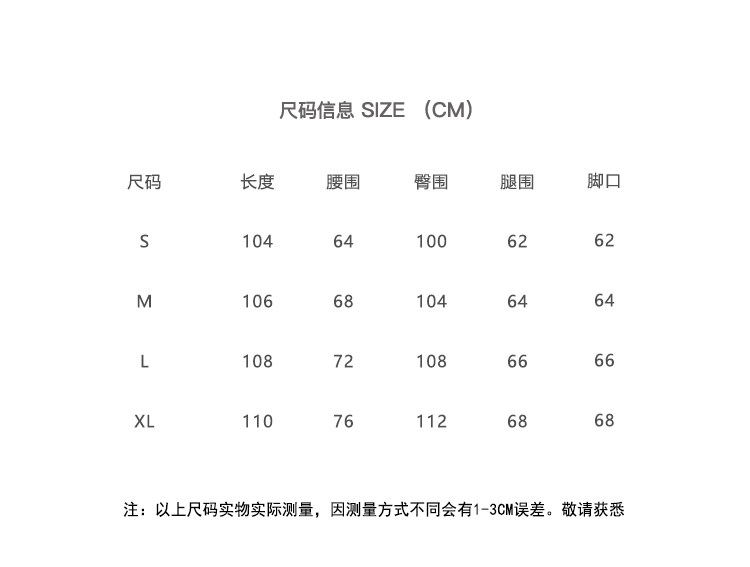 Outseam (cm) 99 cm 101.5 cm 104 cm 106.5 cm 109 cm