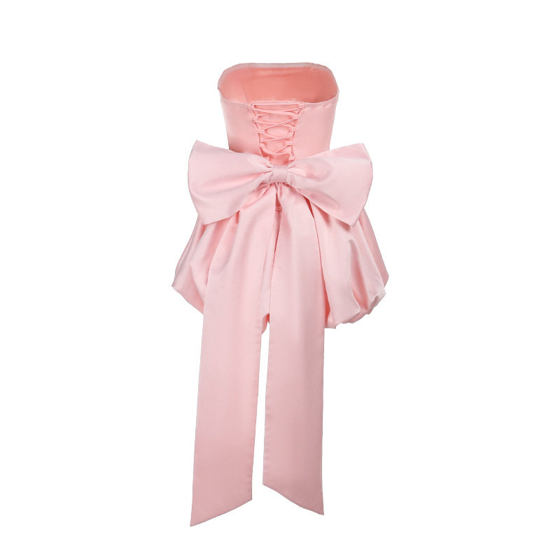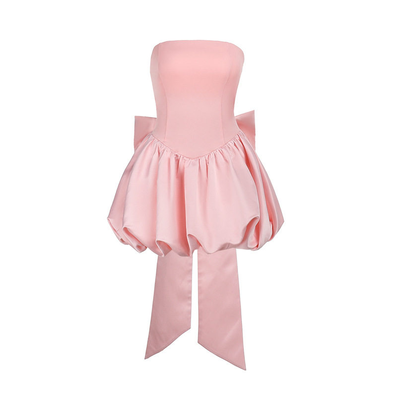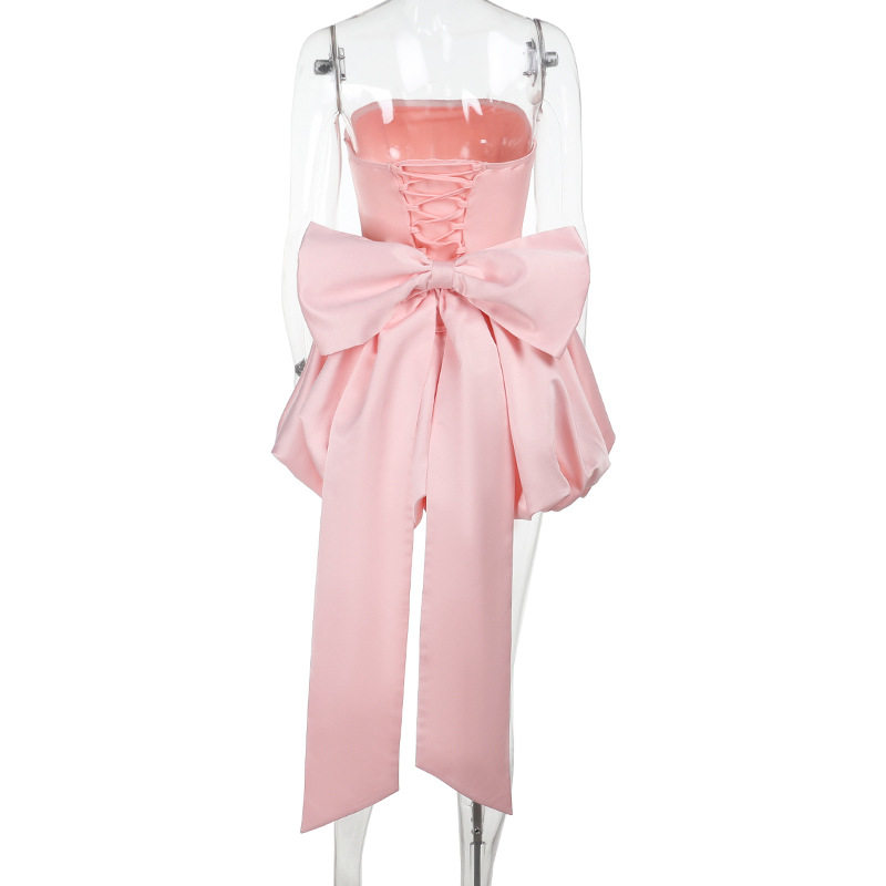 European and American birthday party dinner sexy slit dress bow tube top Sexy Evening Dress