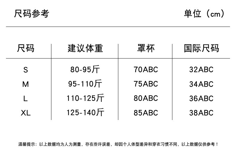 China (cm) 160-165/84-86 165-170 / 88-90 167-172 / 92-96 168-173 / 98-102 170-176 / 106-110