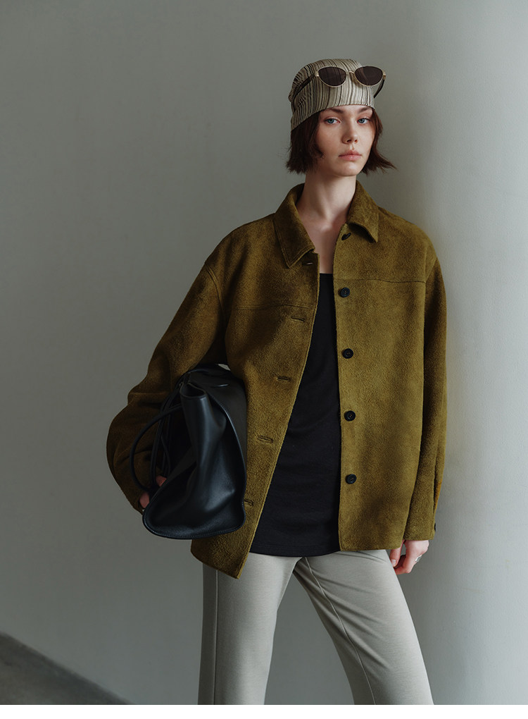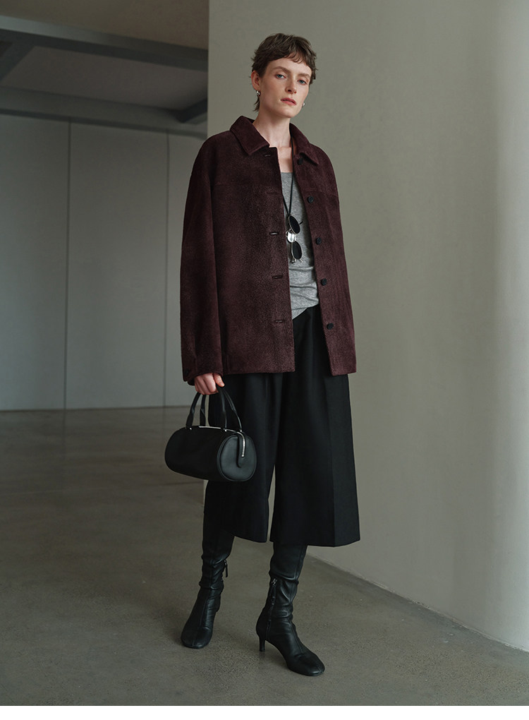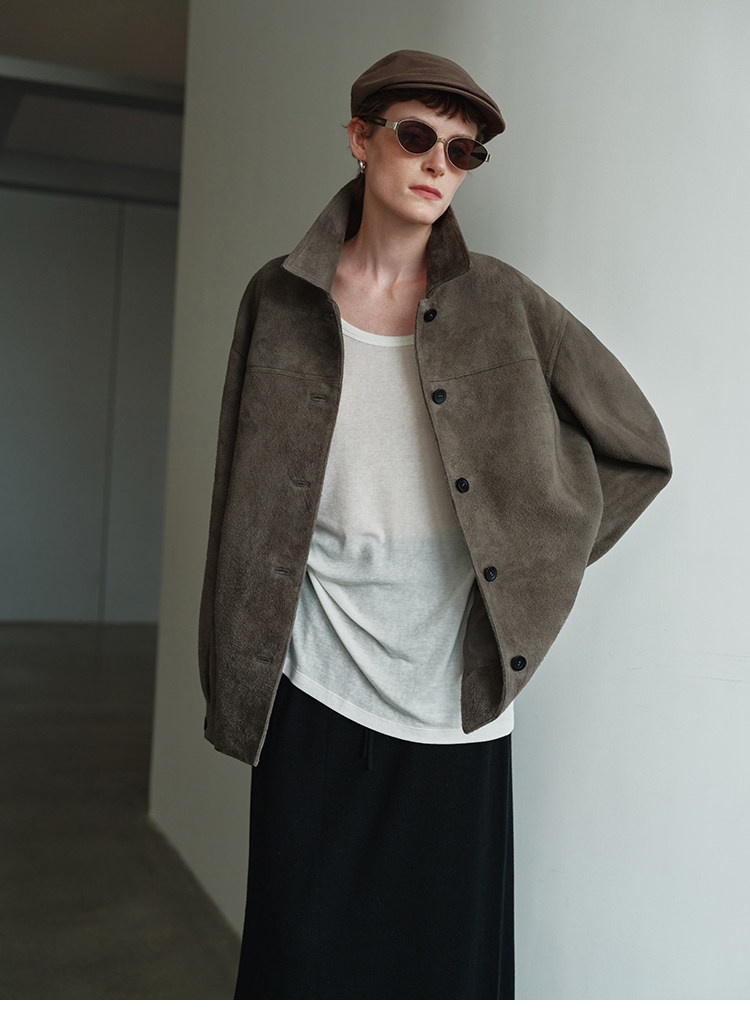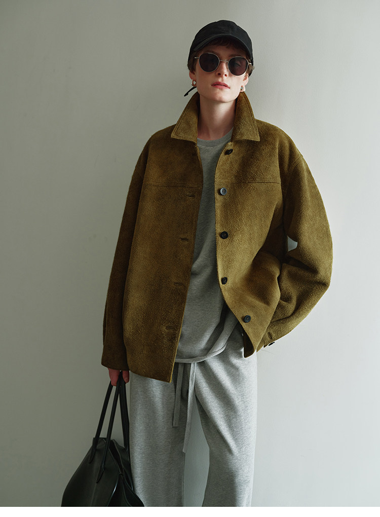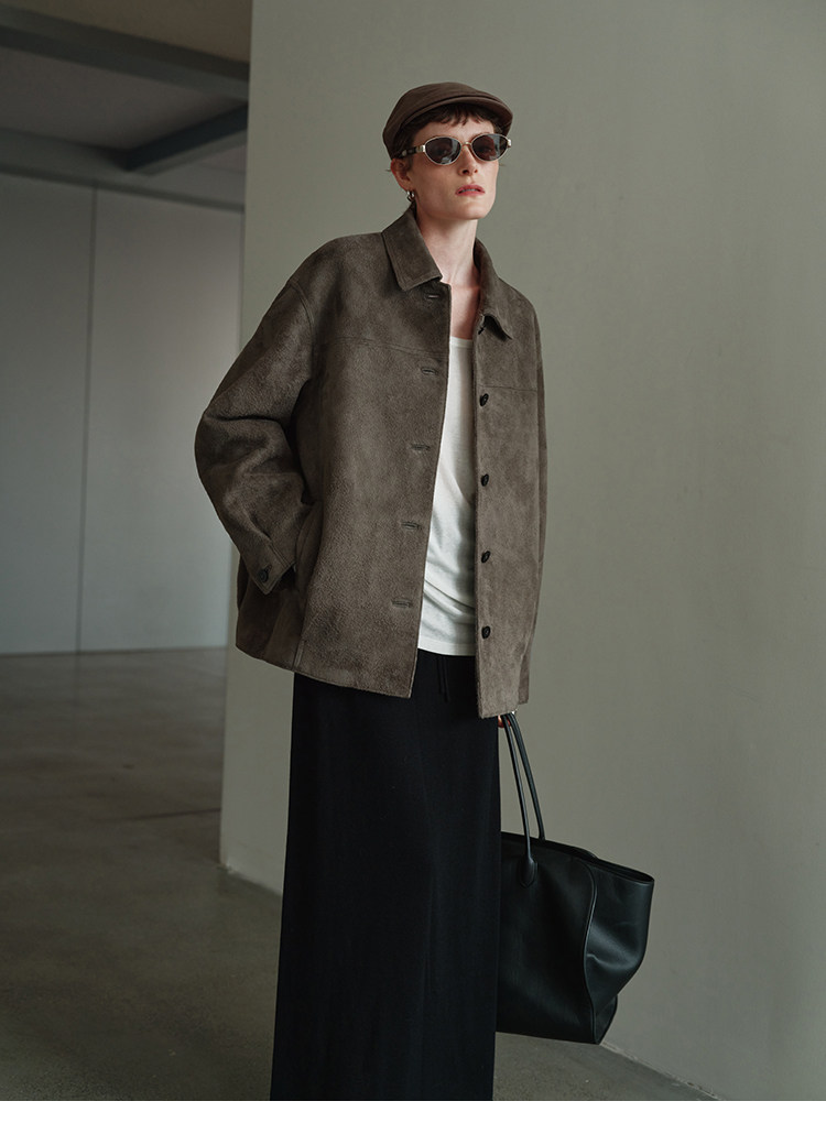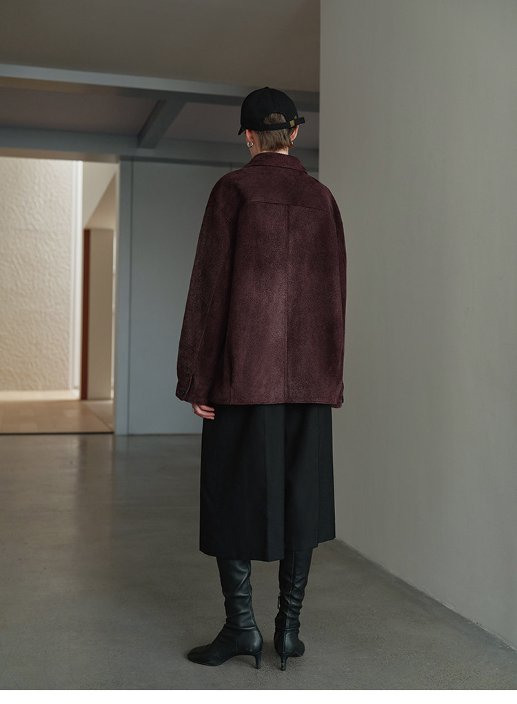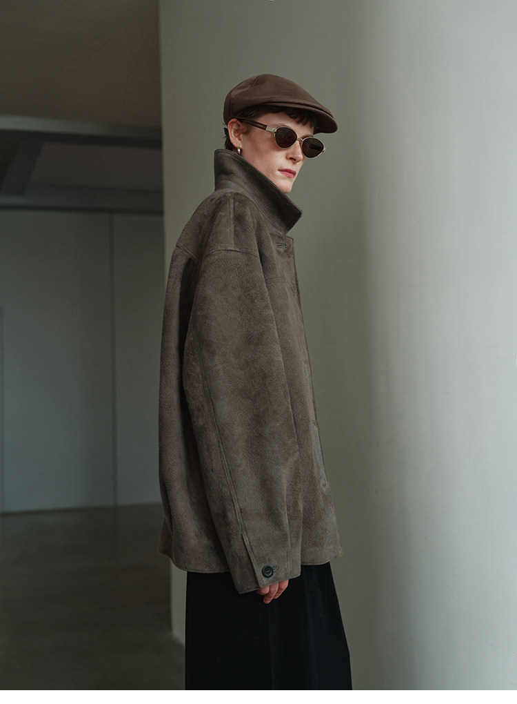 MSBEAST m1u homologous imported matte plush lambskin lapel silhouette jacket丨film leather jacket