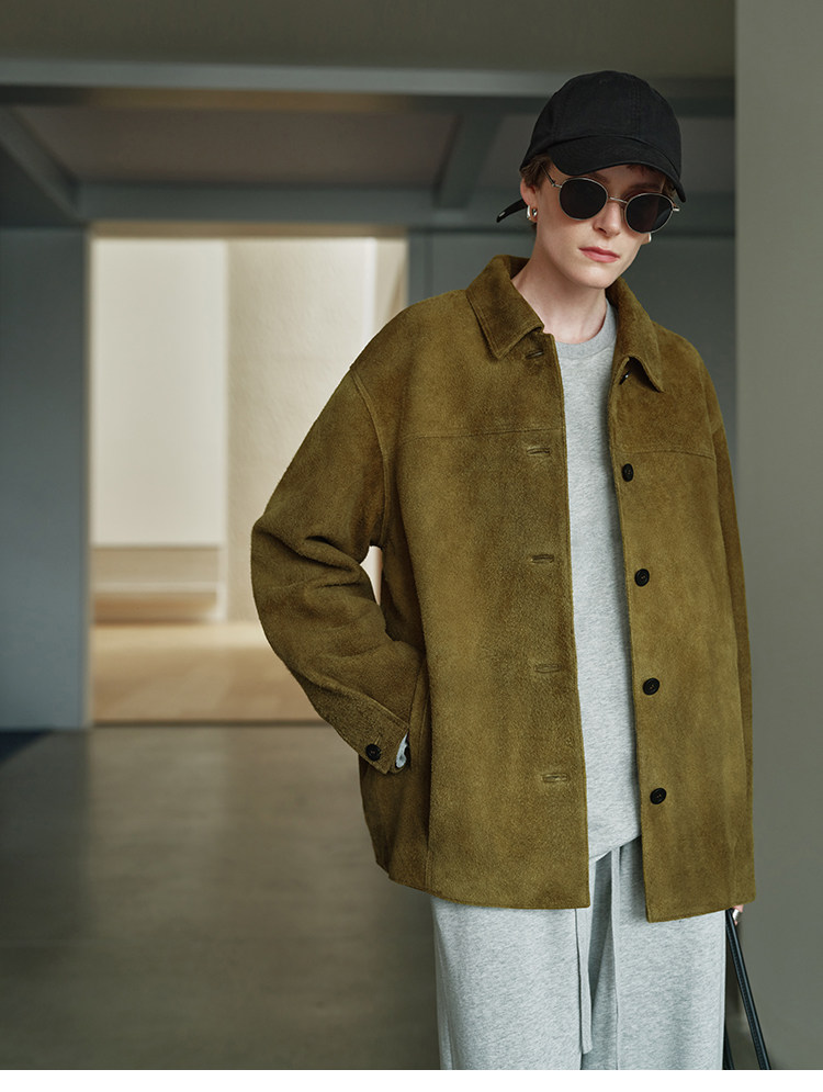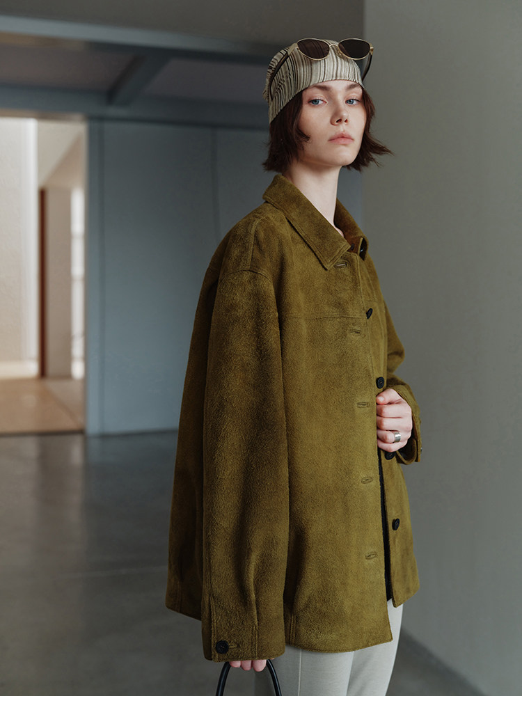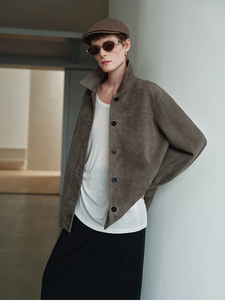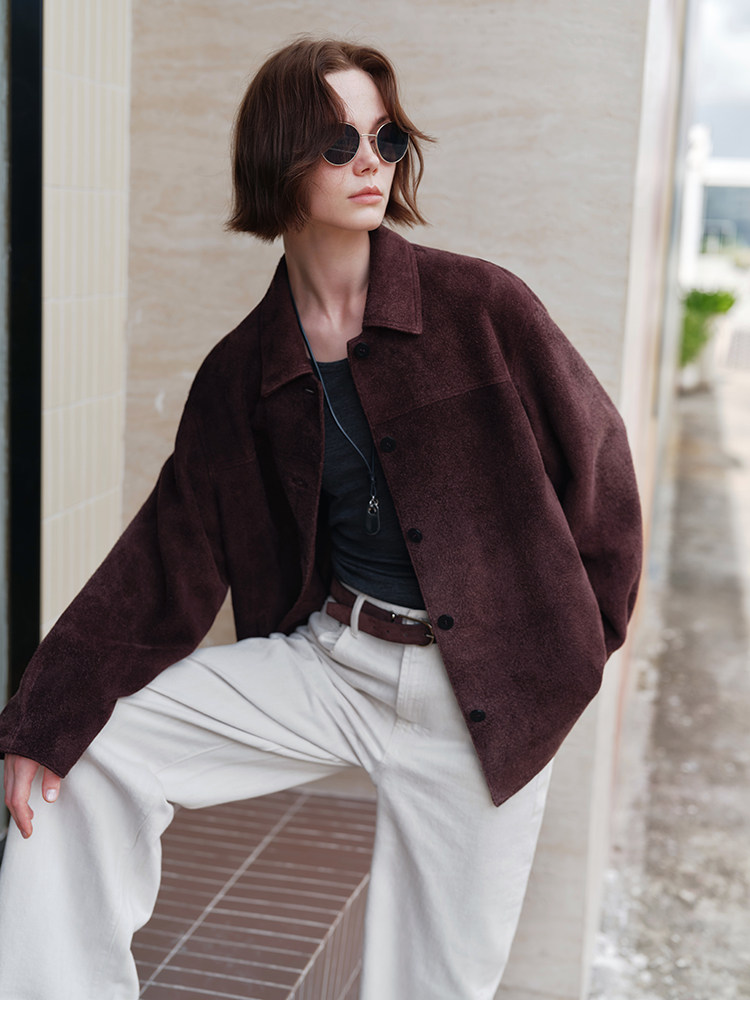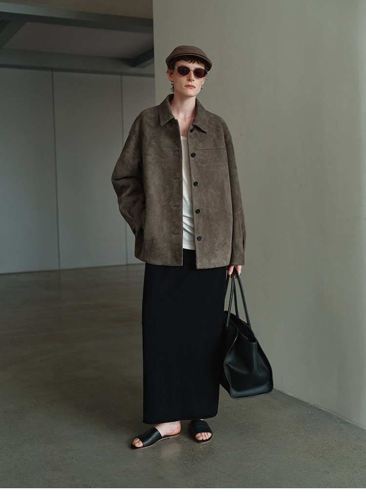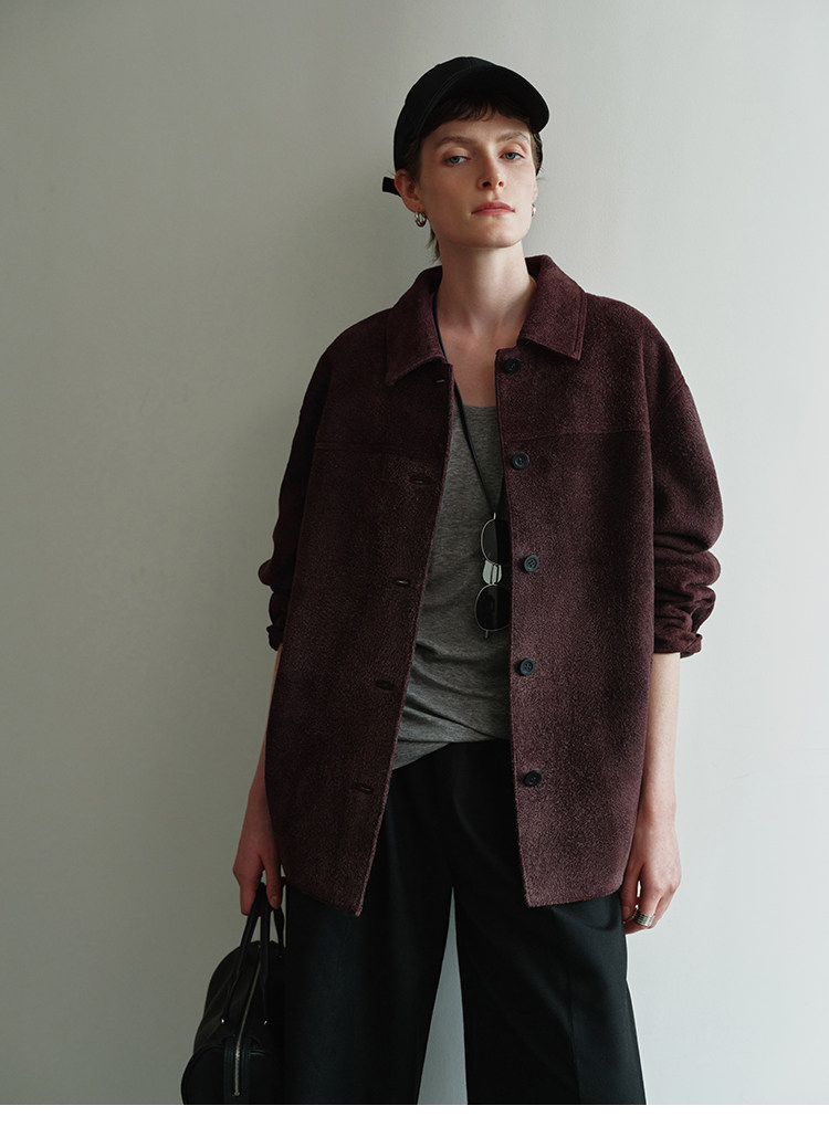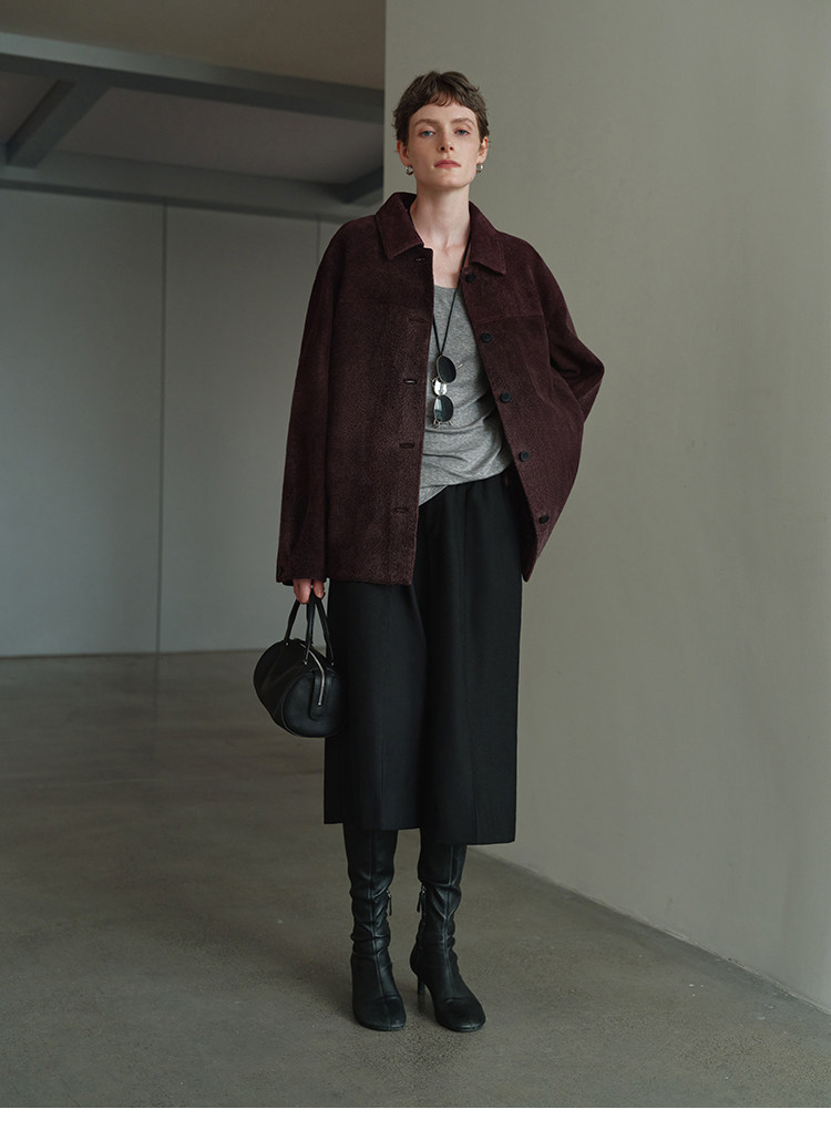 MSBEAST m1u homologous imported matte plush lambskin lapel silhouette jacket丨film leather jacket