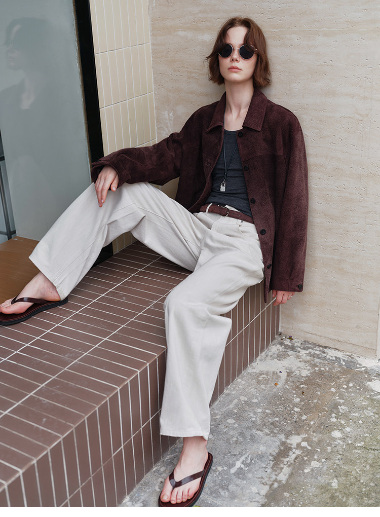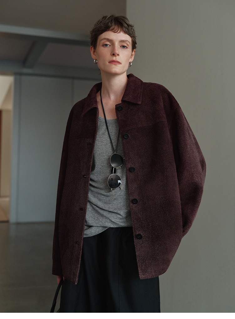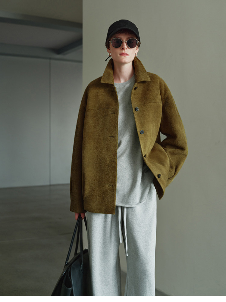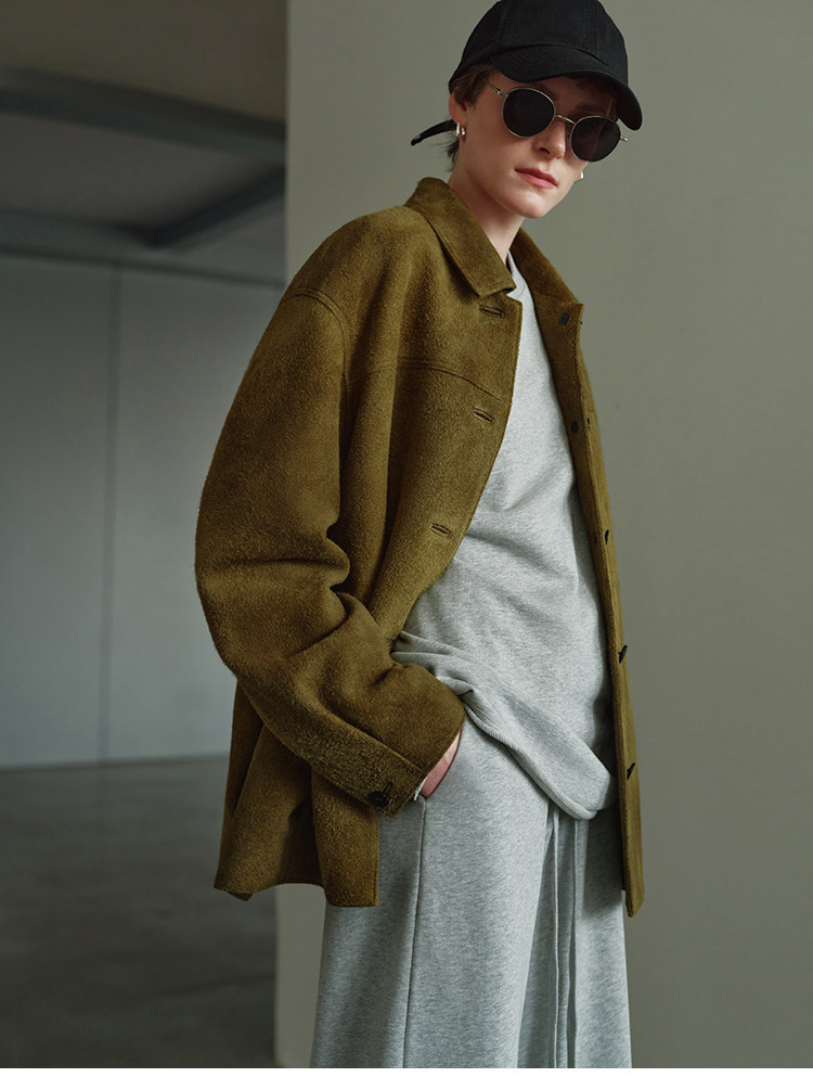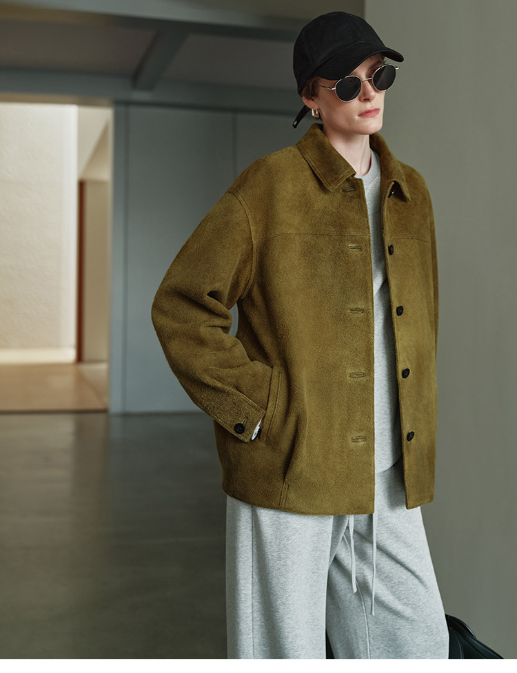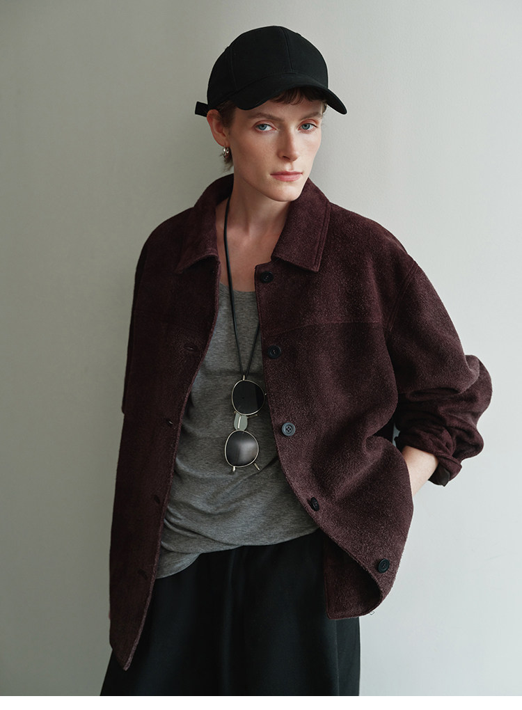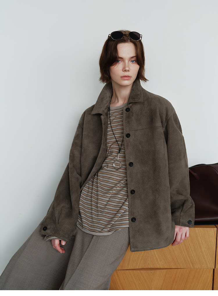 MSBEAST m1u homologous imported matte plush lambskin lapel silhouette jacket丨film leather jacket