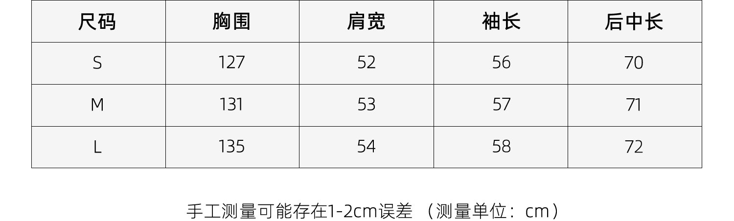 Size (cm) 42 44 46 48 50