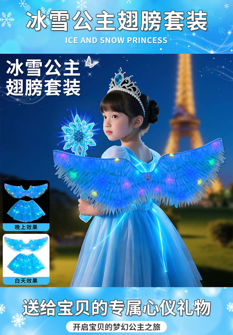 Children's Glowing Butterfly Wings Princess Elsa Magic Wand Cool Birthday Gift Toy Puzzle for Girls 3 to 6 Years Old