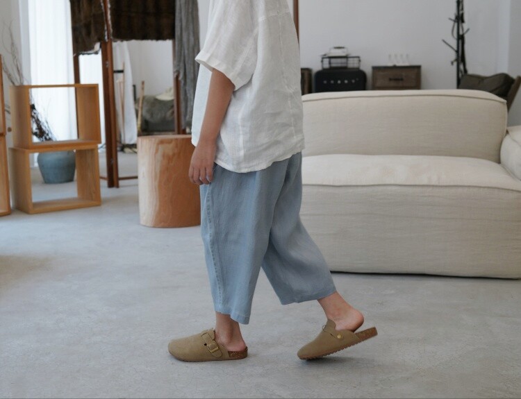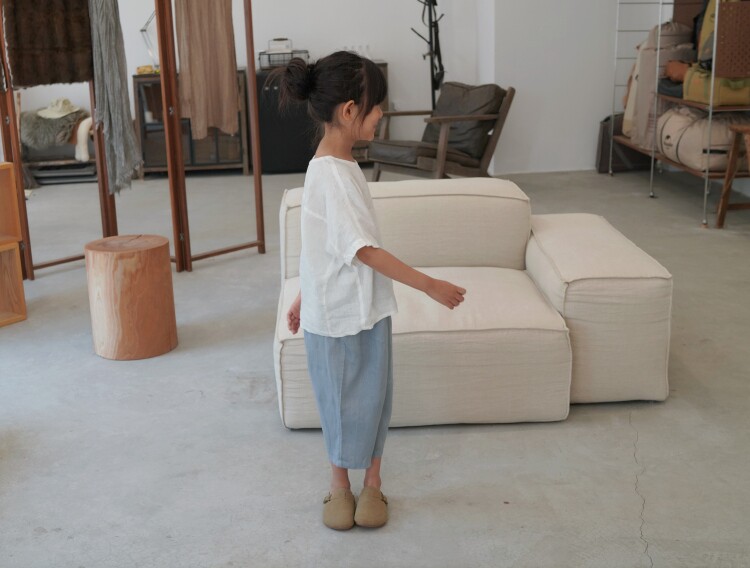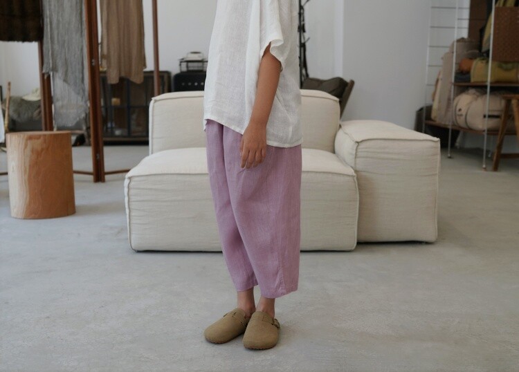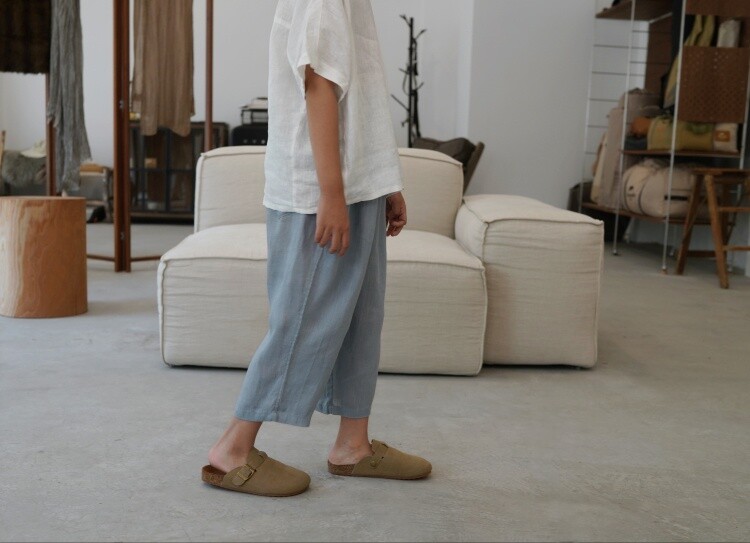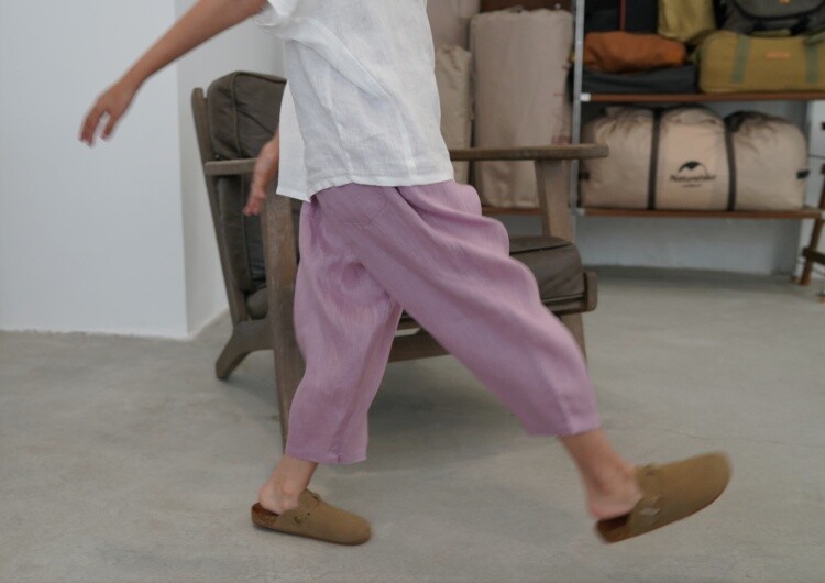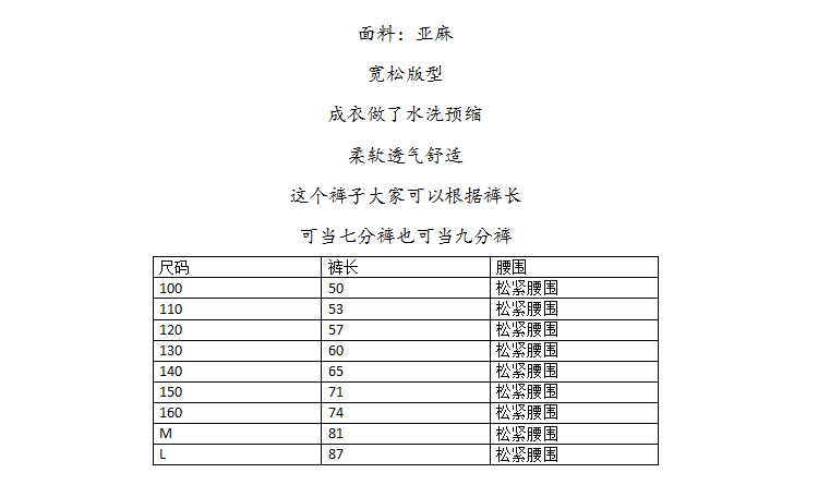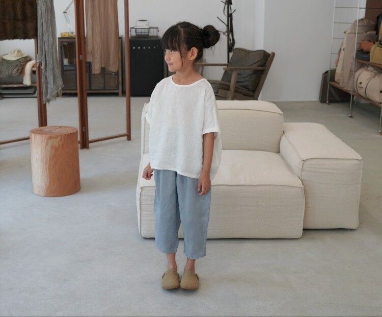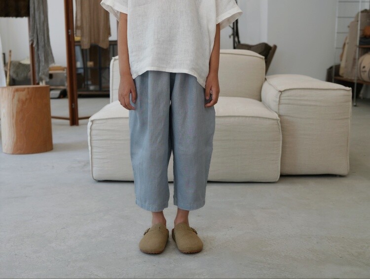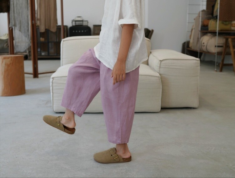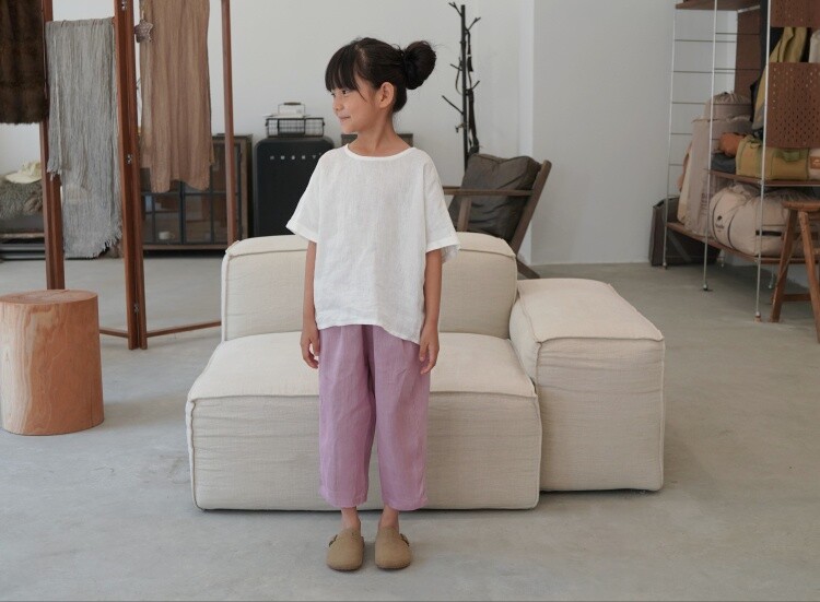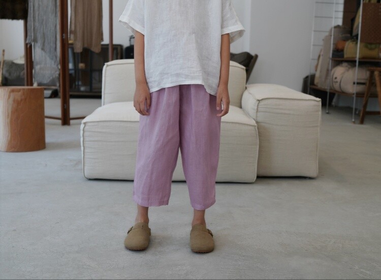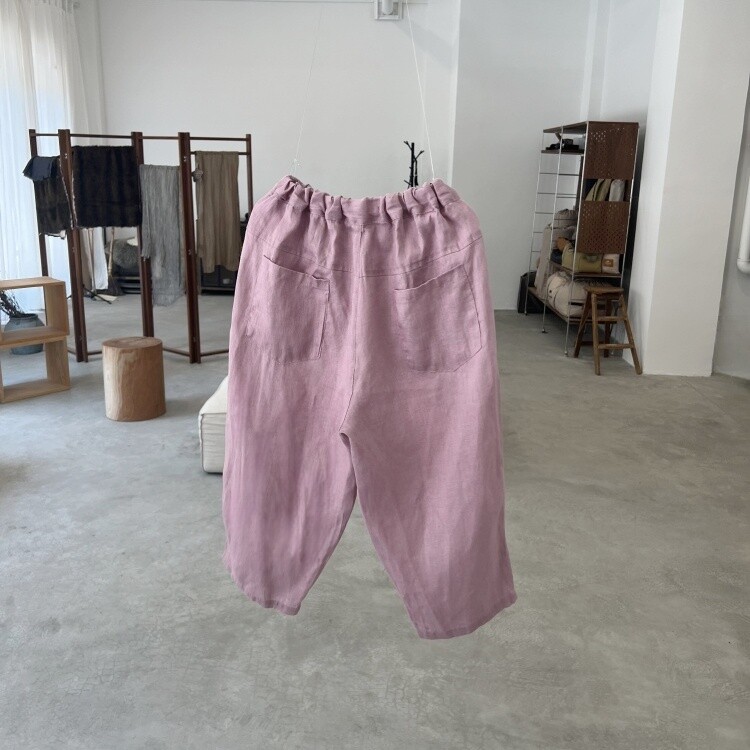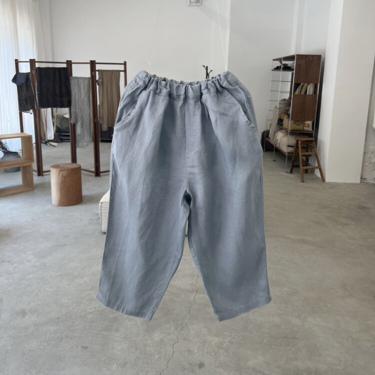 Qiji summer new children's clothing medium and large children's linen casual solid color cropped pants for boys and girls Japanese style parent-child pants