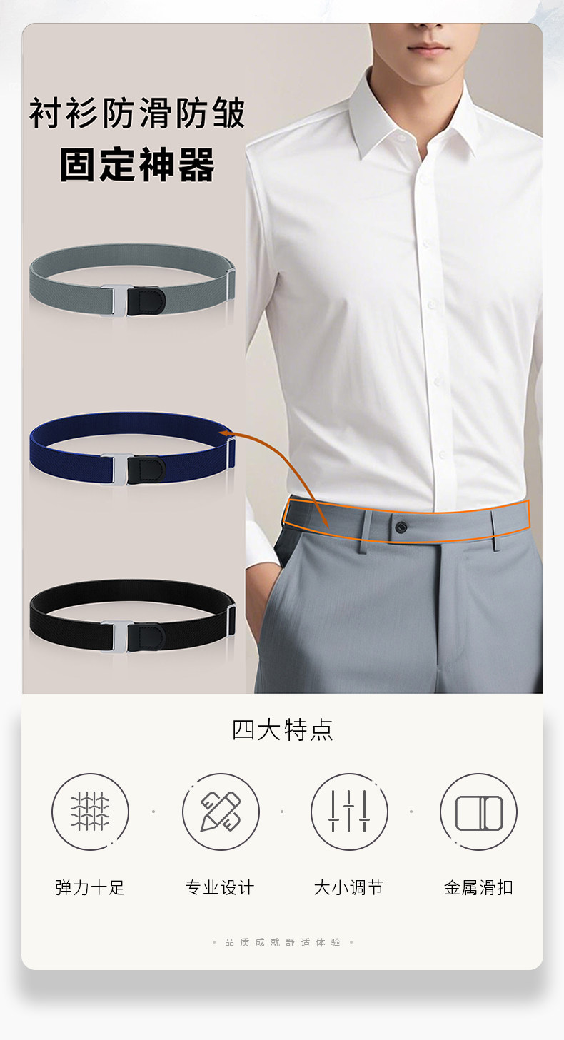 Men's Shirt Fixation Artifact Suit Professional Uniform Shirt Companion Anti-Wrinkle Hem Anti-Channeling Invisible Anti-Slip Belt
