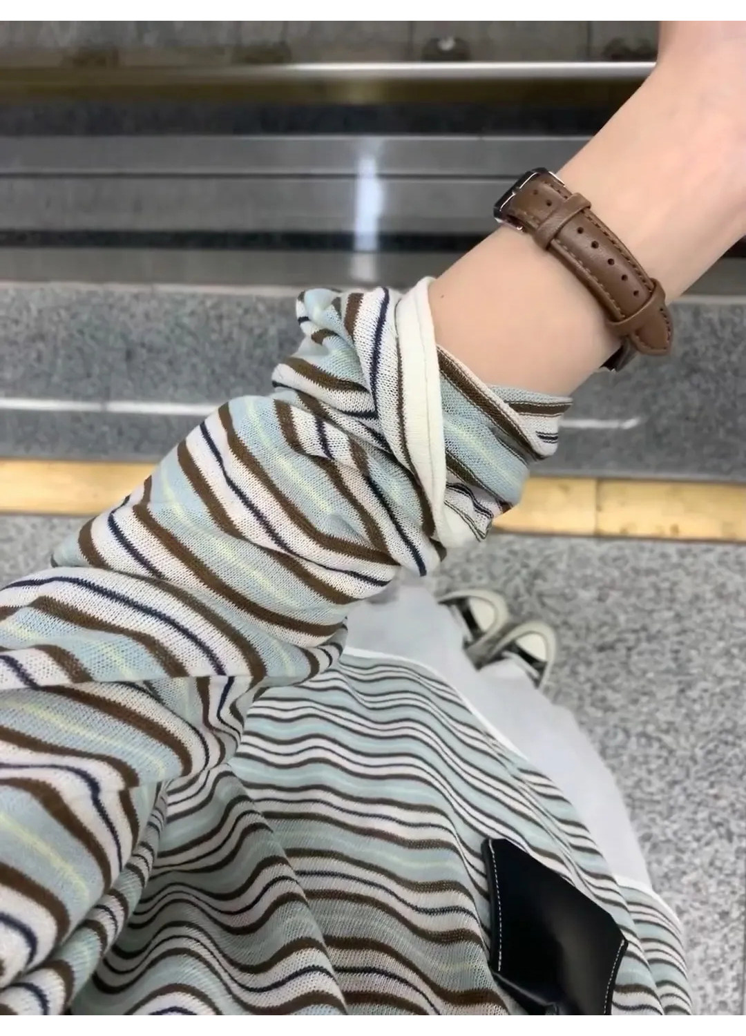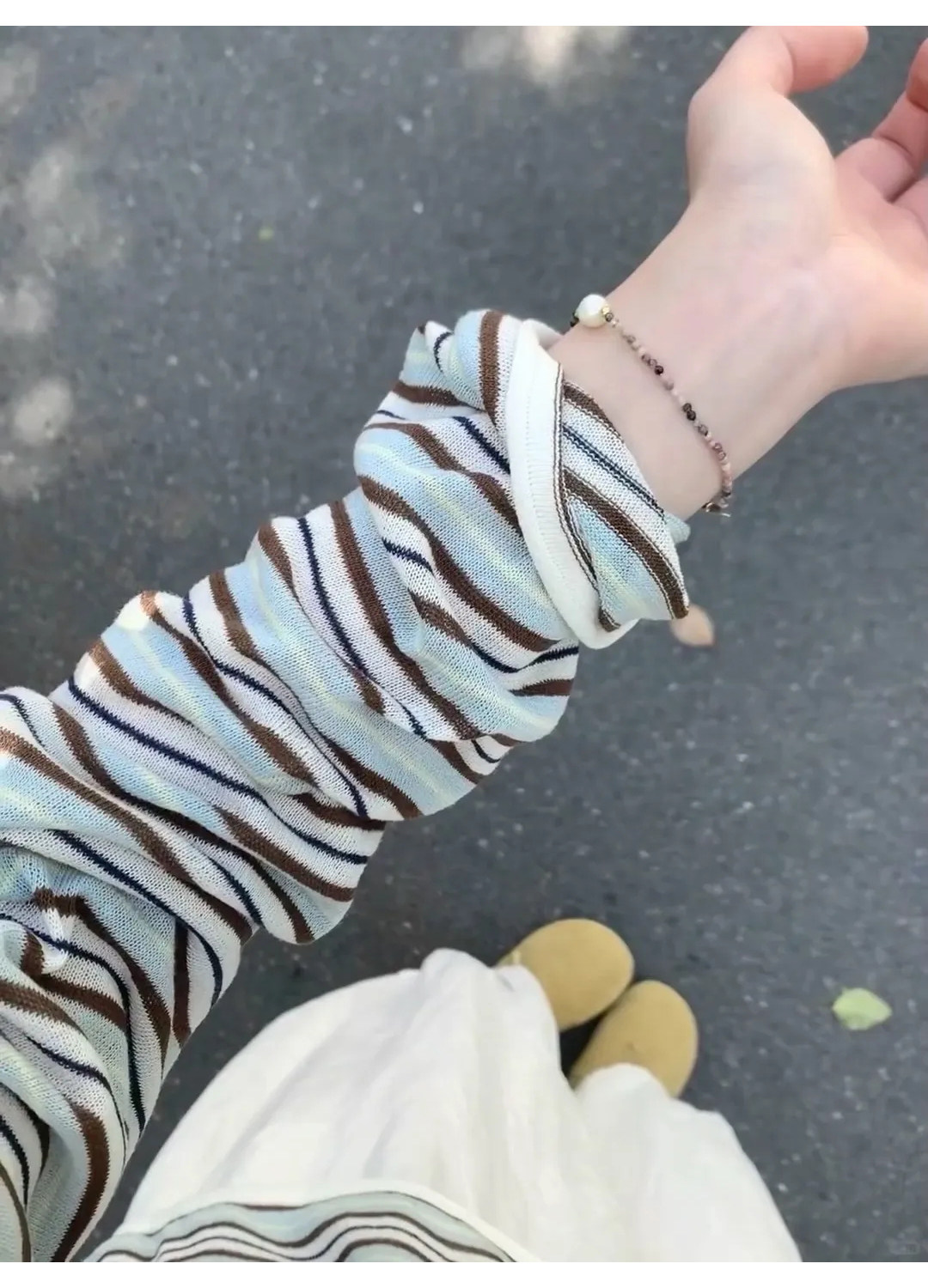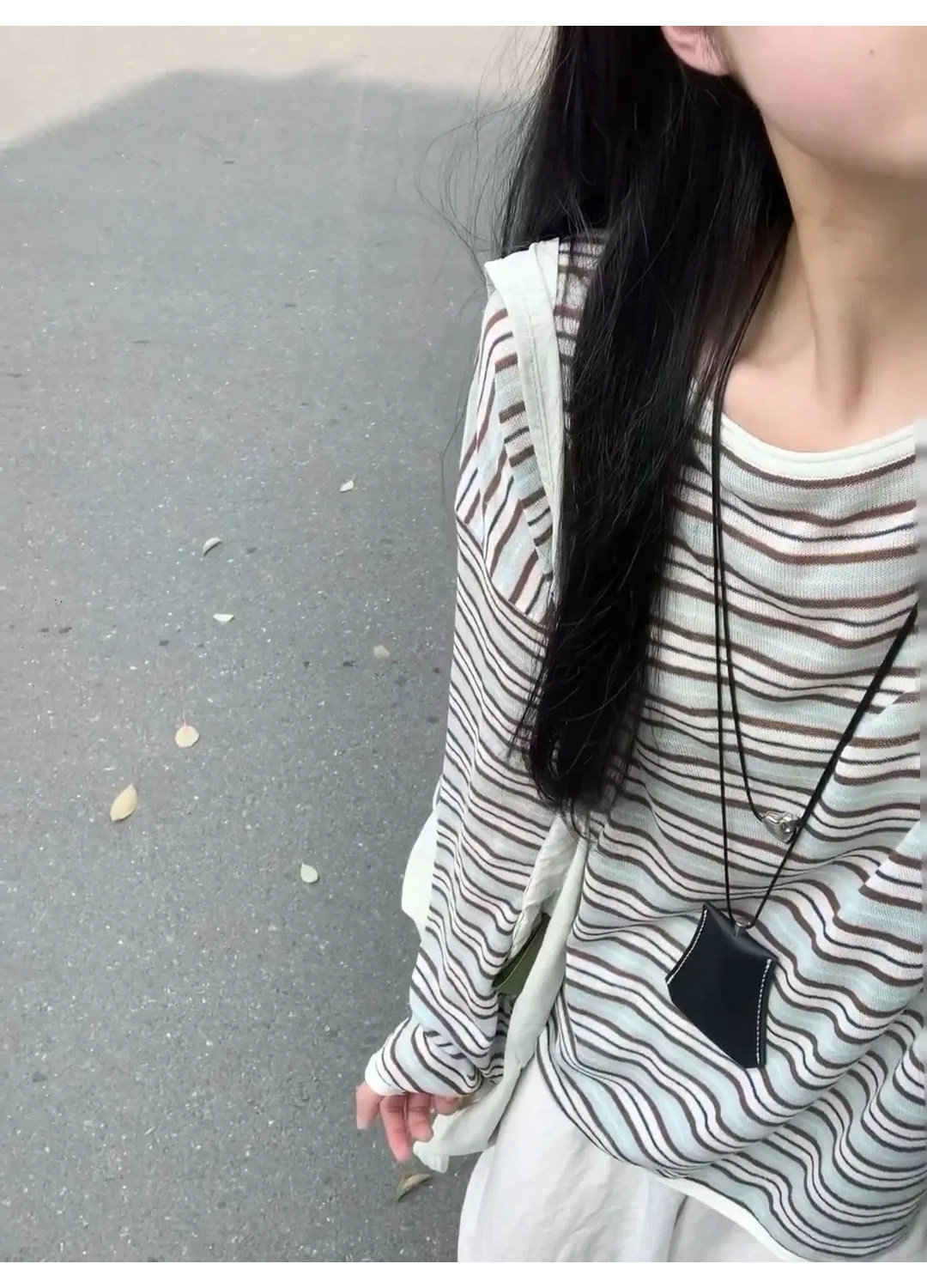 Korean Style Lazy Color-Block Striped Long-Sleeve T-Shirt for Women, Spring and Autumn Chic Ice Silk Thin Sun Protection Air-Conditioning Cover-Up Summer Top