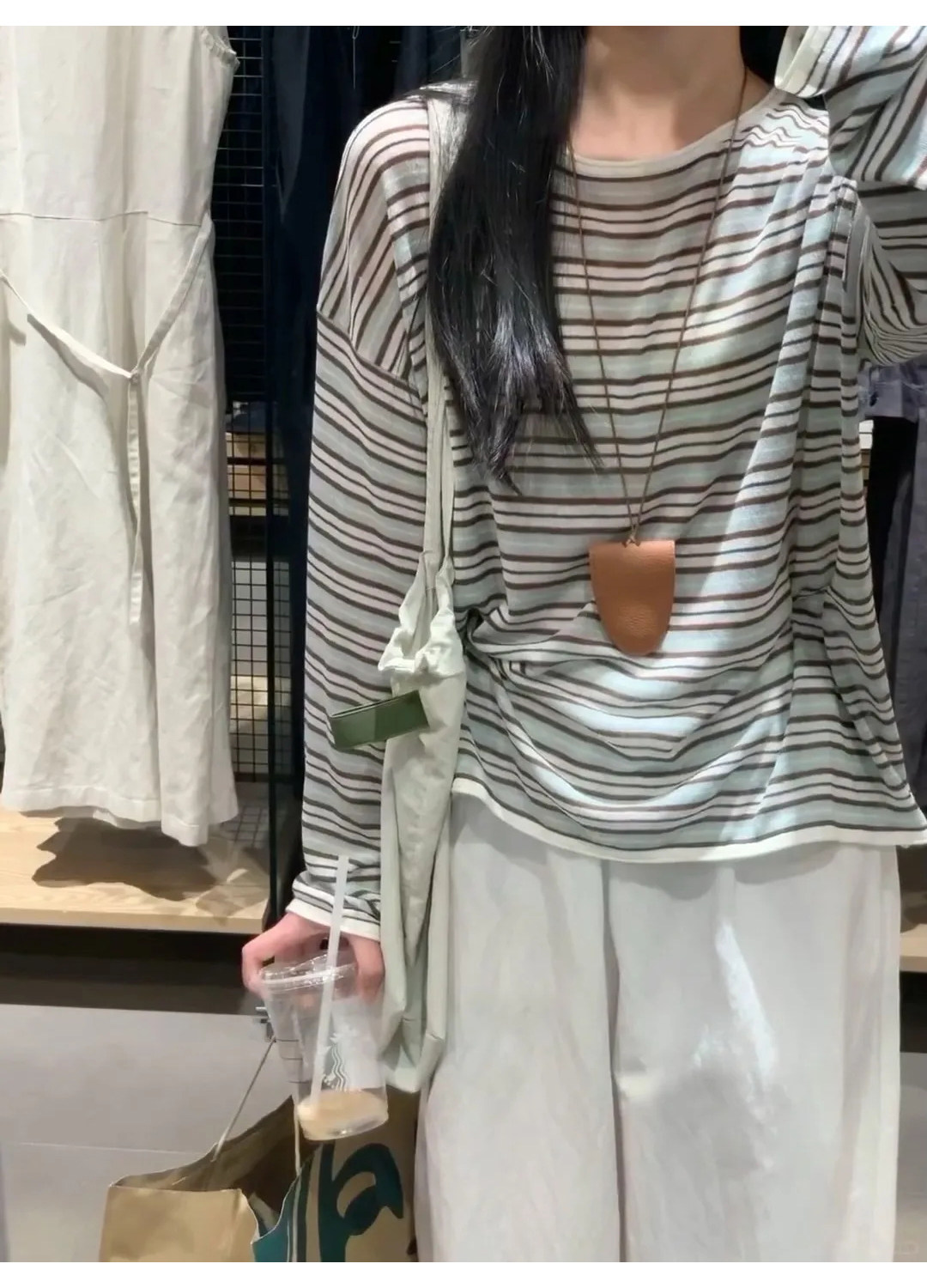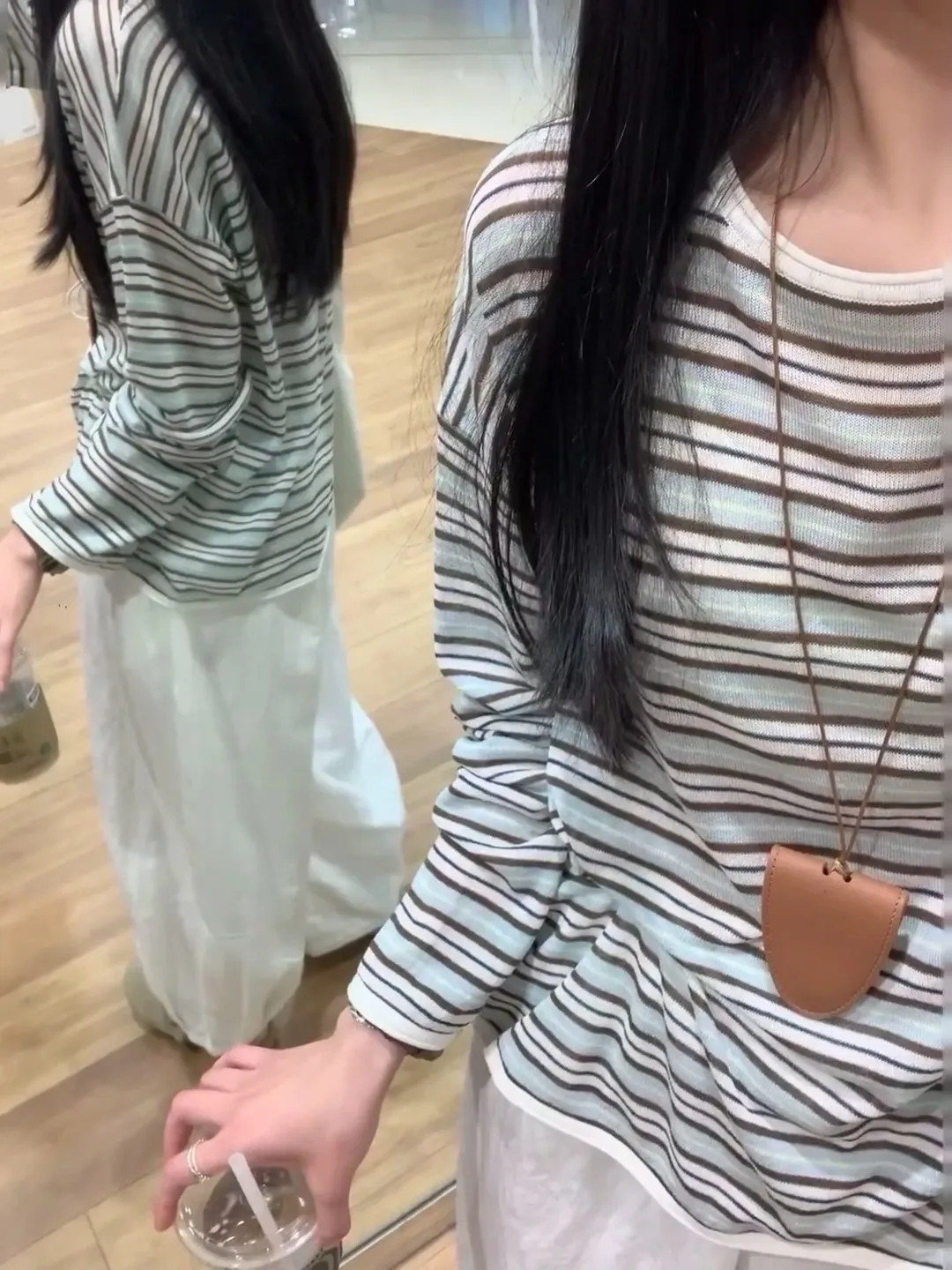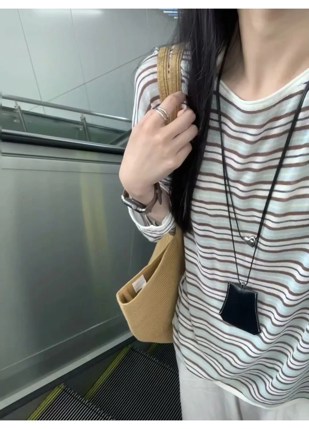 Korean Style Lazy Color-Block Striped Long-Sleeve T-Shirt for Women, Spring and Autumn Chic Ice Silk Thin Sun Protection Air-Conditioning Cover-Up Summer Top