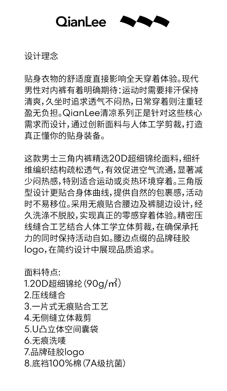 QianLee ice silk seamless men's briefs pure cotton crotch breathable ultra-thin sexy men's shorts new style