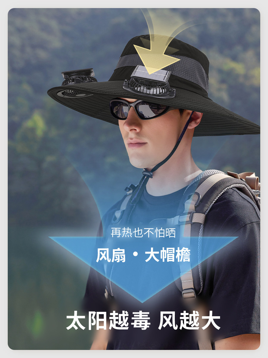 2026 New Solar Fan Hat for Women, Summer Sunshade and Sun Protection Hat for Men, Hiking Outdoor Adult Fisherman Sun Hat