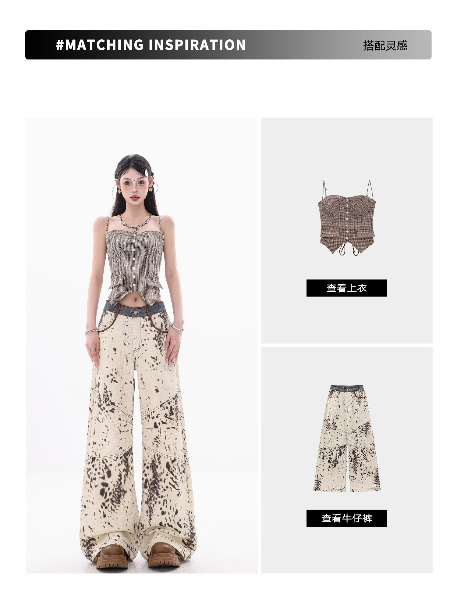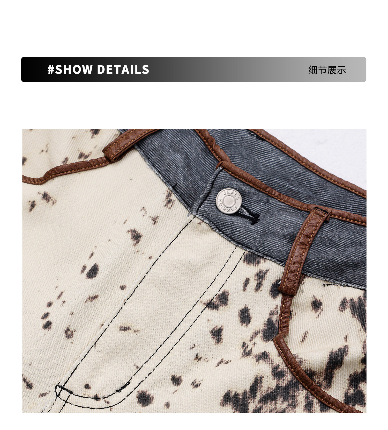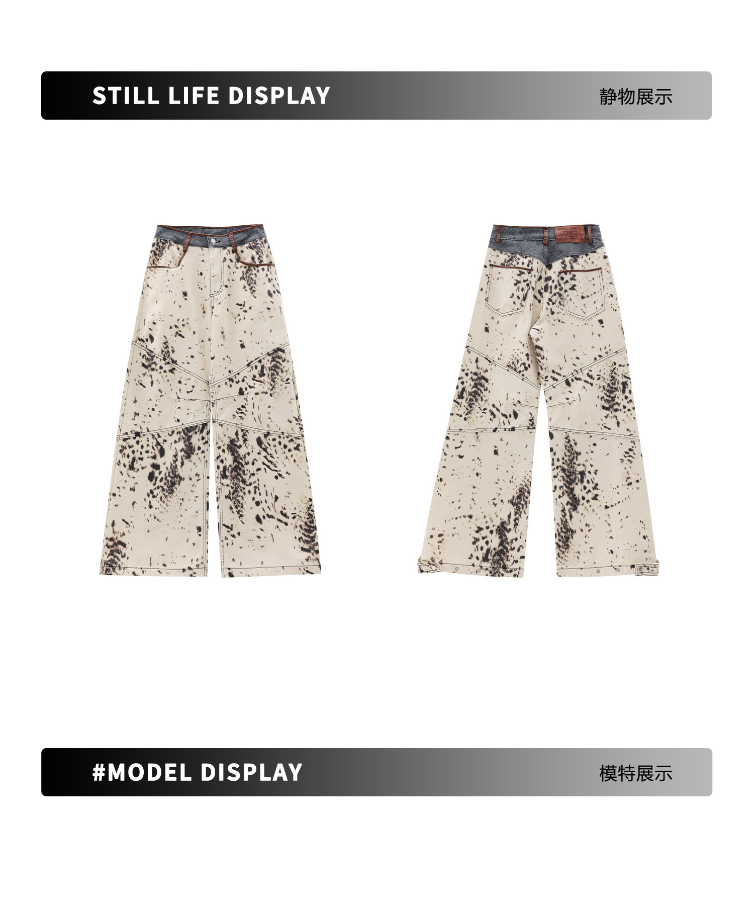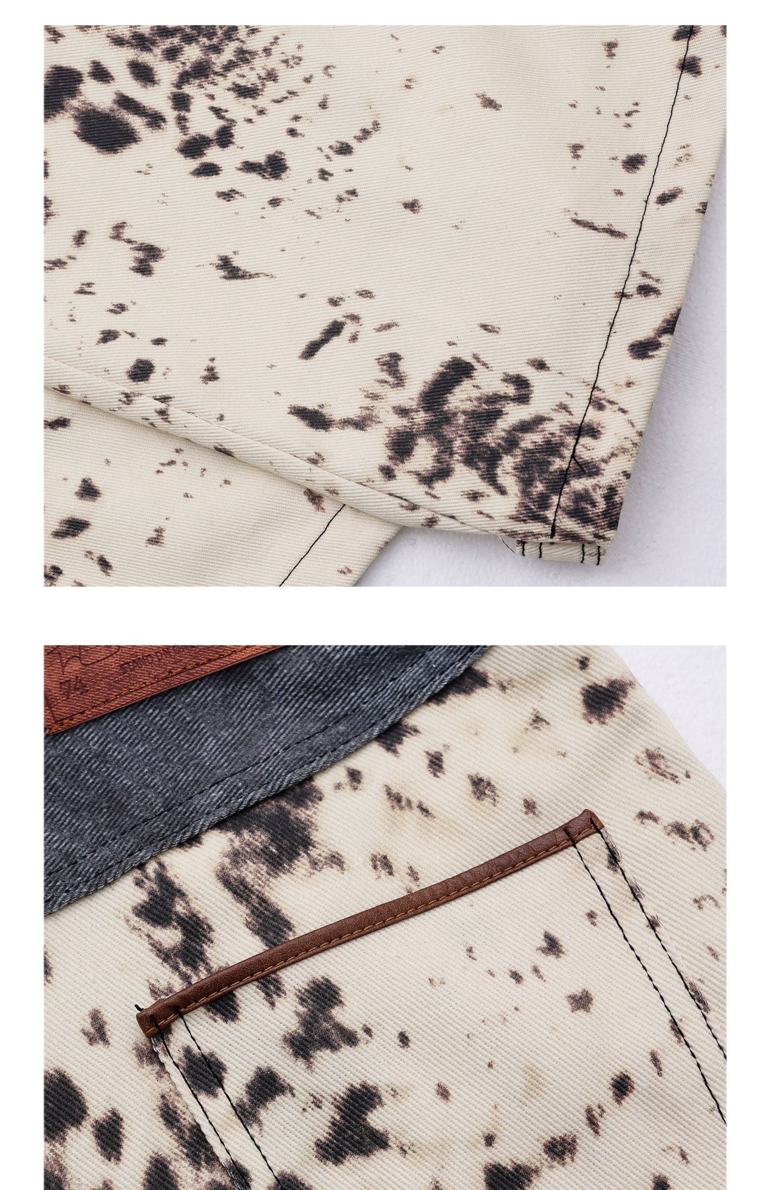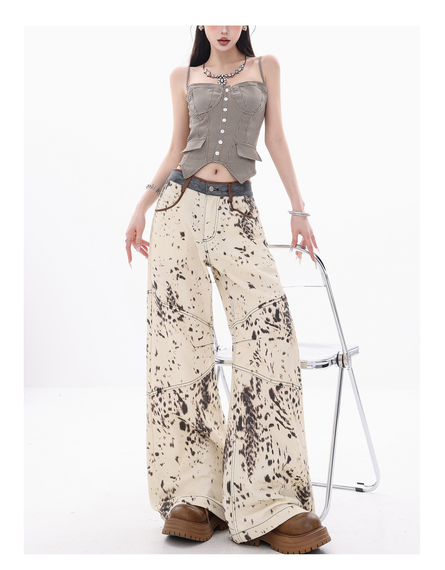 [Wish Clothing Festival]Abwear Original American-Style Patchwork Leopard Print High-Waisted Slimming Wide-Leg Printed Denim Pants