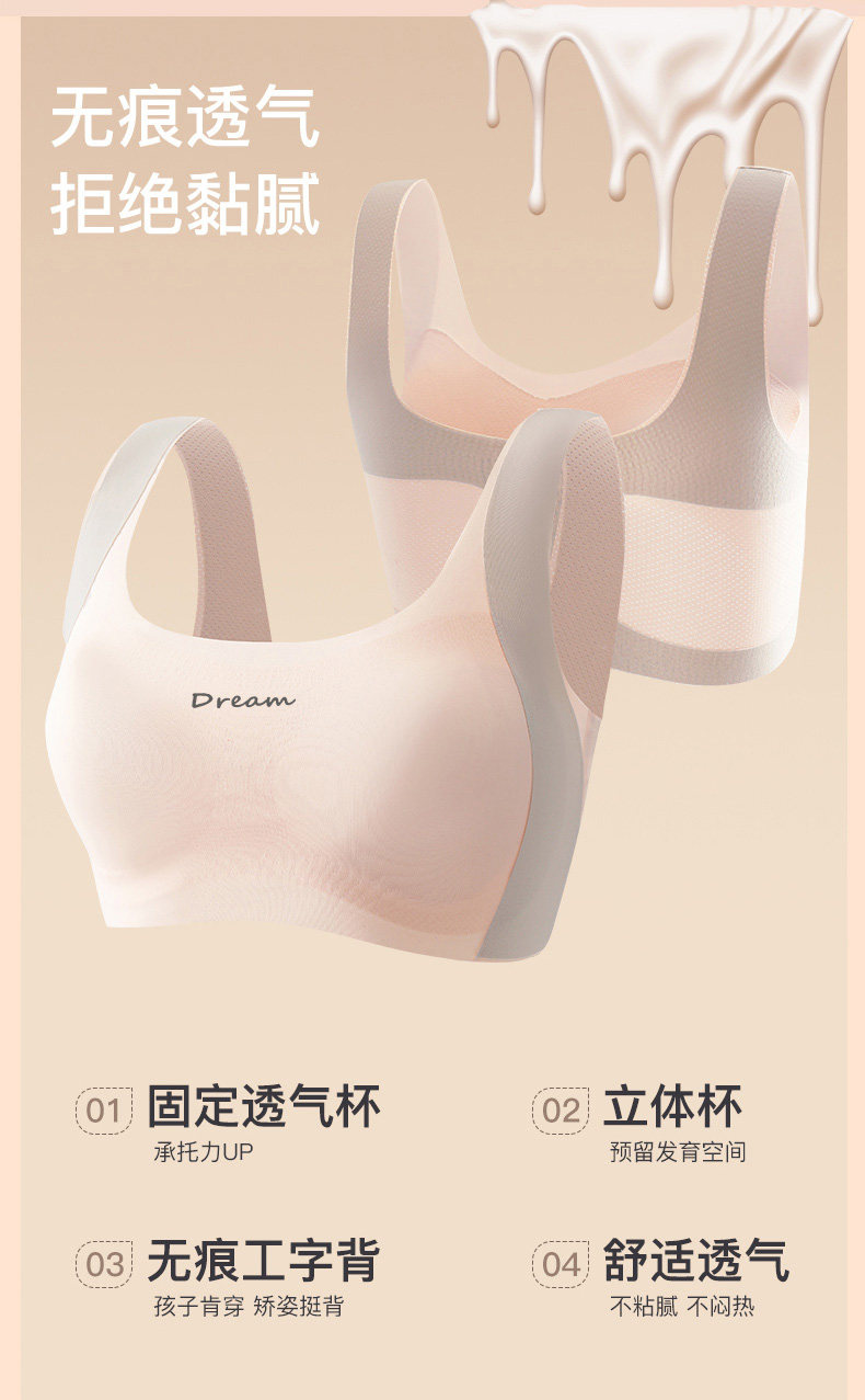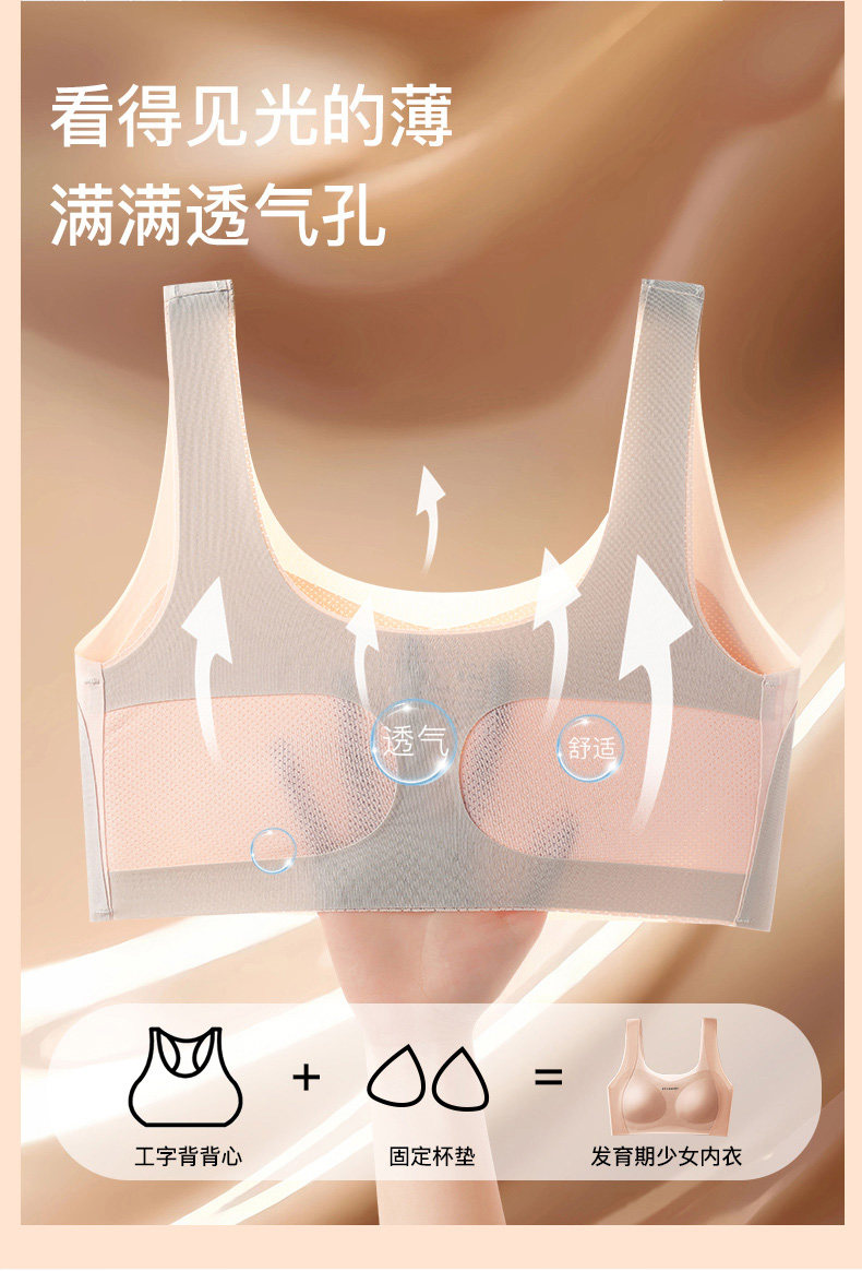 Underwear for junior high school girls and high school students, older children's thin vests, traceless liquid foundation, developmental sports girls' bras