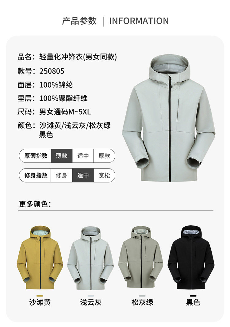 High-End Stylish Lightweight Women's Thin Single-Layer Fully Taped Storm-Level Waterproof Travel Jacket for Men