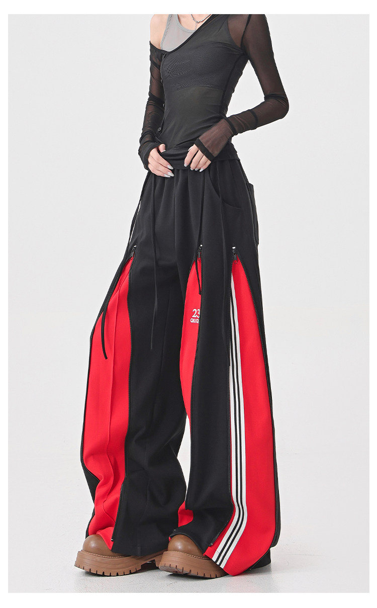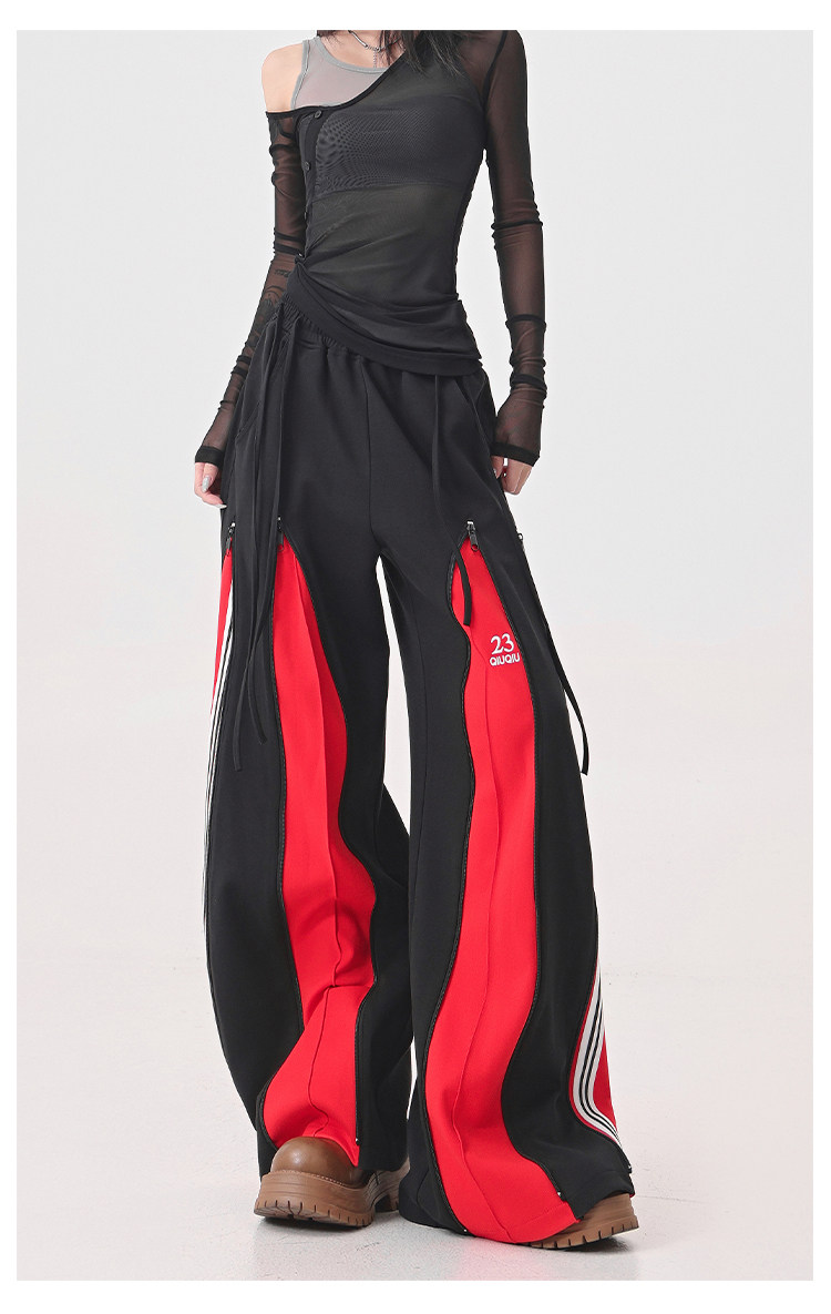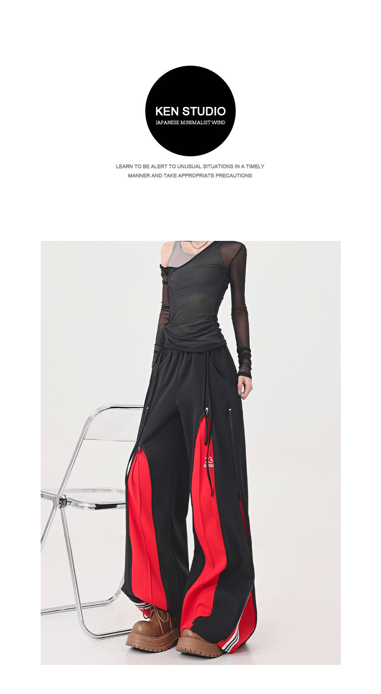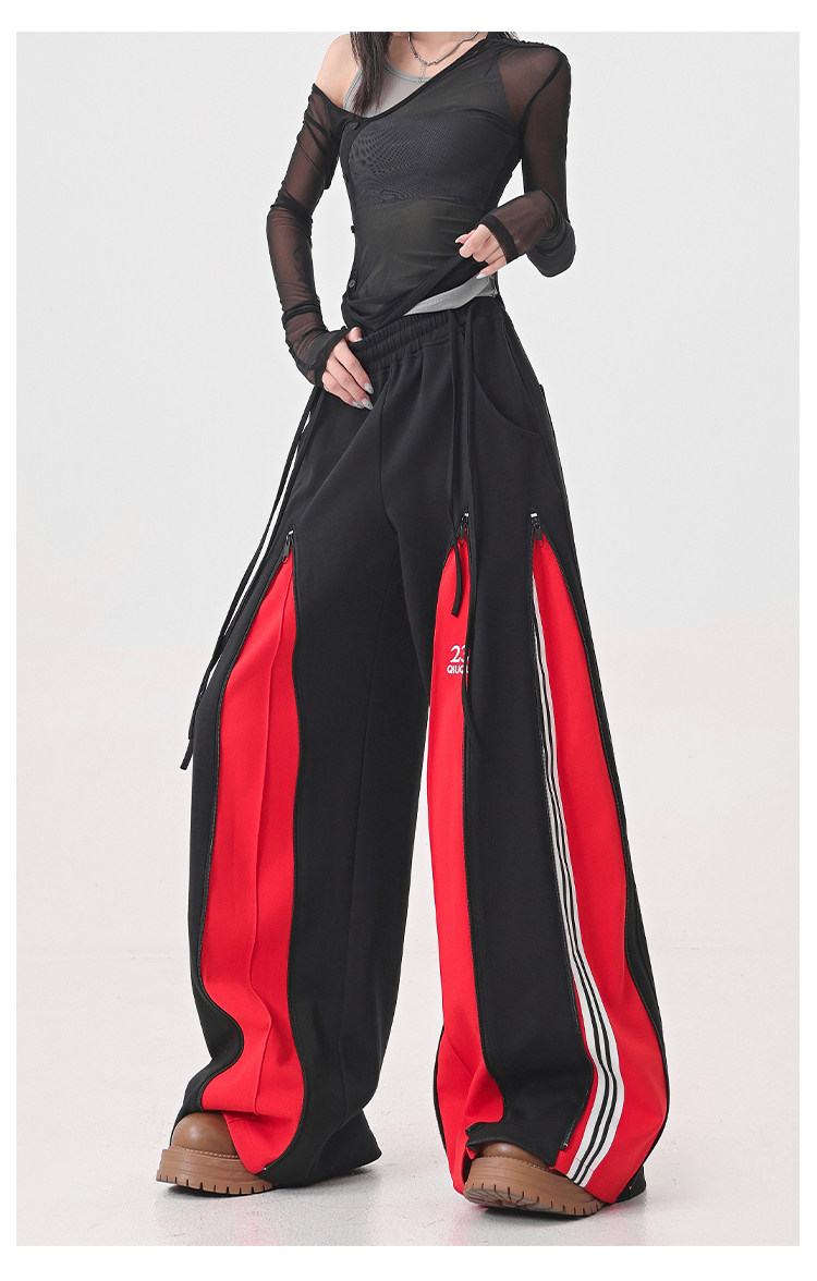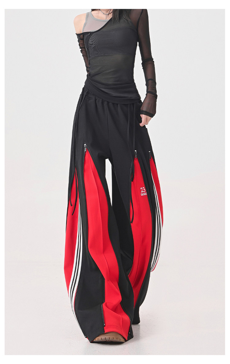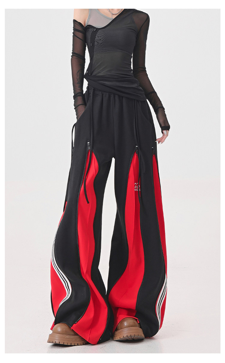 KEN STUDIO red spliced ​​sports pants for women retro mid-century vintage wide-leg floor-length pants