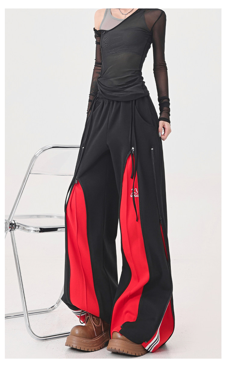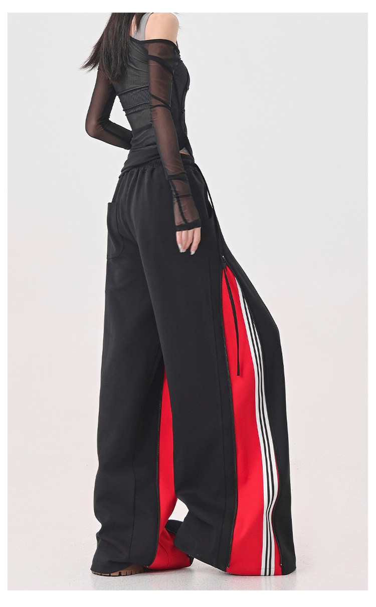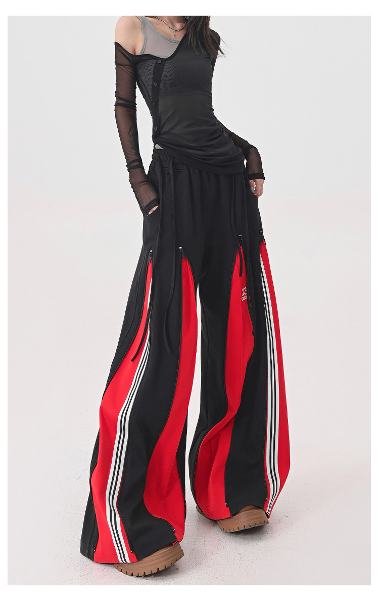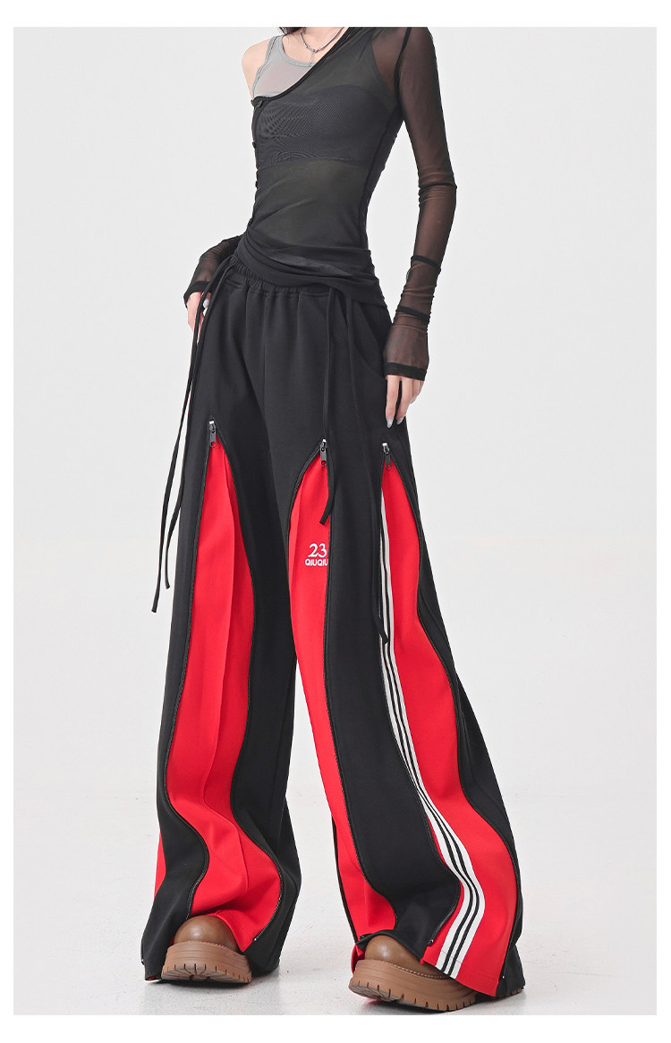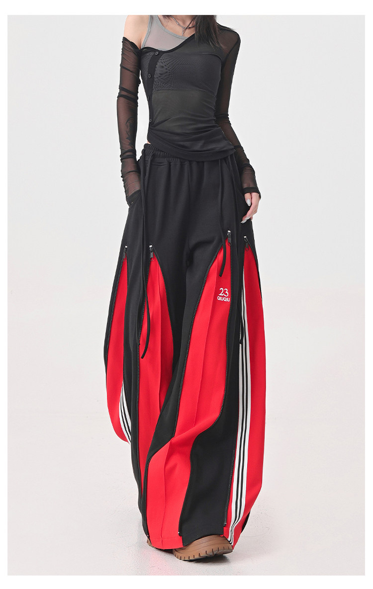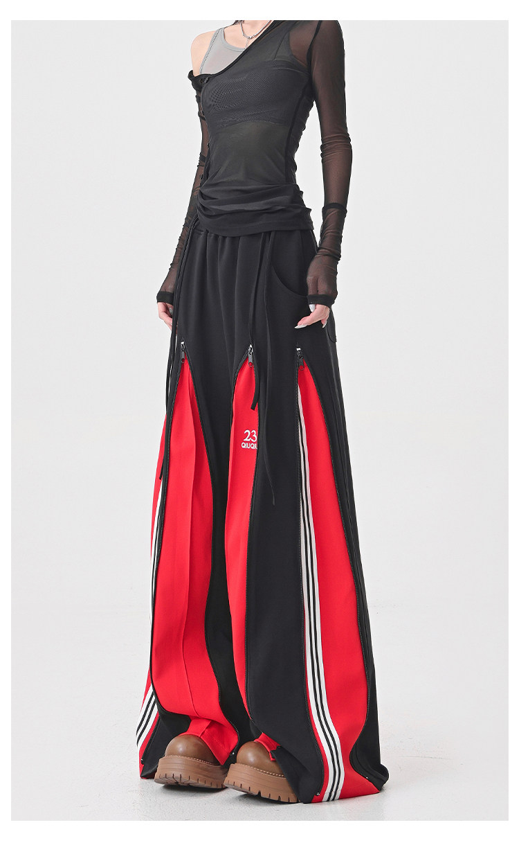 KEN STUDIO red spliced ​​sports pants for women retro mid-century vintage wide-leg floor-length pants
