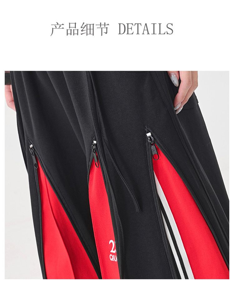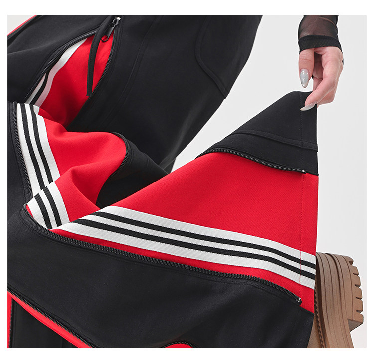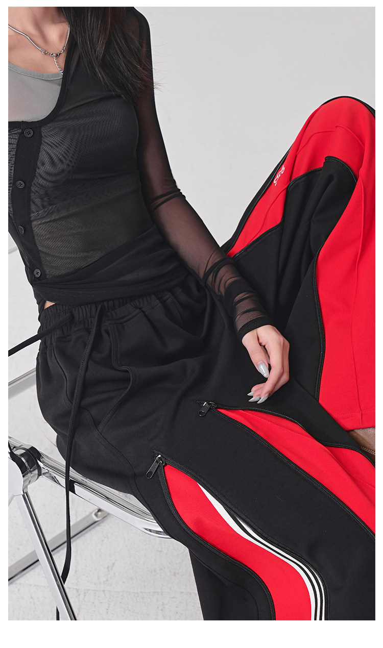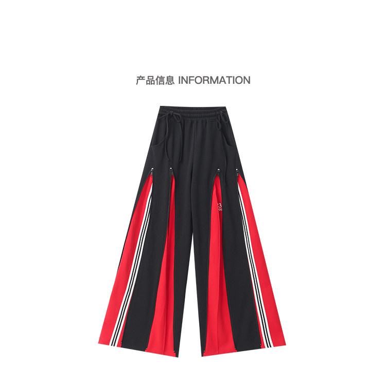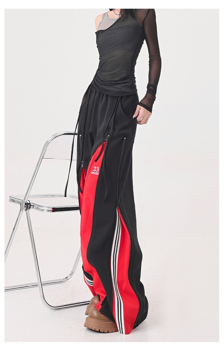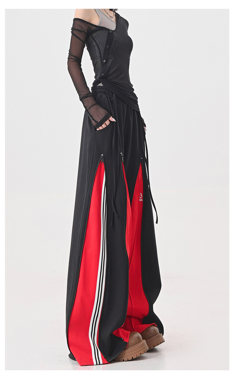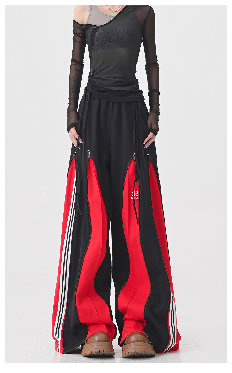KEN STUDIO red spliced ​​sports pants for women retro mid-century vintage wide-leg floor-length pants