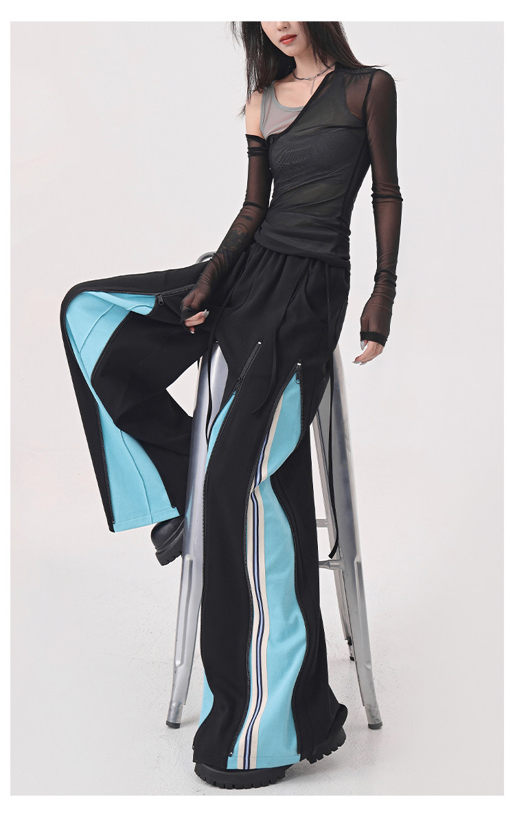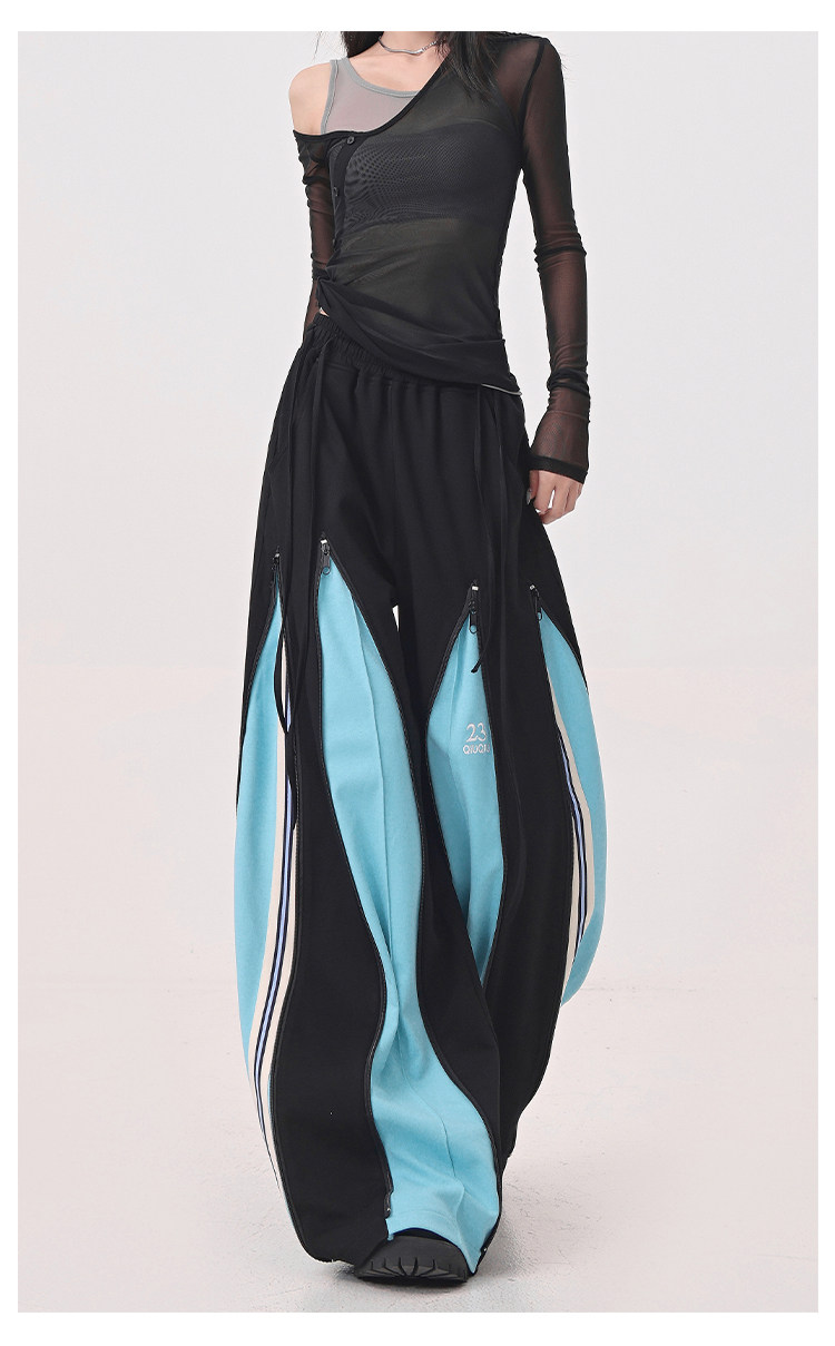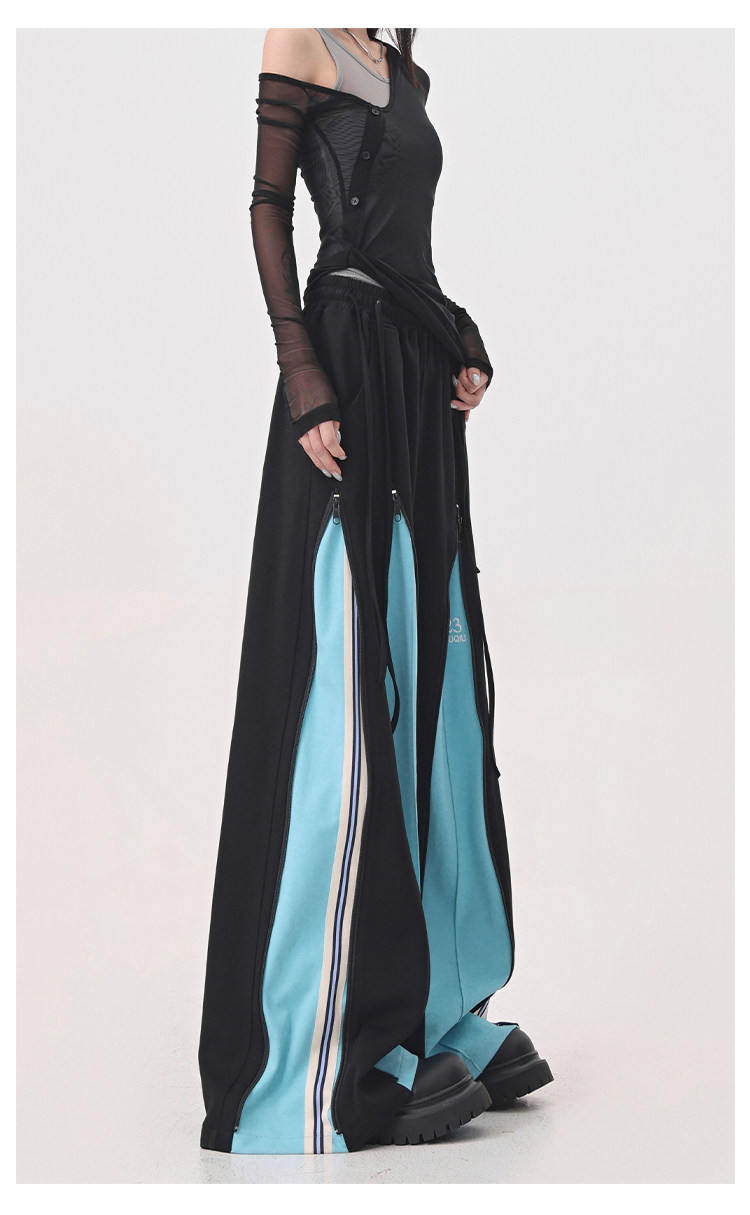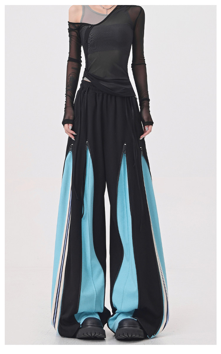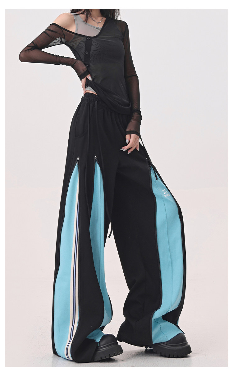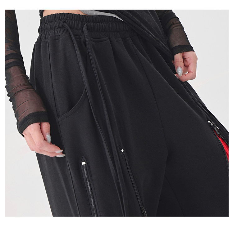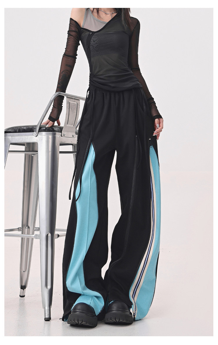 KEN STUDIO red spliced ​​sports pants for women retro mid-century vintage wide-leg floor-length pants