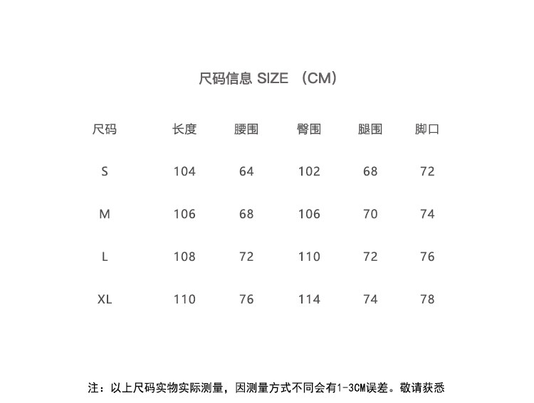 Outseam (cm) 99 cm 101.5 cm 104 cm 106.5 cm 109 cm