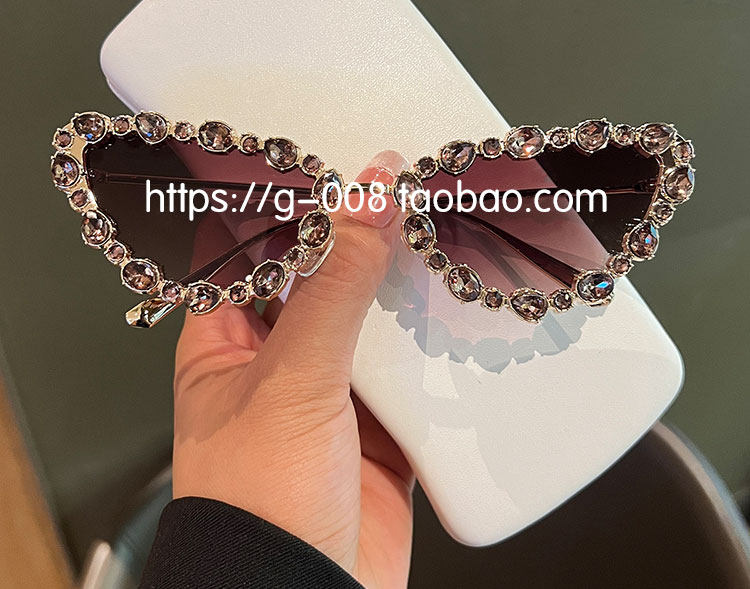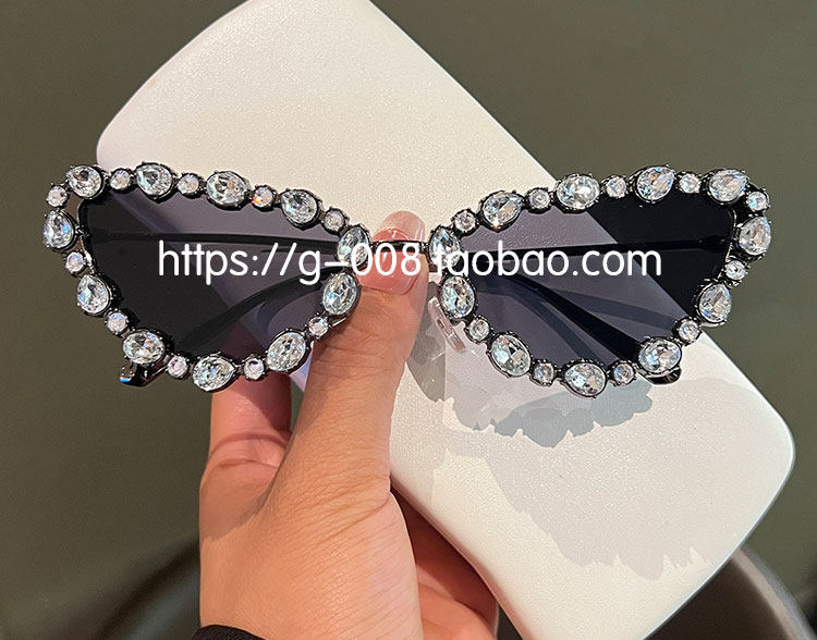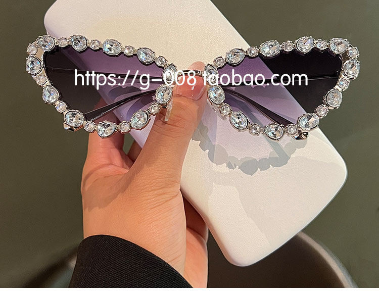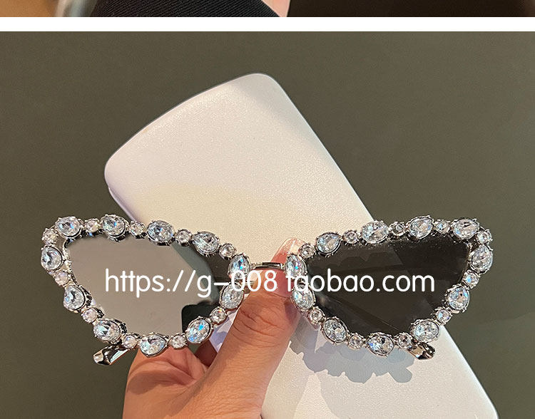 Cat-Eye Sunglasses European and American Style with Rhinestones, Metal, Unique Street Style Sunglasses for Women, High-End, Trendy, Uv Protection Glasses