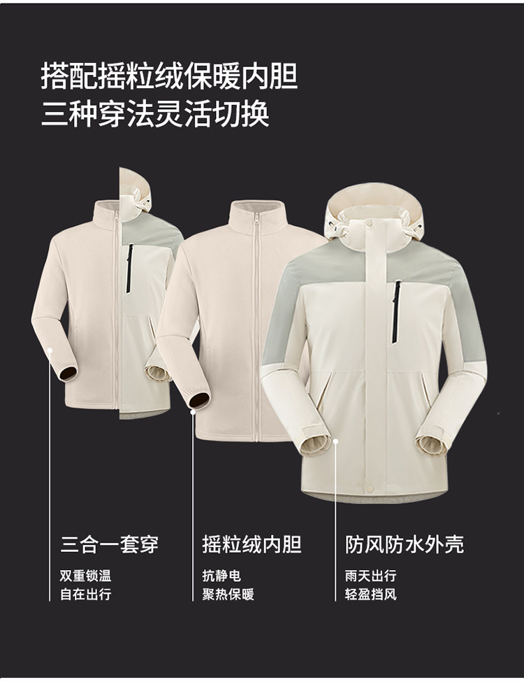 Women's Jacket 2025 New Three-In-One Windproof and Waterproof Outdoor Mountaineering Clothing Couple Style Tibet Travel Jacket for Men