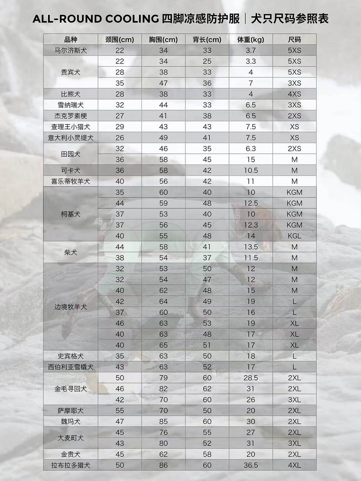 Size 5XS Back Length 24cm Neck 26cm Bust Size 36cm,4XS Back Length 26cm Neck 28cm Bust Size 40cm,3XS Back Length 28cm Neck 30cm Bust Size 42cm,2XS Back Length 29cm Neck 30cm Bust Size 46cm,XS Back Length 32cm Neck 32cm Bust Size 50cm,S Back Length 35cm Neck 34cm Bust Size 54cm,M Back Length 38cm Neck 36cm Bust Size 58cm,L Back Length 42cm Neck 40cm Bust Size 66cm,XL Back Length 47cm Neck 42cm Bust Size 70cm,2XL Back Length 50cm Neck 44cm Bust Size 74cm,3XL Back Length 54cm Neck 46cm Bust Size 82cm,4XL Back Length 57cm Neck 48cm Bust Size 90cm,Corgi Code Kg/M (Recommended Weight 10-13kg),Corgi Code Kg/L (Recommended Weight 14-17kg)