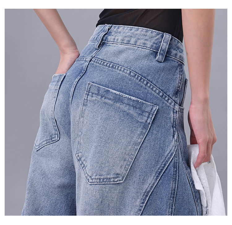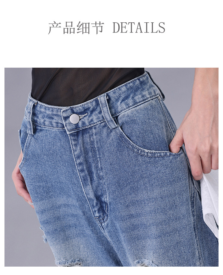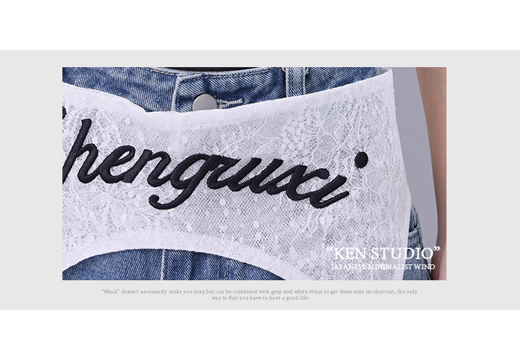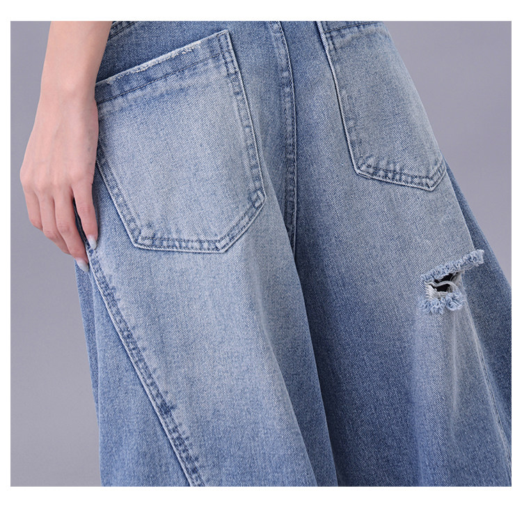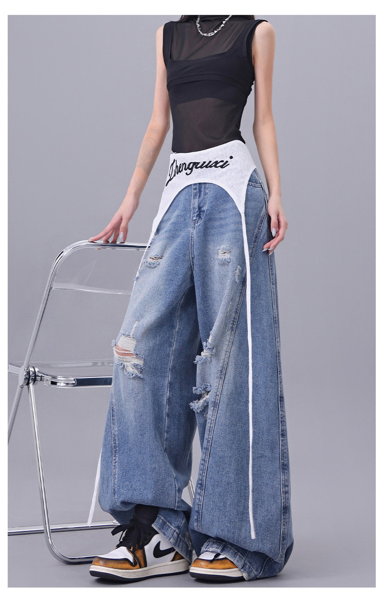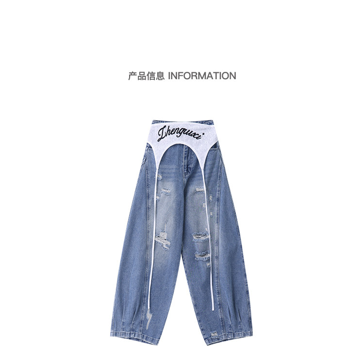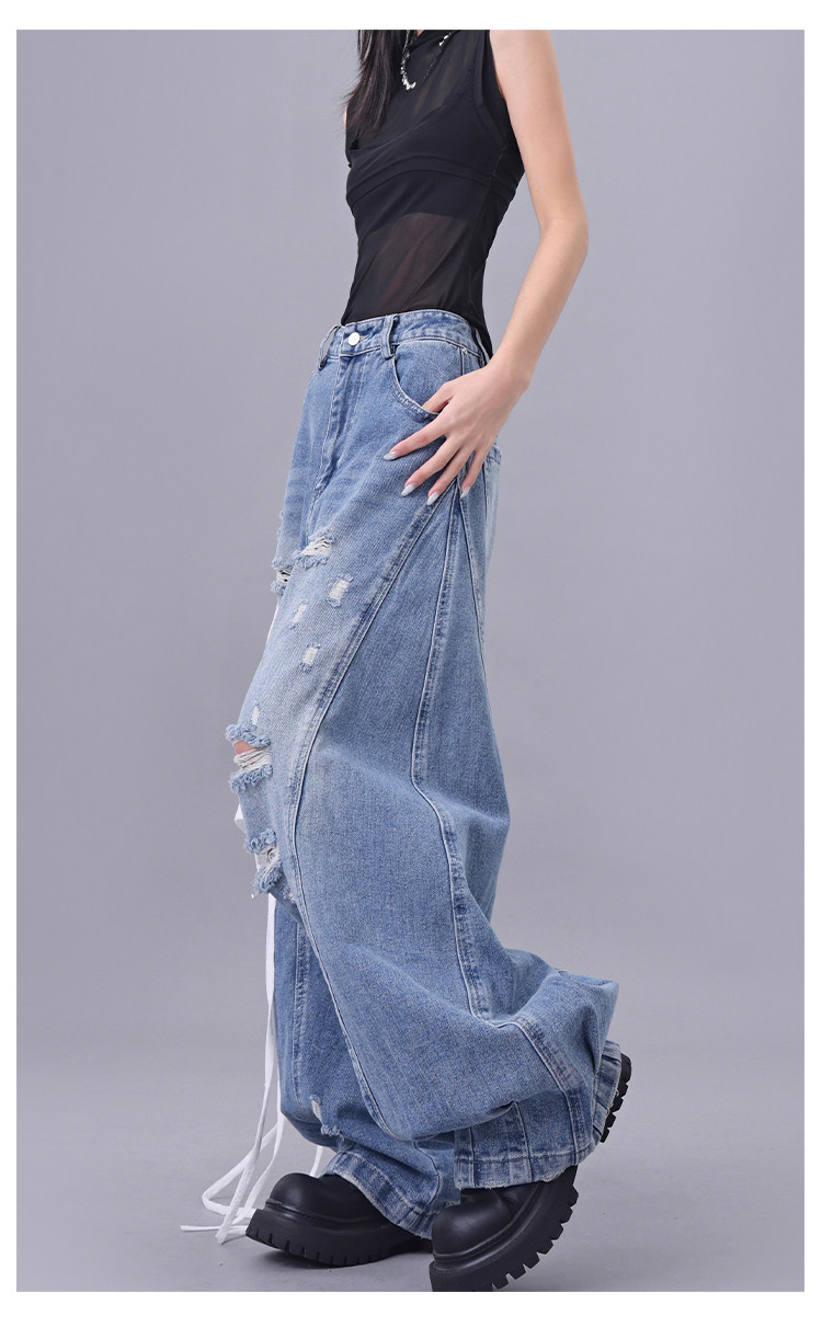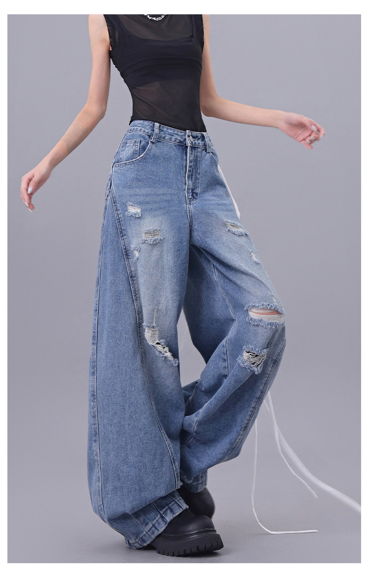 Ken Studio Tall Lace Trim Layered Ripped Scimitar Jeans Women's Wide-Leg Floor-Length Pants