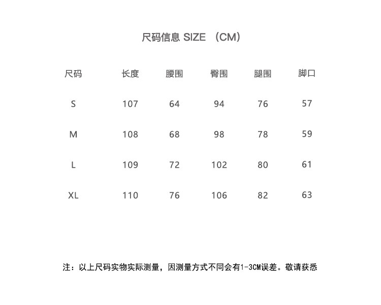 Outseam (cm) 99 cm 101.5 cm 104 cm 106.5 cm 109 cm