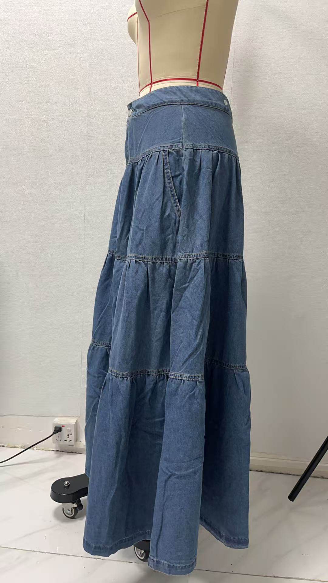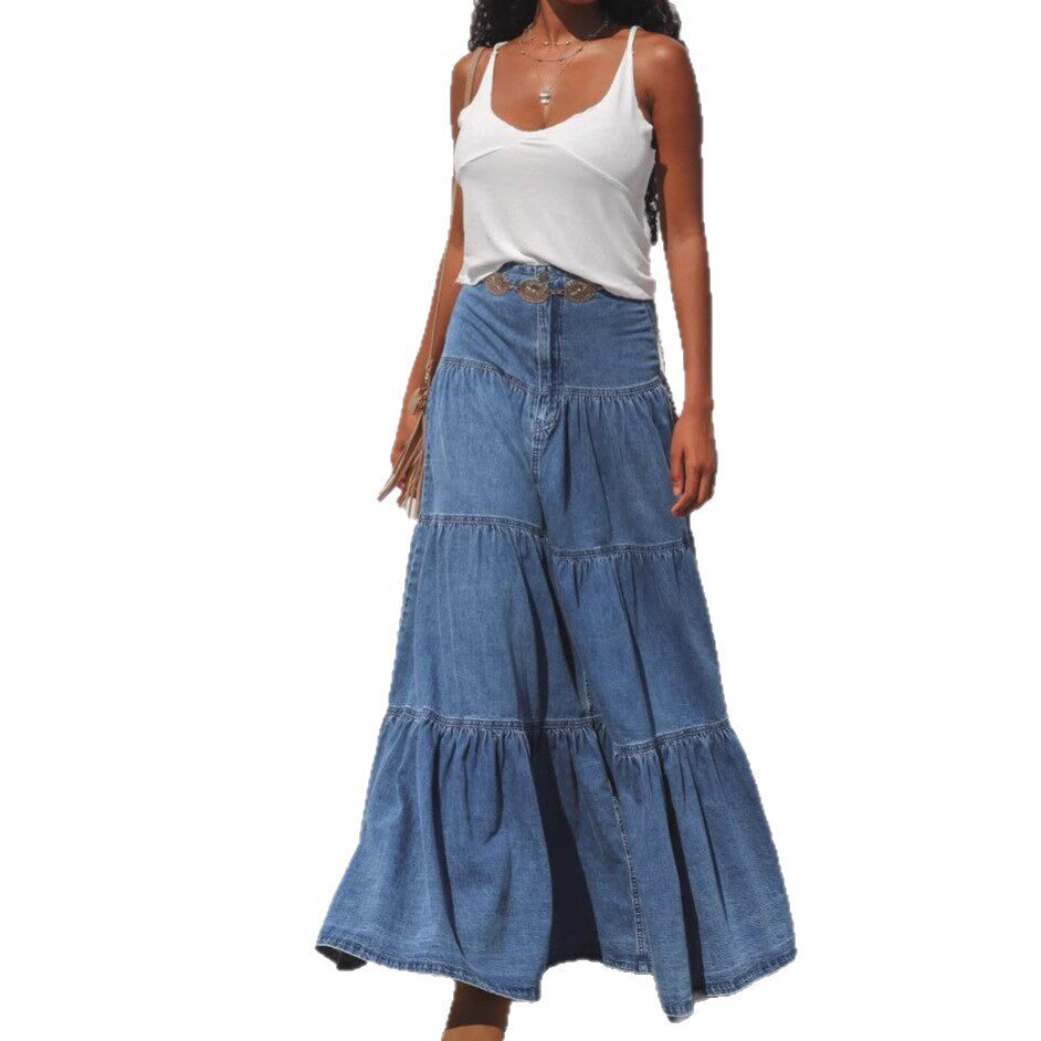 Women casual half skirt European and American street hotties low-waist vacation style cake denim skirt