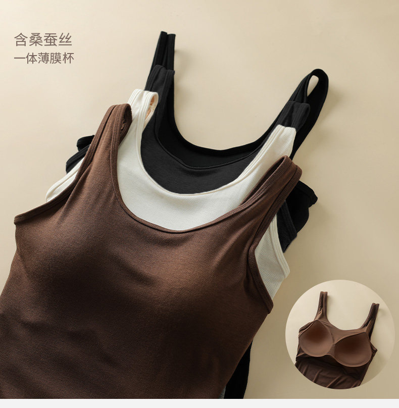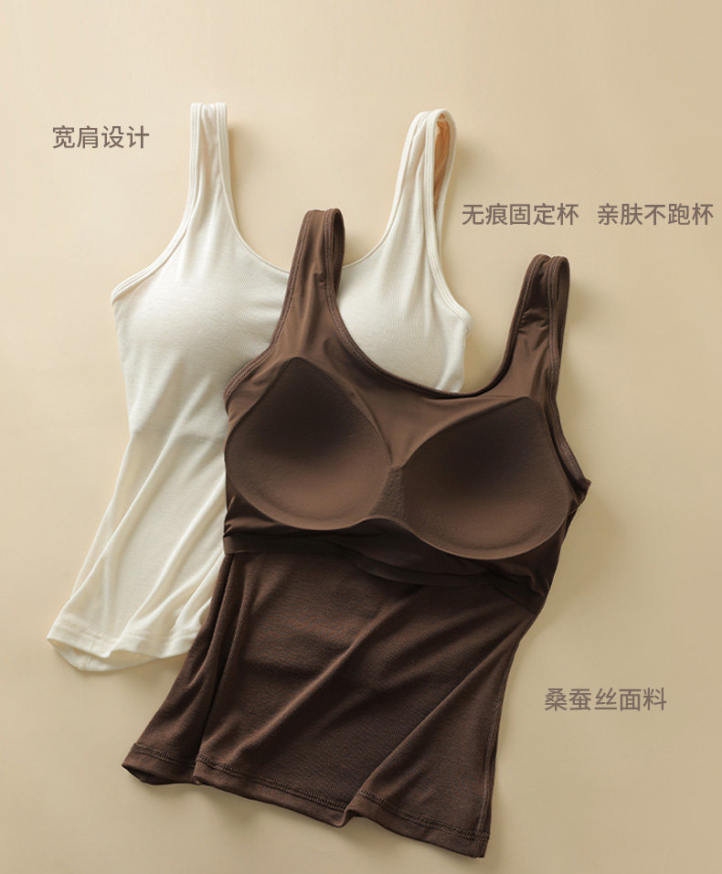 Women's Mulberry Silk Vest for Outerwear 2025 New Autumn and Winter Camisole with Built-In Bra, Slim Fit Sleeveless Base Layer Top