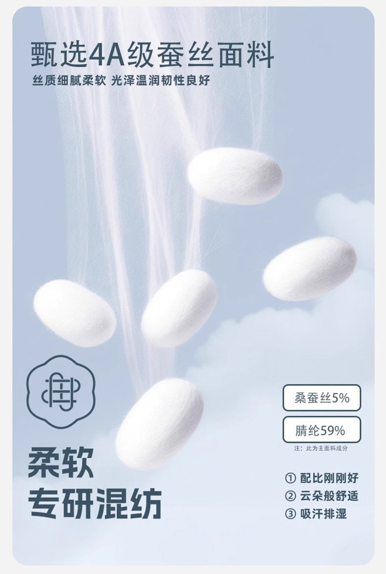 Material Composition Polyacrylonitrile Fiber (Acrylic Fiber) 59% Cotton 33% Mulberry Silk 5% Polyurethane Elastic Fiber (Spandex) 3%