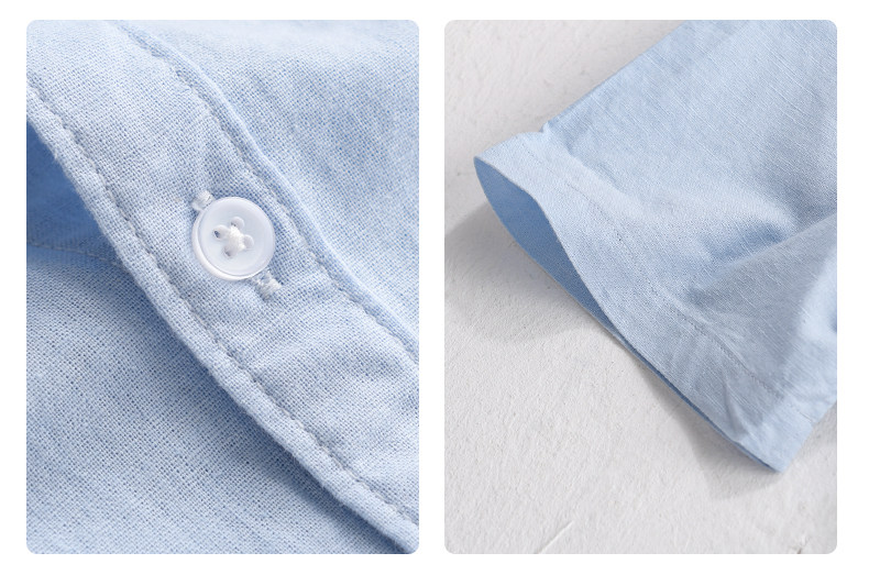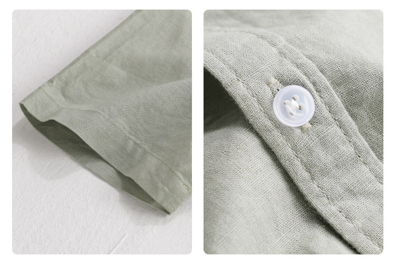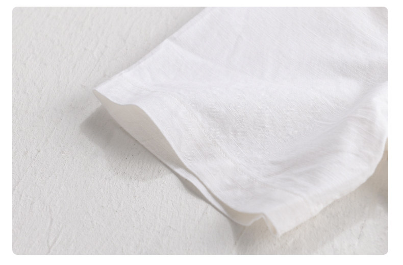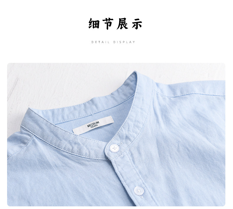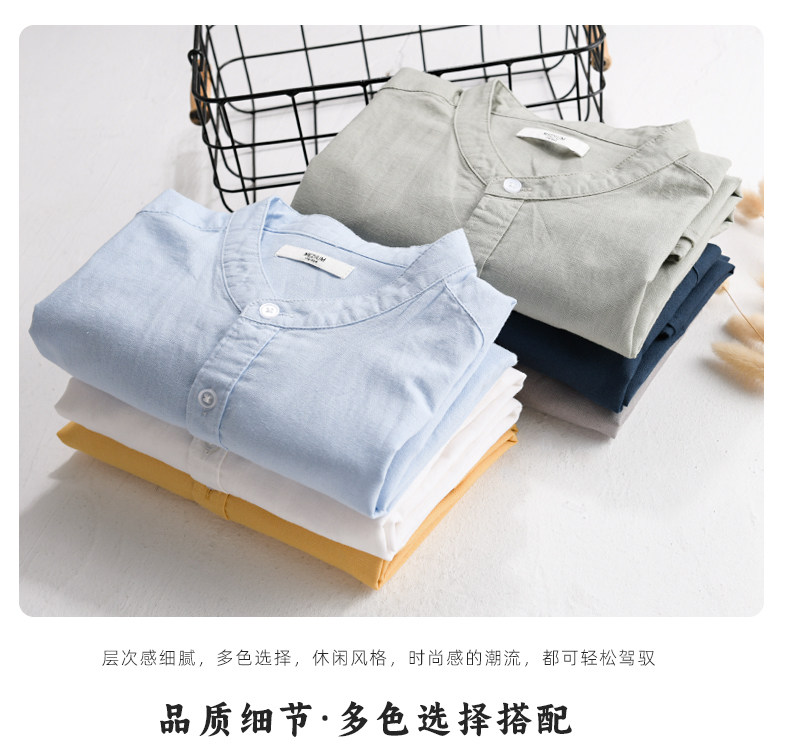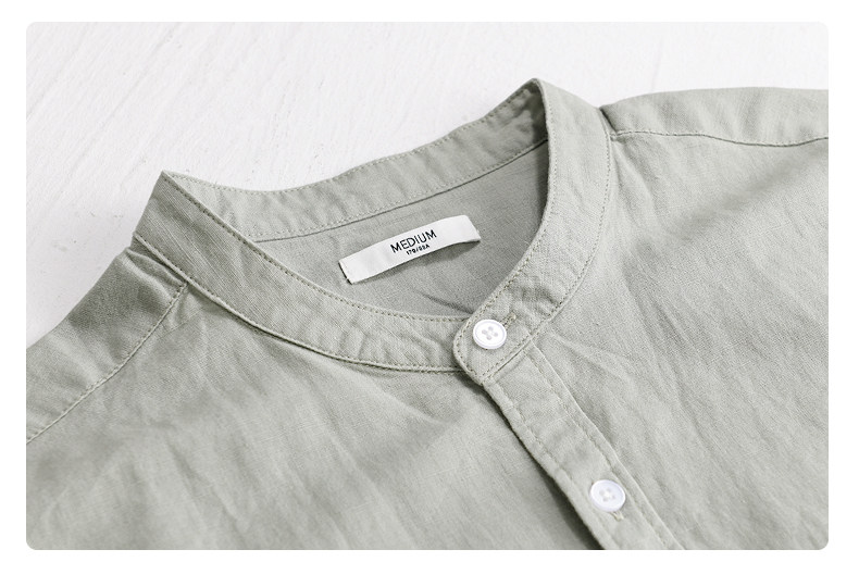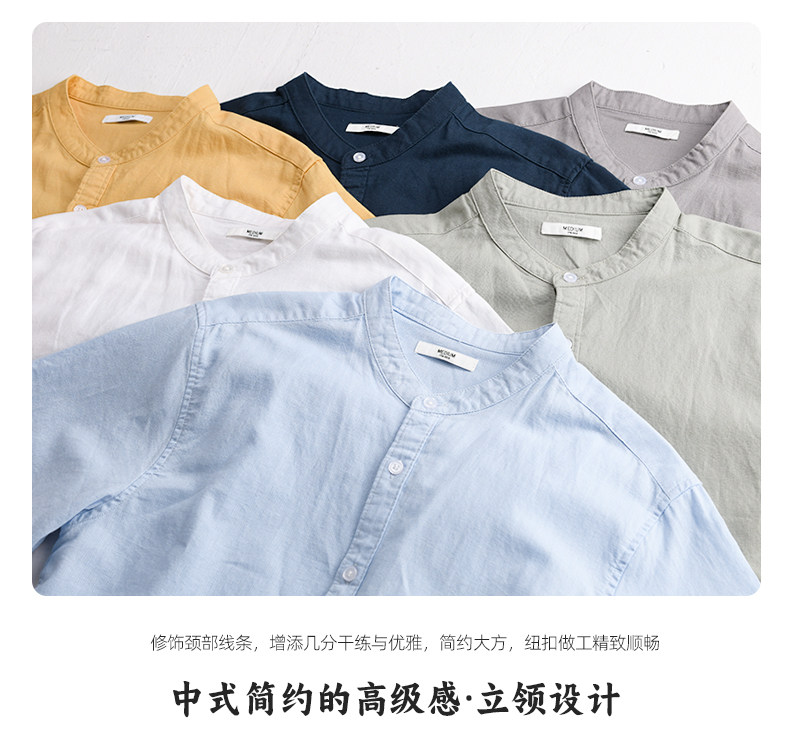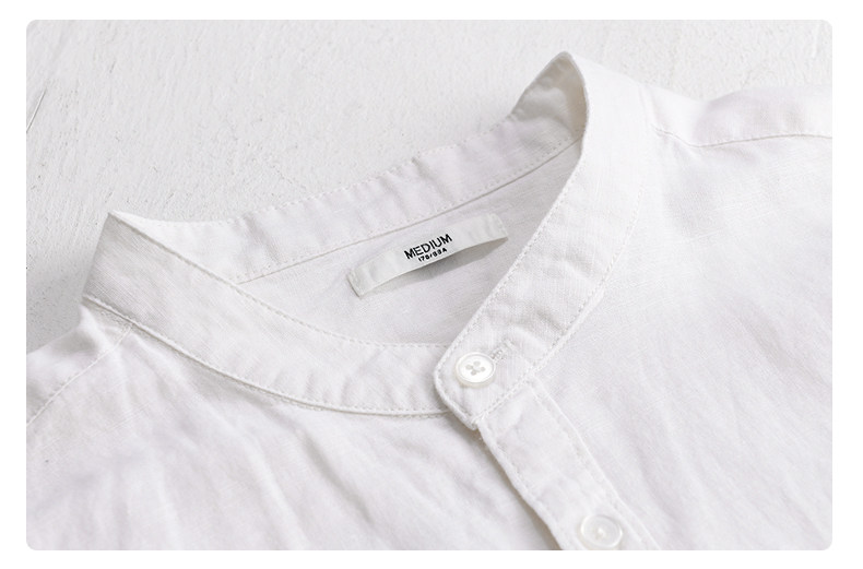 Casual Business Style Small Stand-Up Collar Linen Short-Sleeved White Shirt Men's Round-Neck Cotton and Linen Casual Shirt Collarless Top