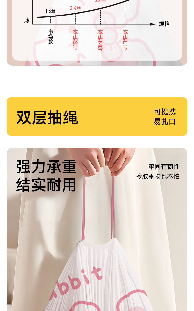 Biodegradable tear-free garbage bag in the pool, household portable thickened large drawstring bag 2025 new affordable package