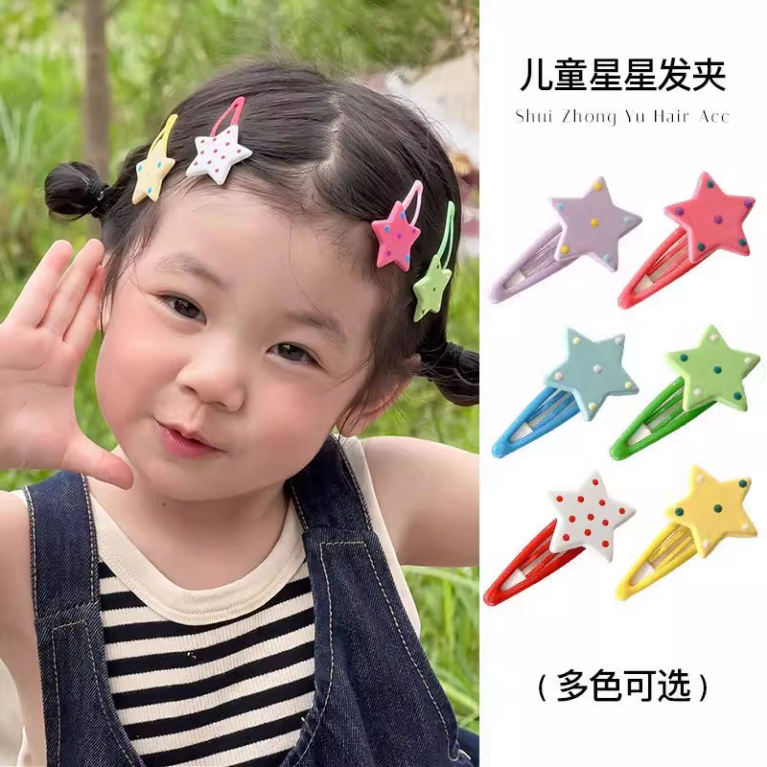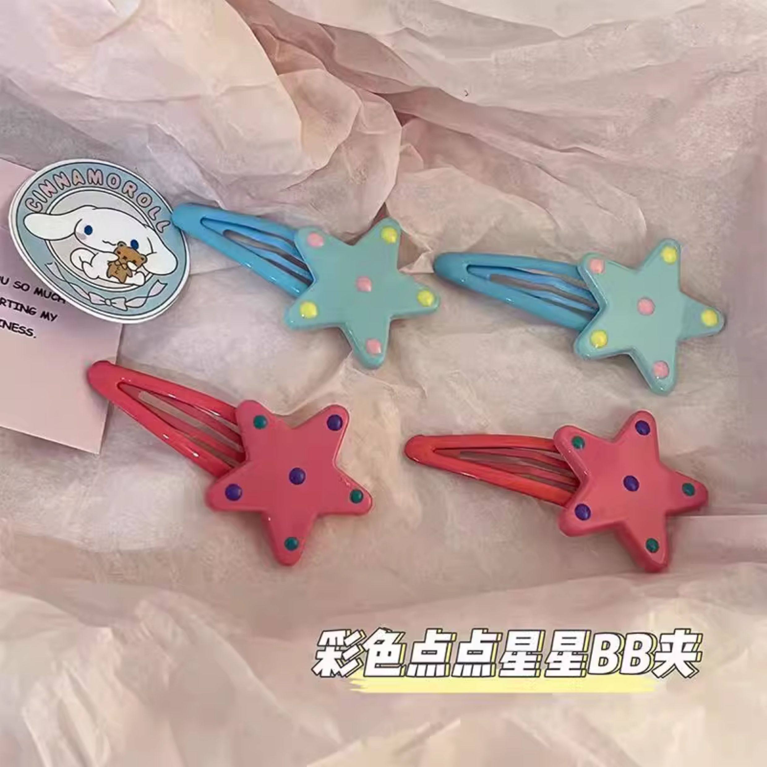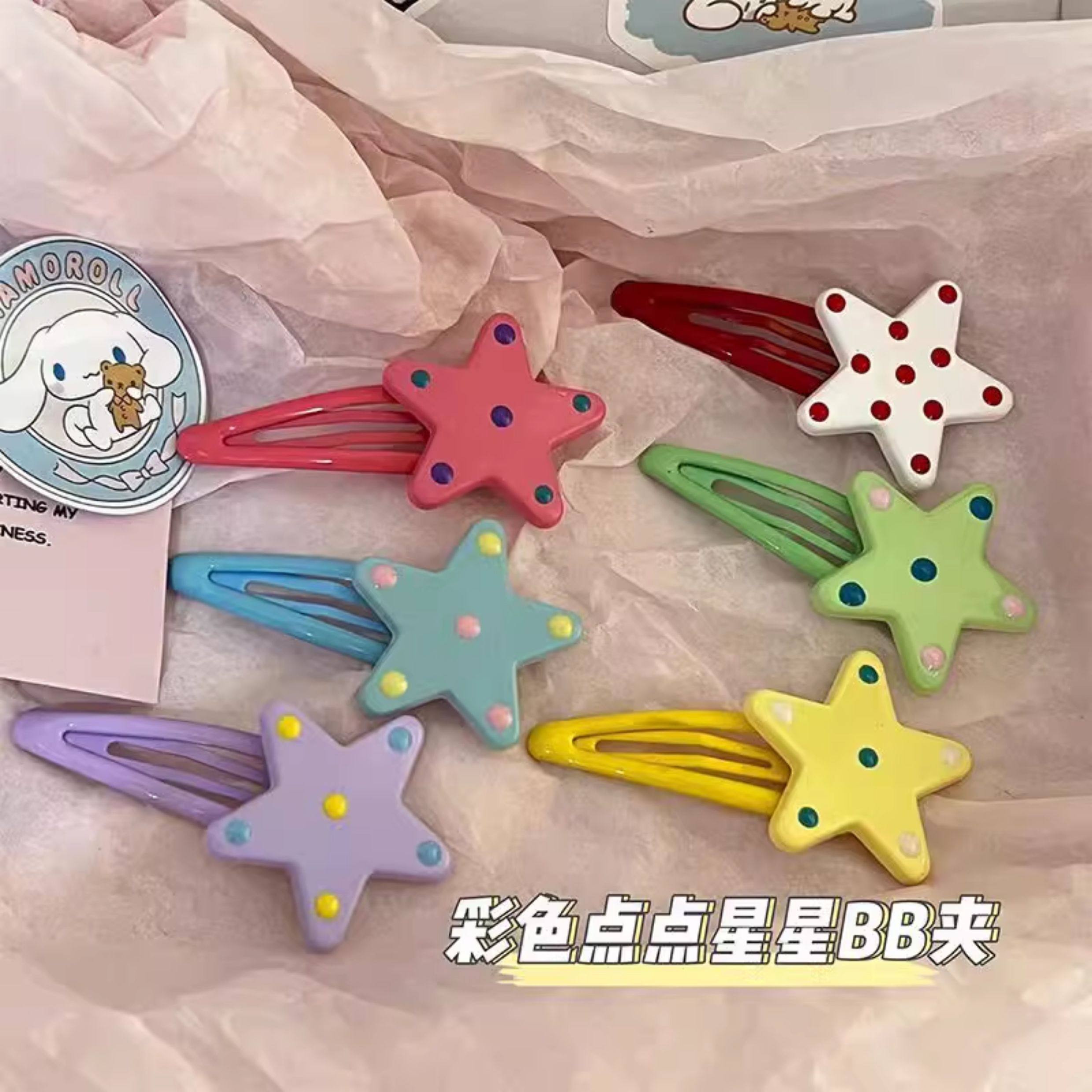 Children's Forehead Broken Hair Side Clip Summer Dopamine Color Dot Five-Pointed Star Bb Clip Does Not Hurt Hair Bangs Clip