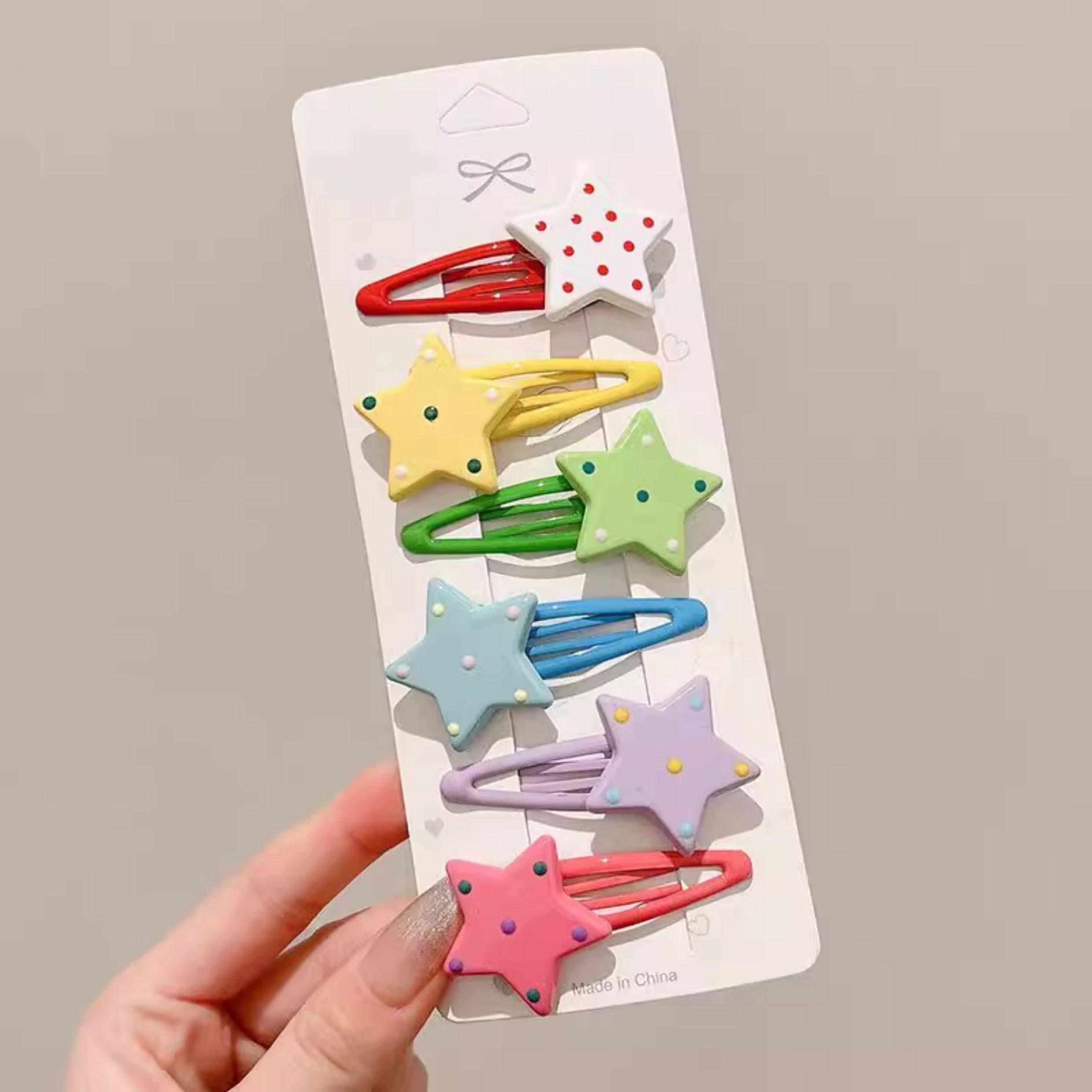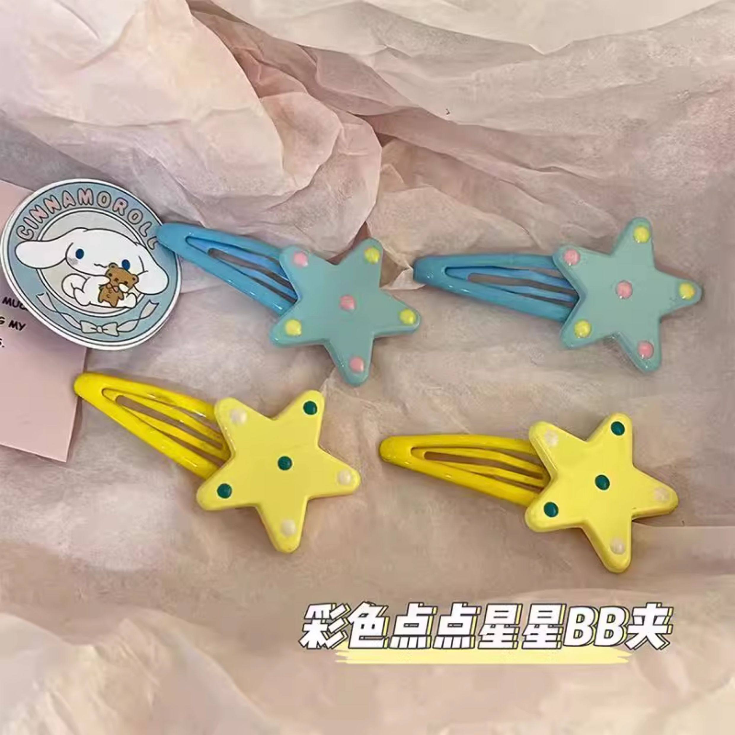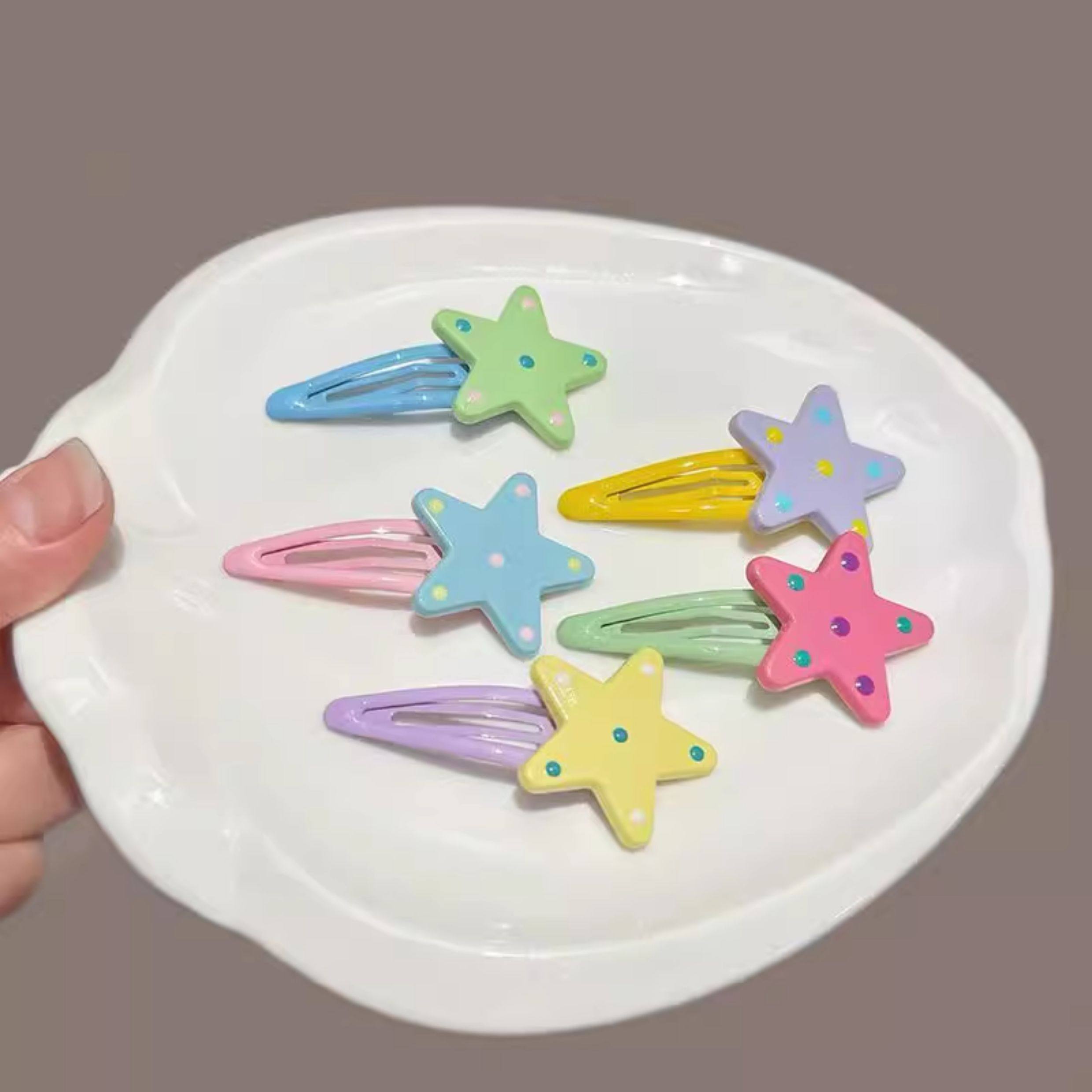 Children's Forehead Broken Hair Side Clip Summer Dopamine Color Dot Five-Pointed Star Bb Clip Does Not Hurt Hair Bangs Clip