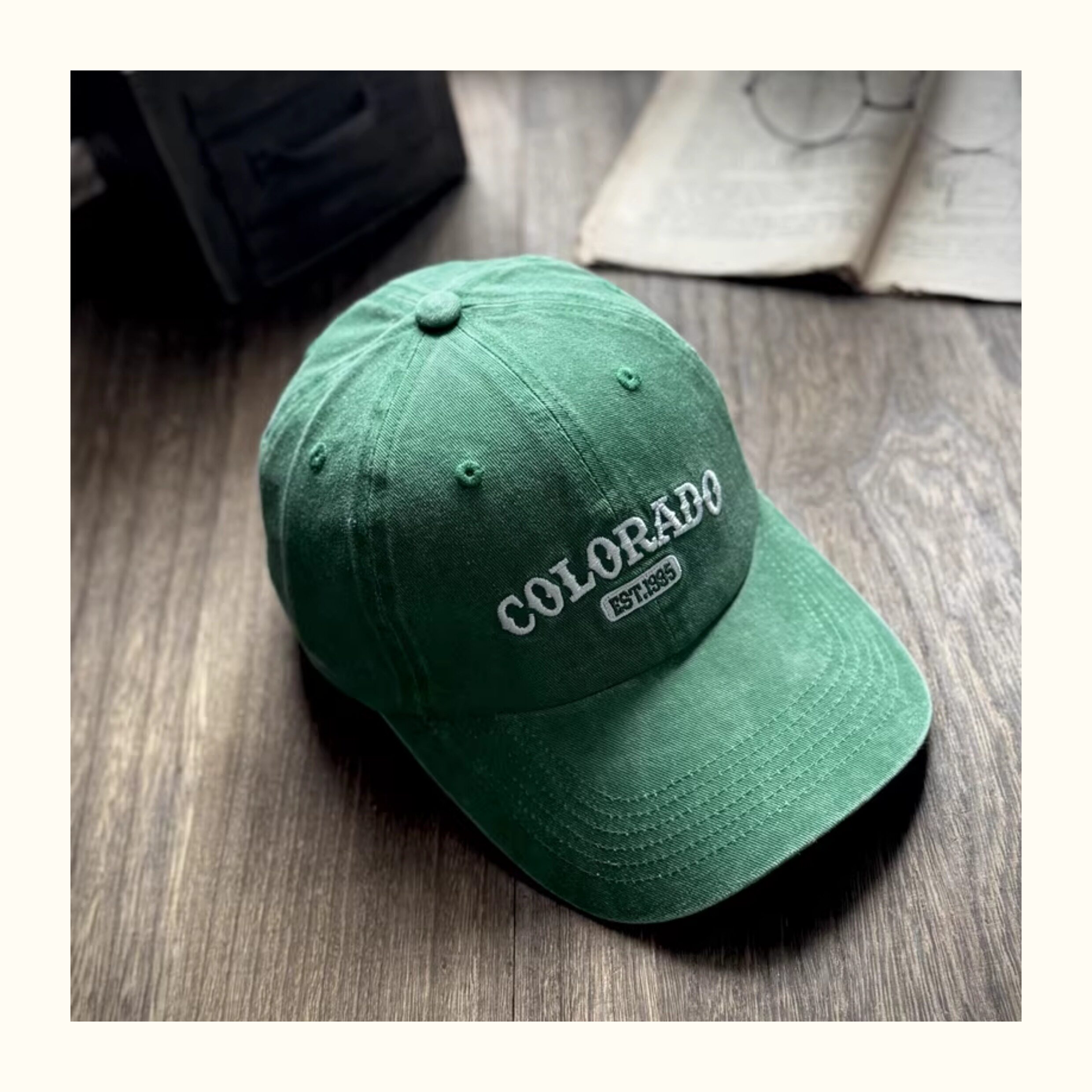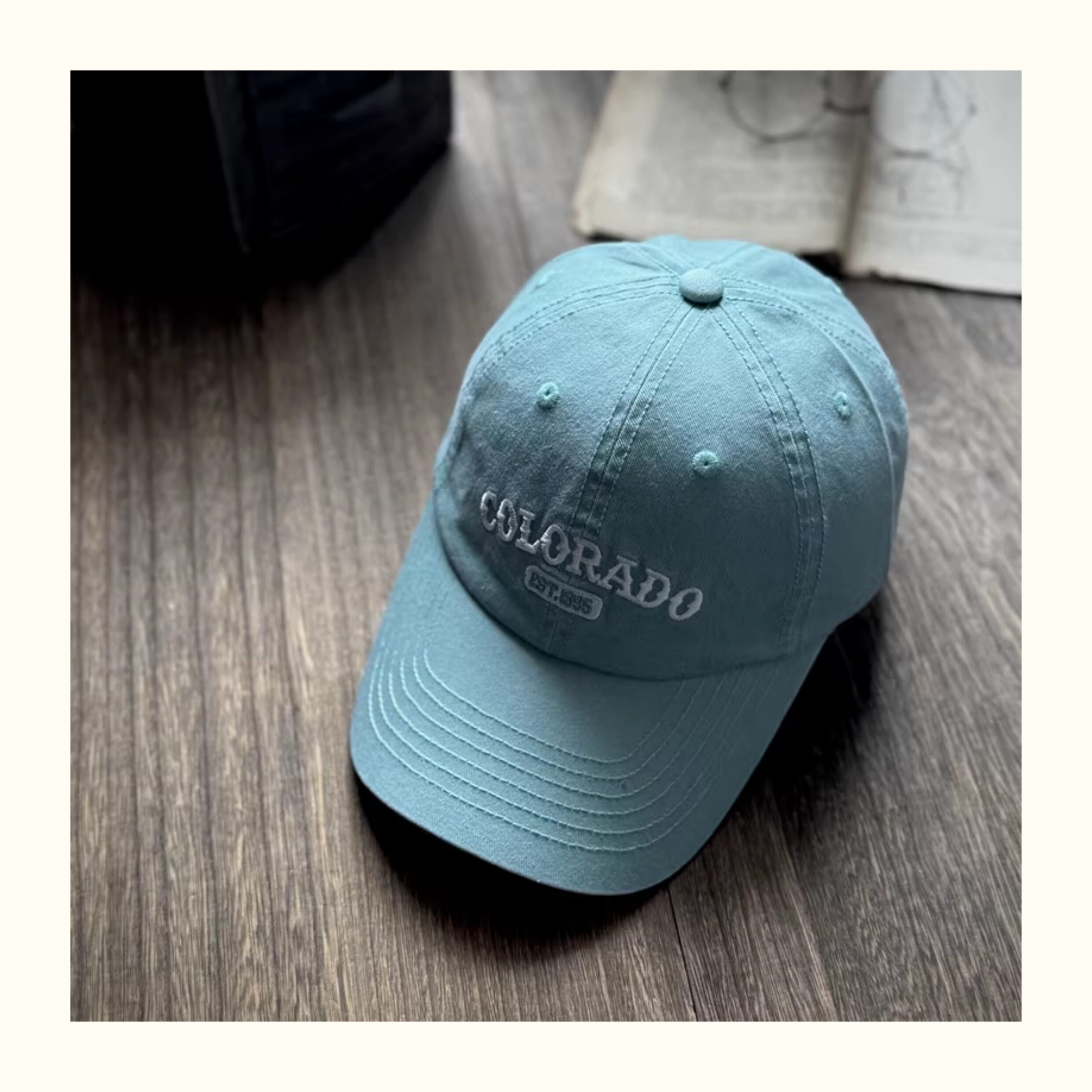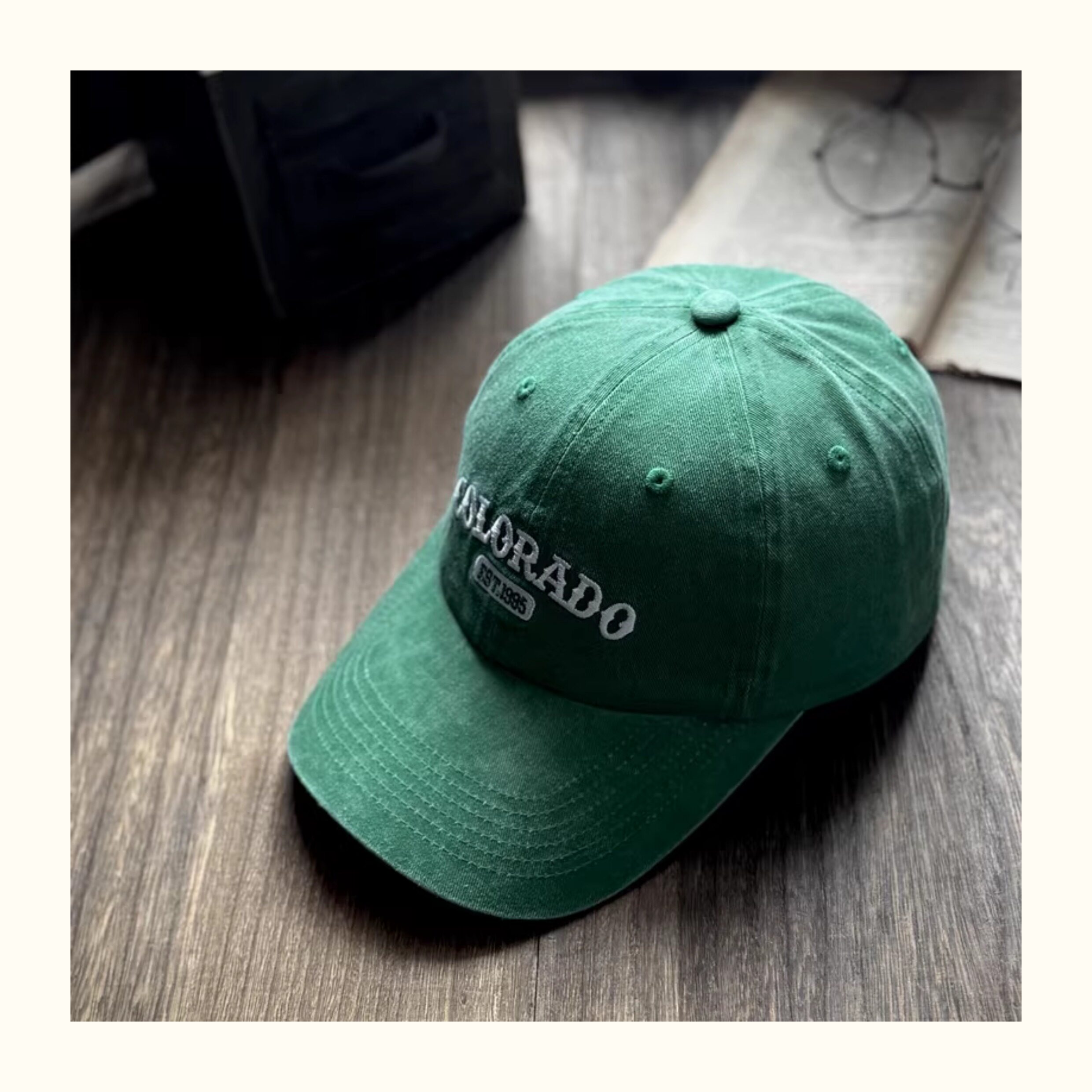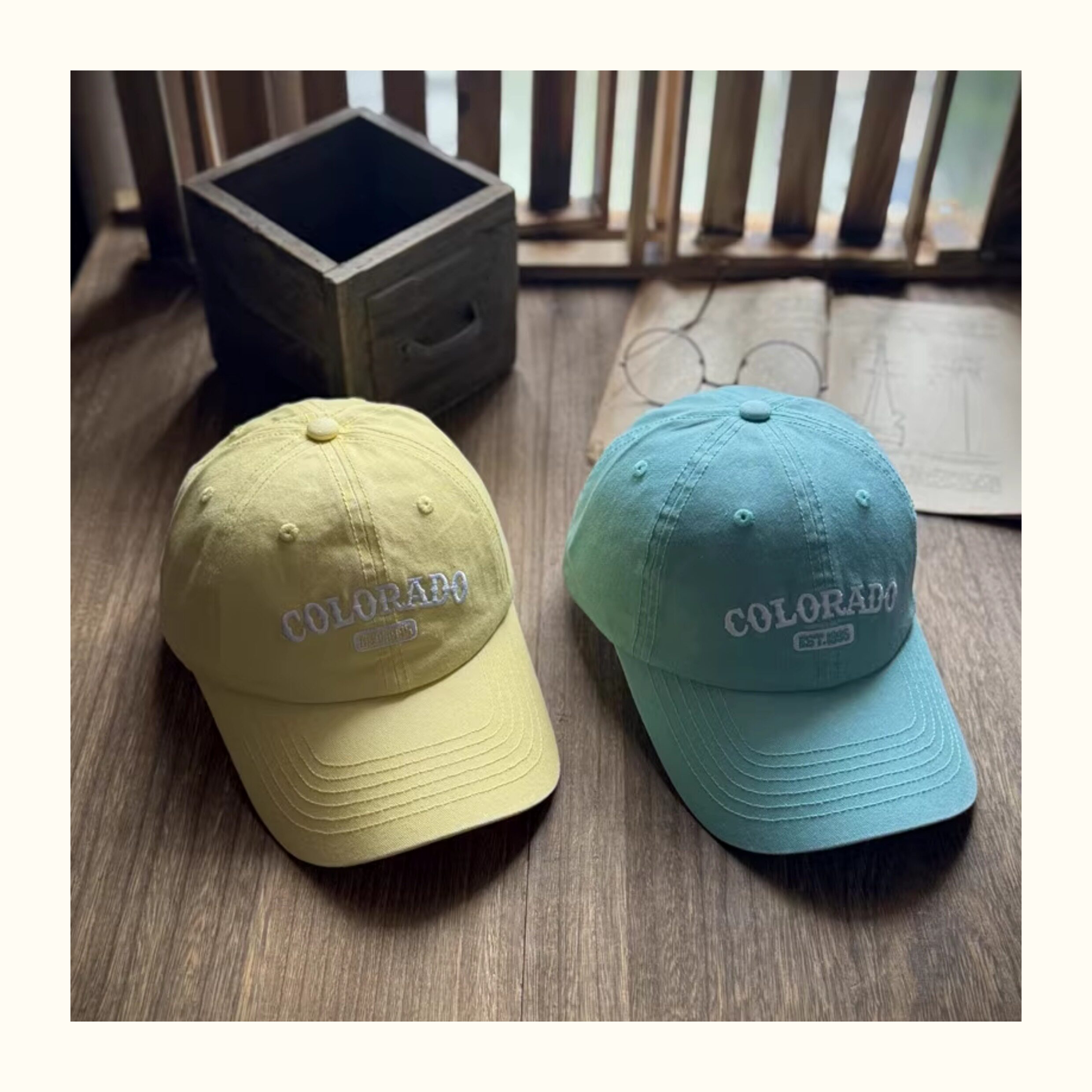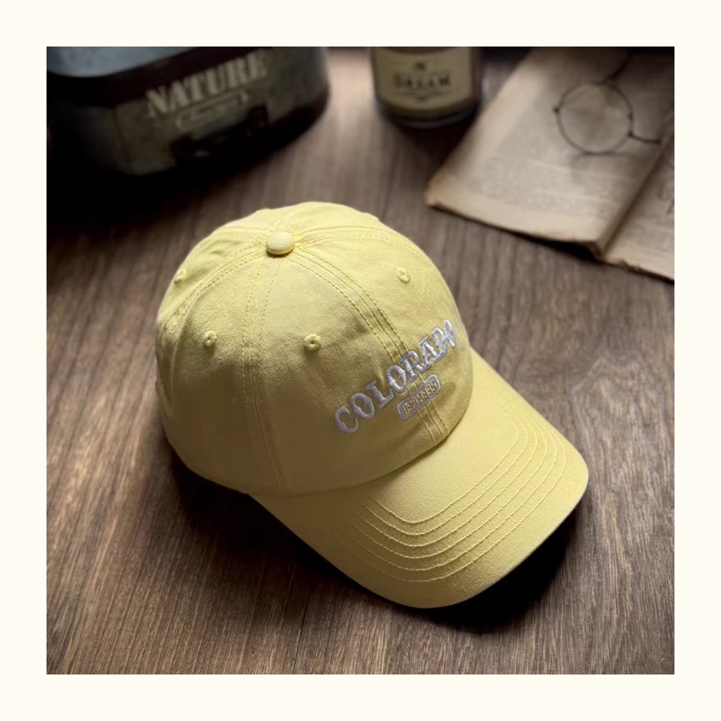 Distressed Sand-Washed Korean Style Trendy Brand Washed Baseball Cap Soft Top Small Letter Embroidery Yellow Duckbill Cap Simple Green