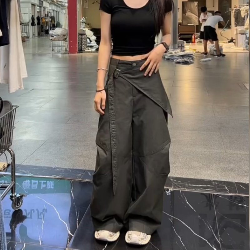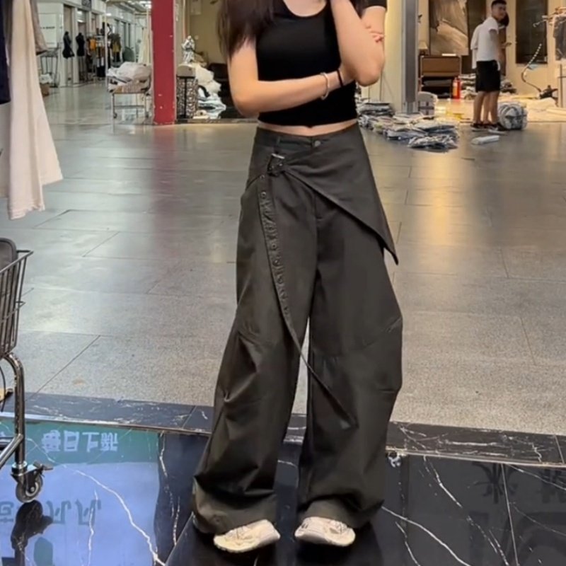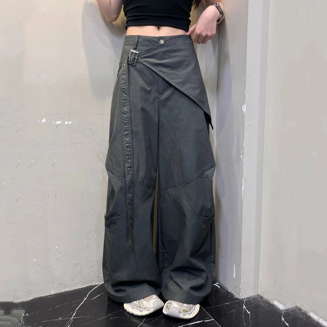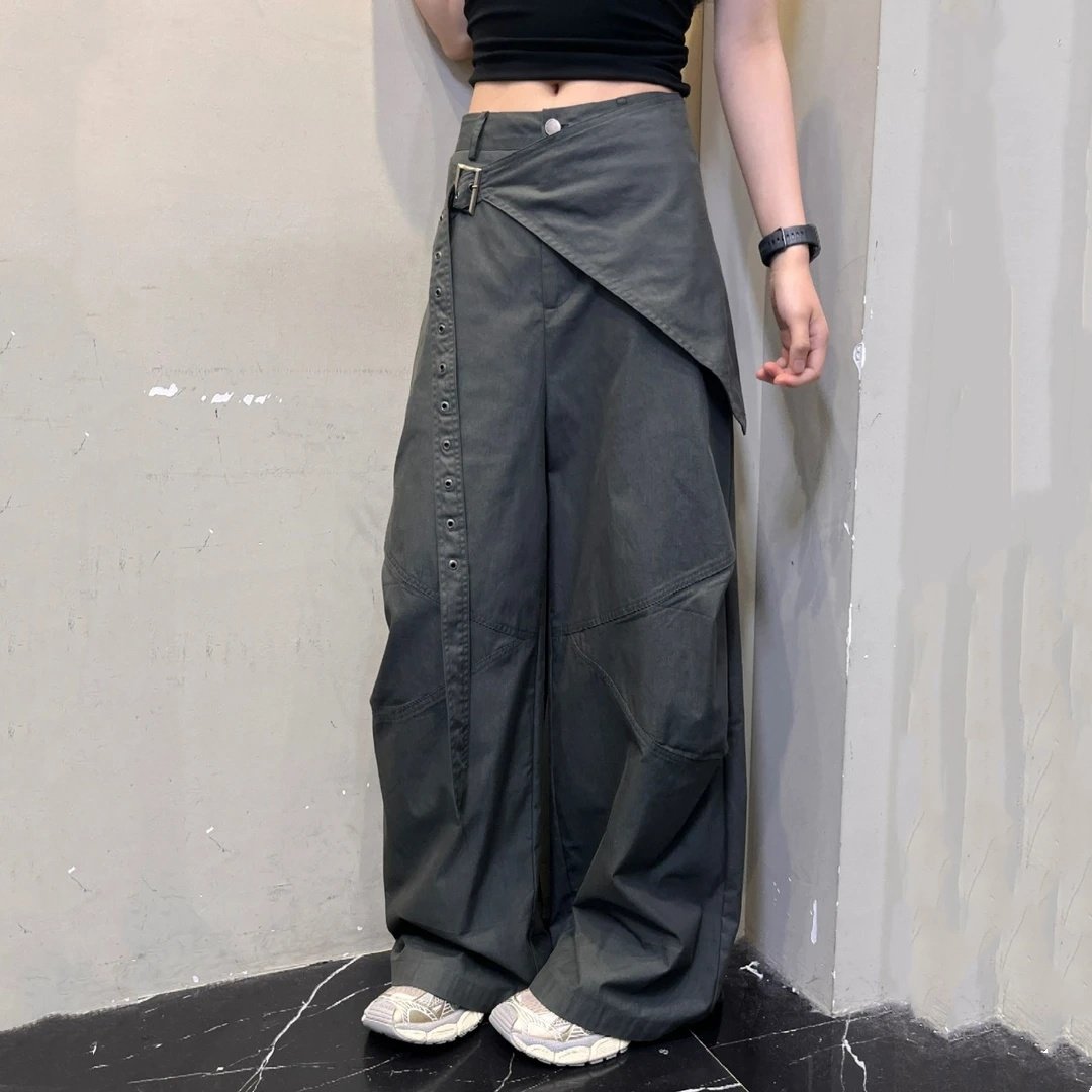 Heartbeat-Inspired Waist Buckle Design Layered Casual Pants, New Autumn Style, Plus Size, Hip-Covering, Slimming, Floor-Length Pants