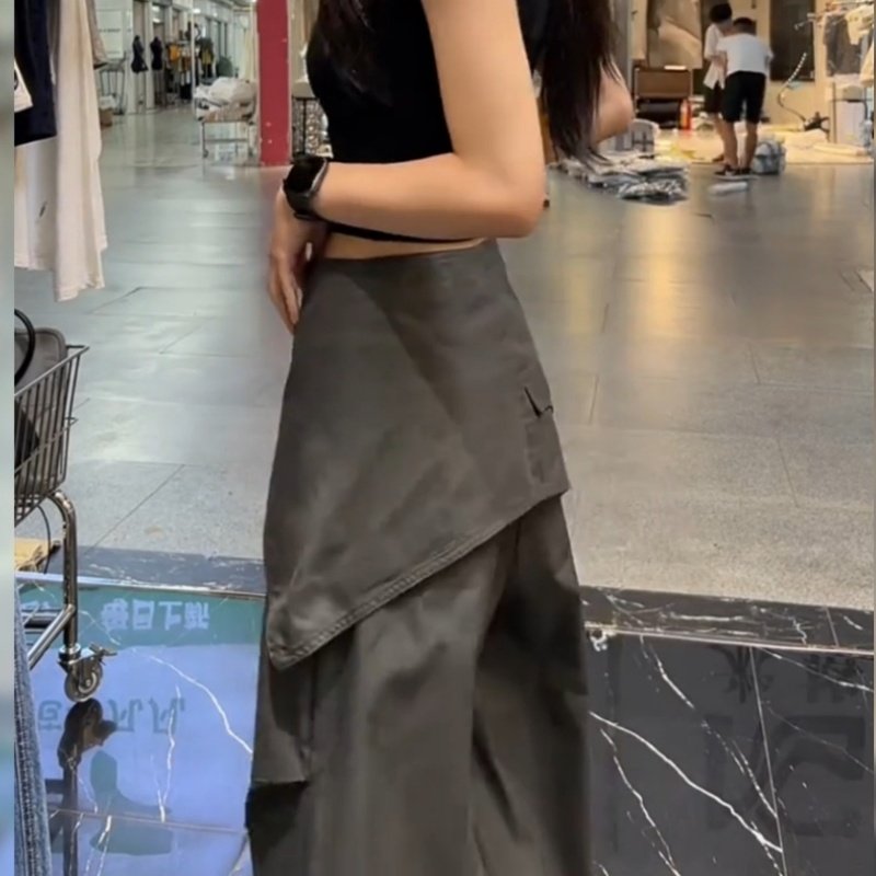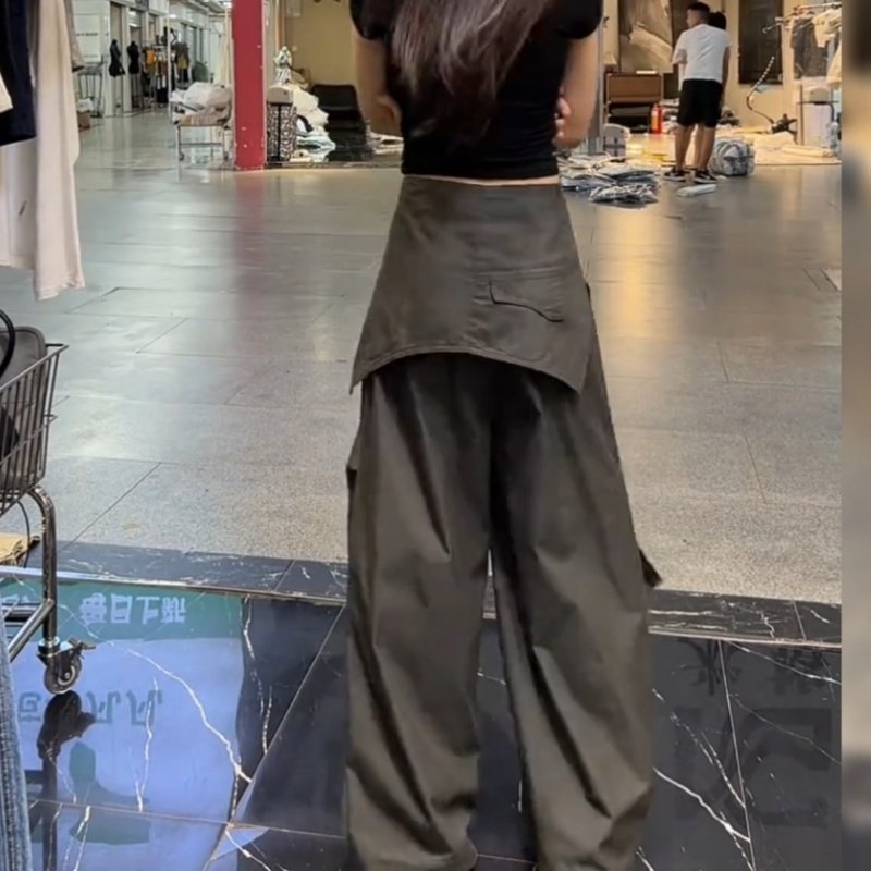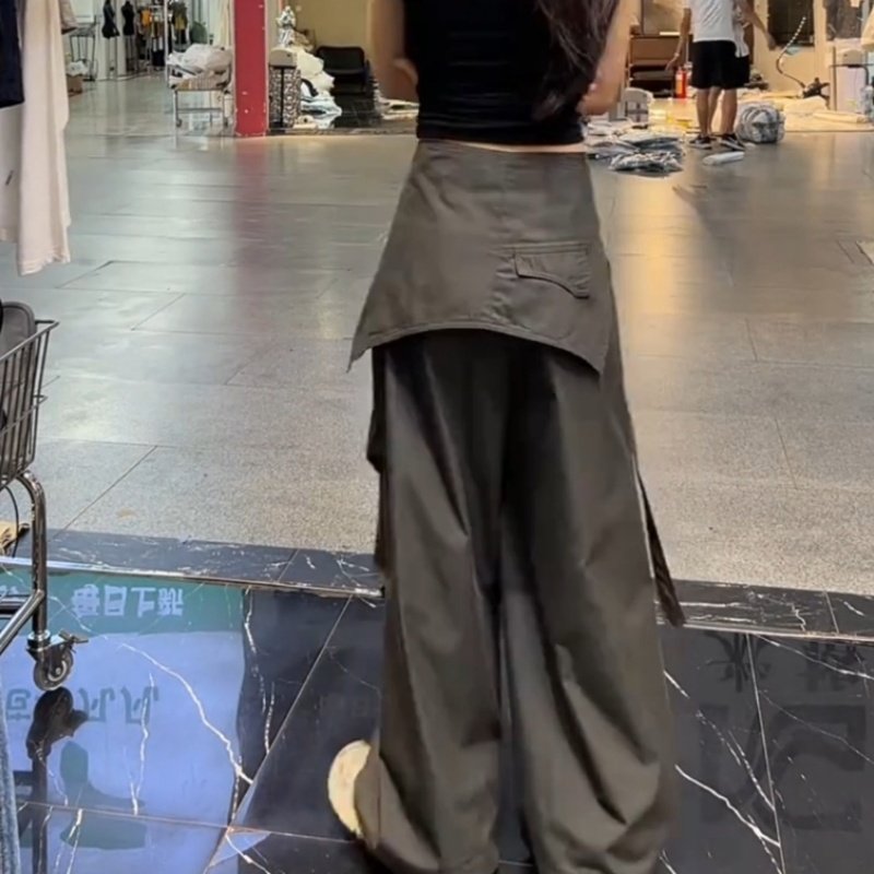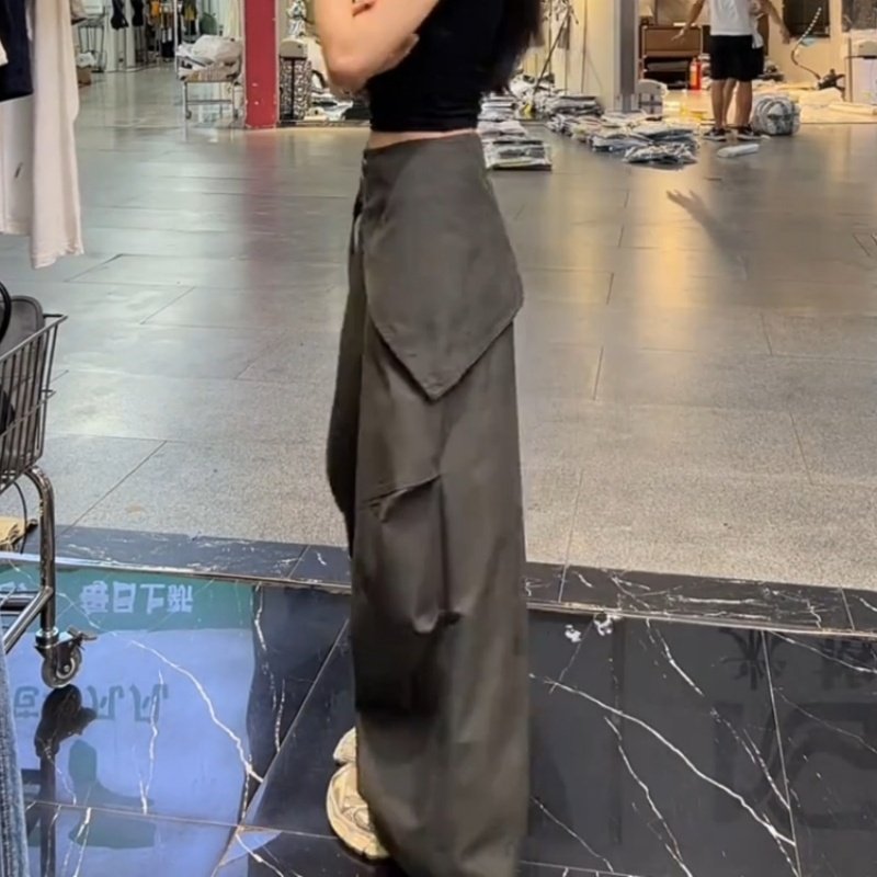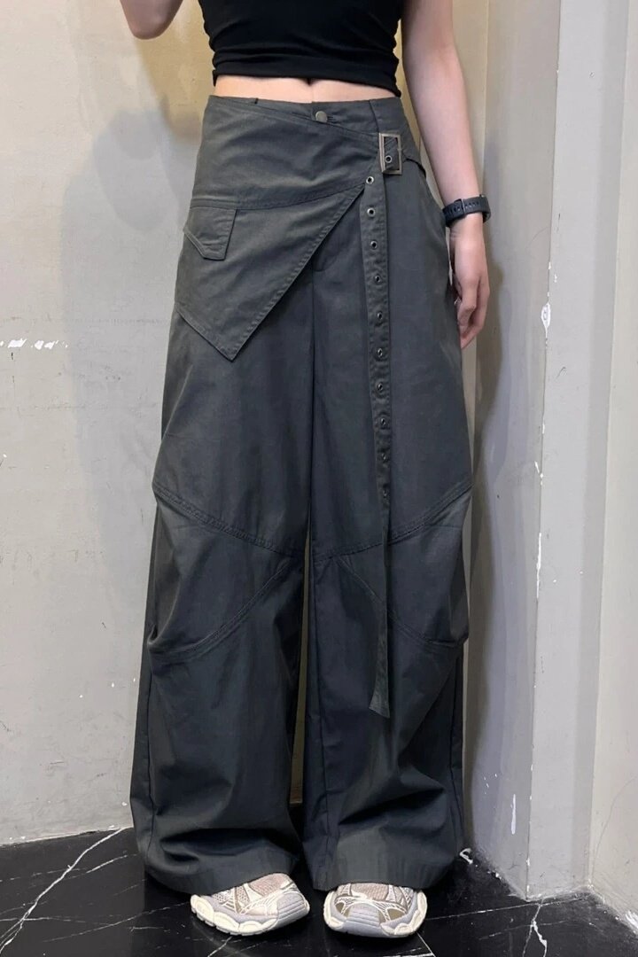 Heartbeat-Inspired Waist Buckle Design Layered Casual Pants, New Autumn Style, Plus Size, Hip-Covering, Slimming, Floor-Length Pants