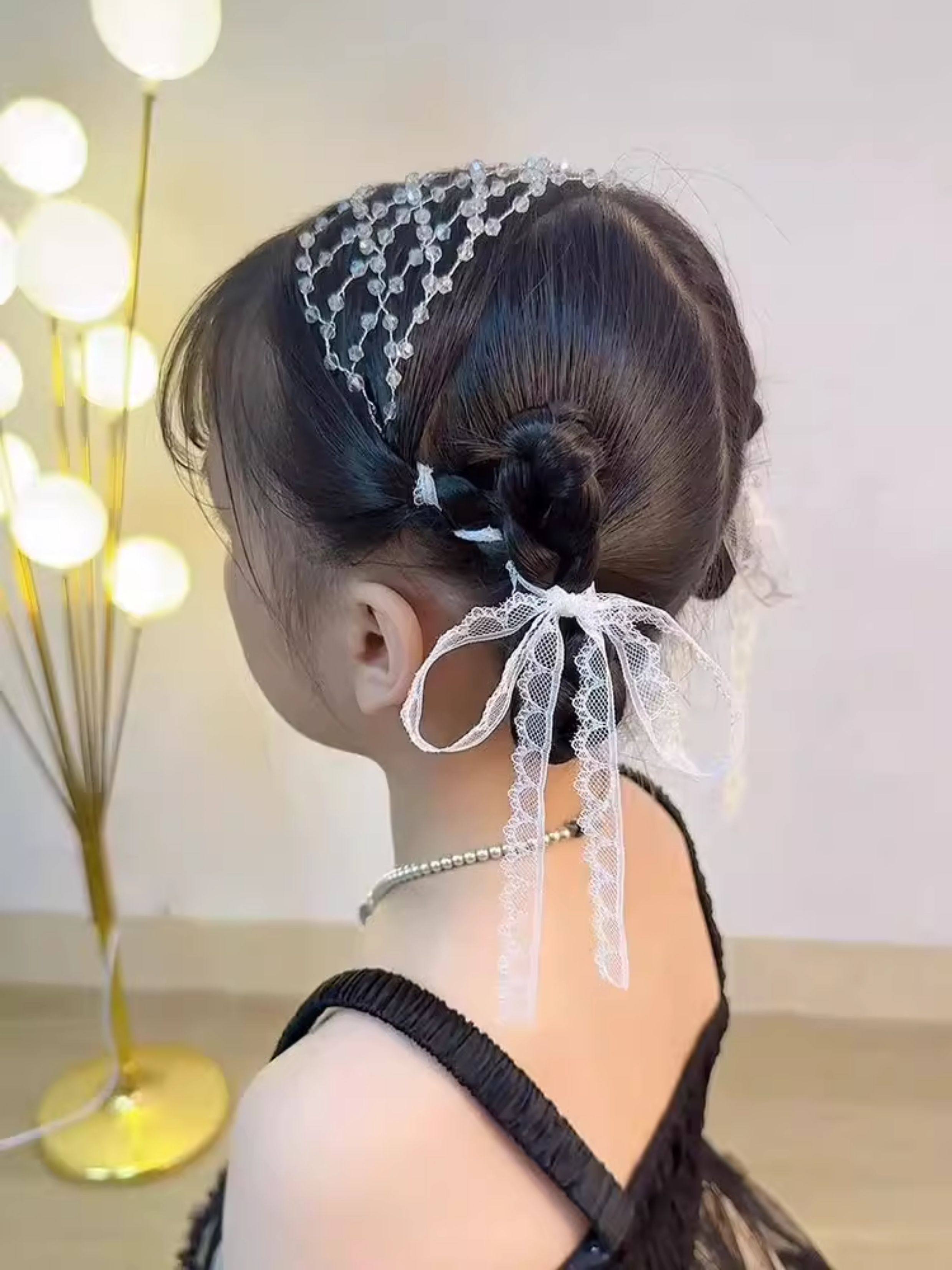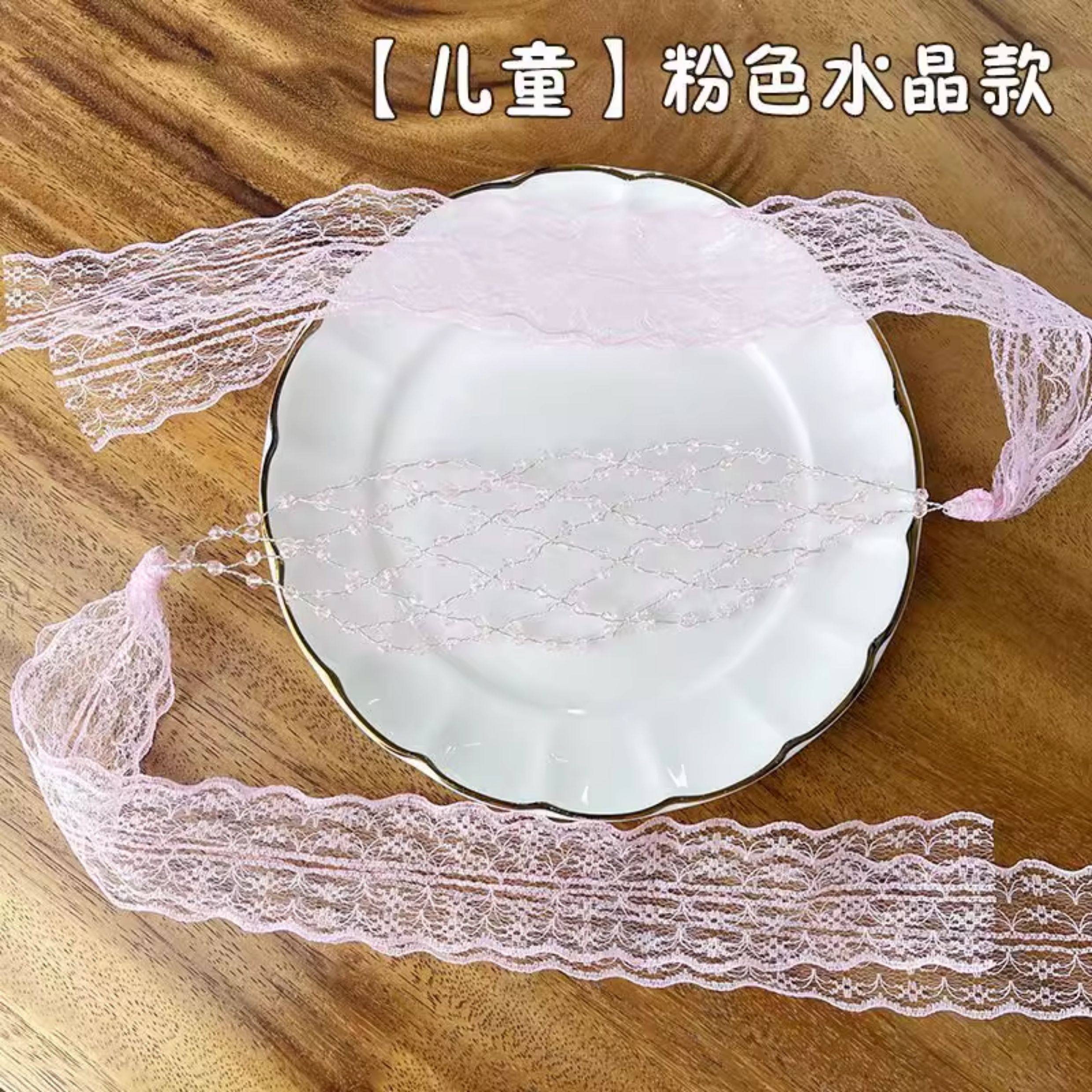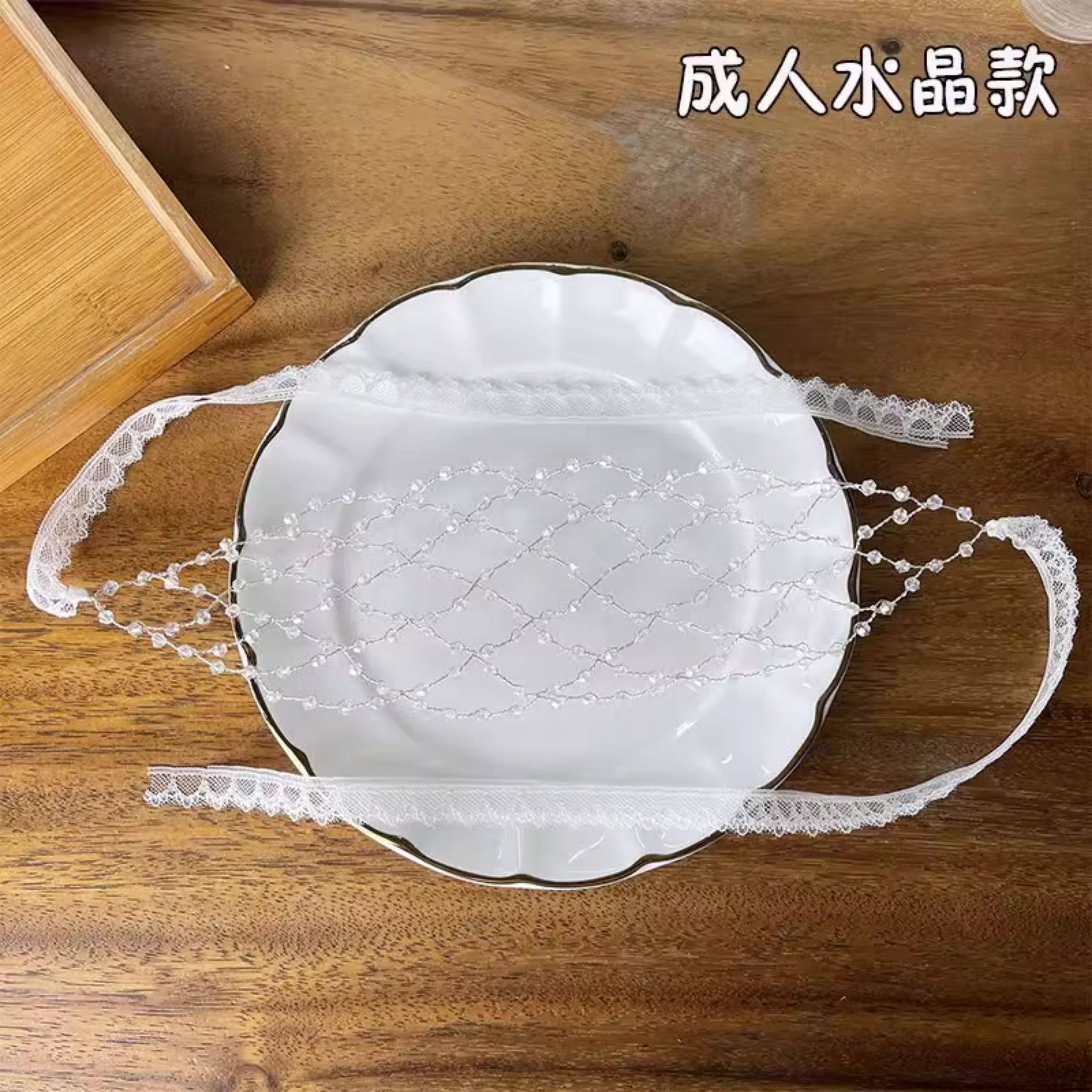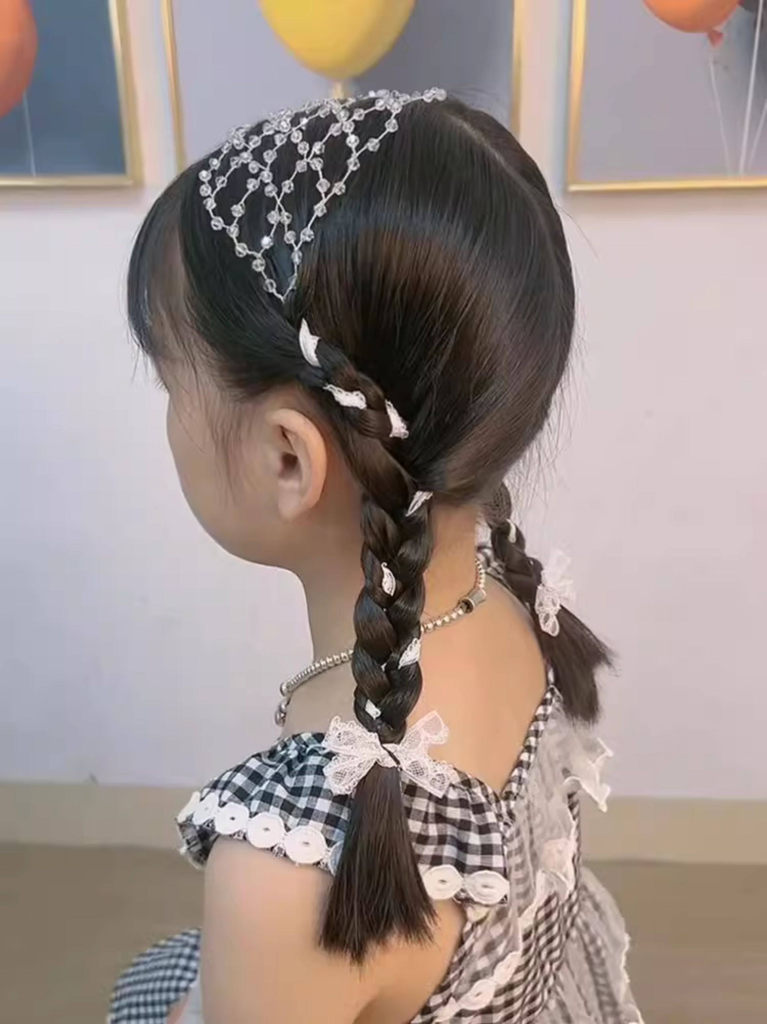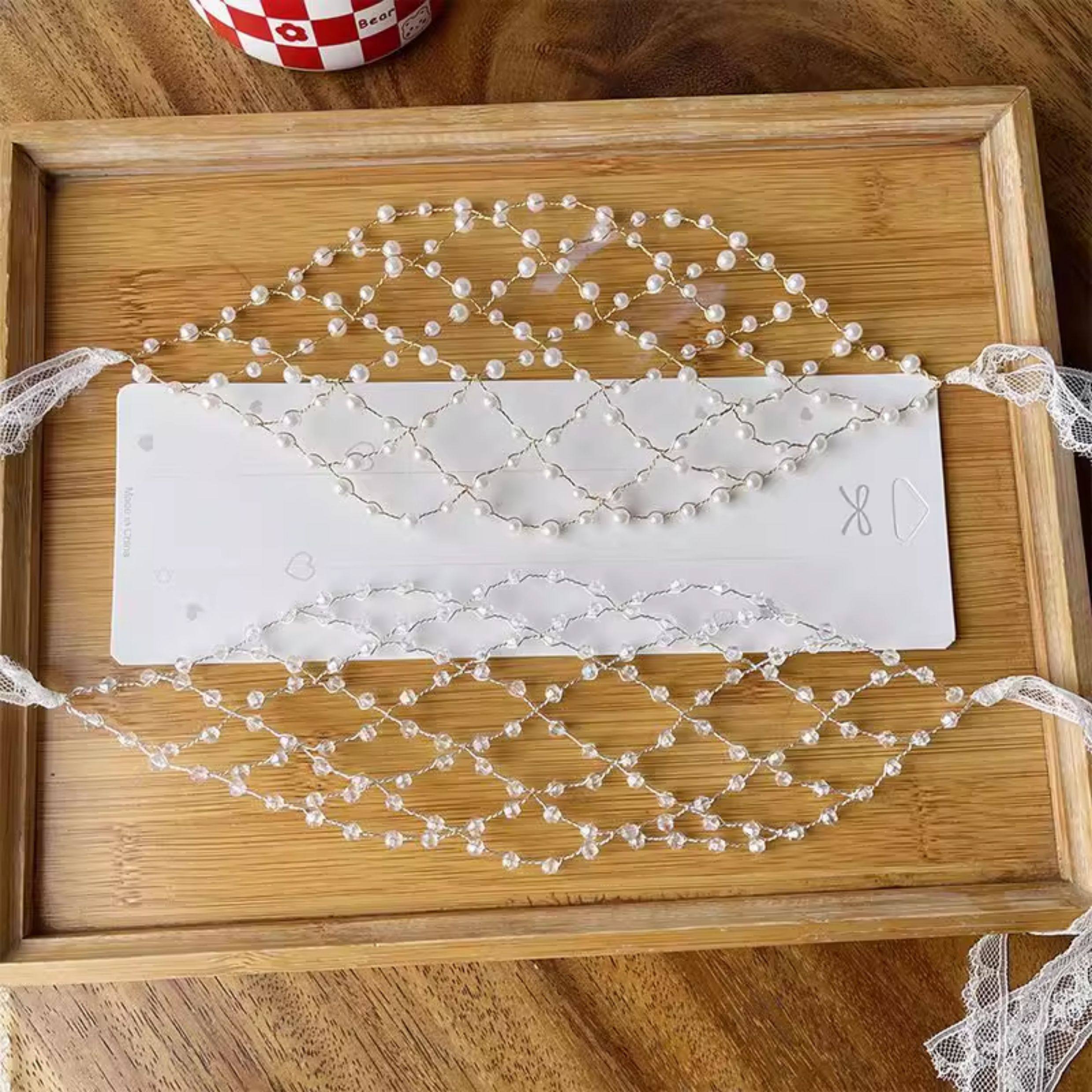 女童2025新高定精致手工编织串珠水晶网发饰网状珍珠蕾丝带编发箍