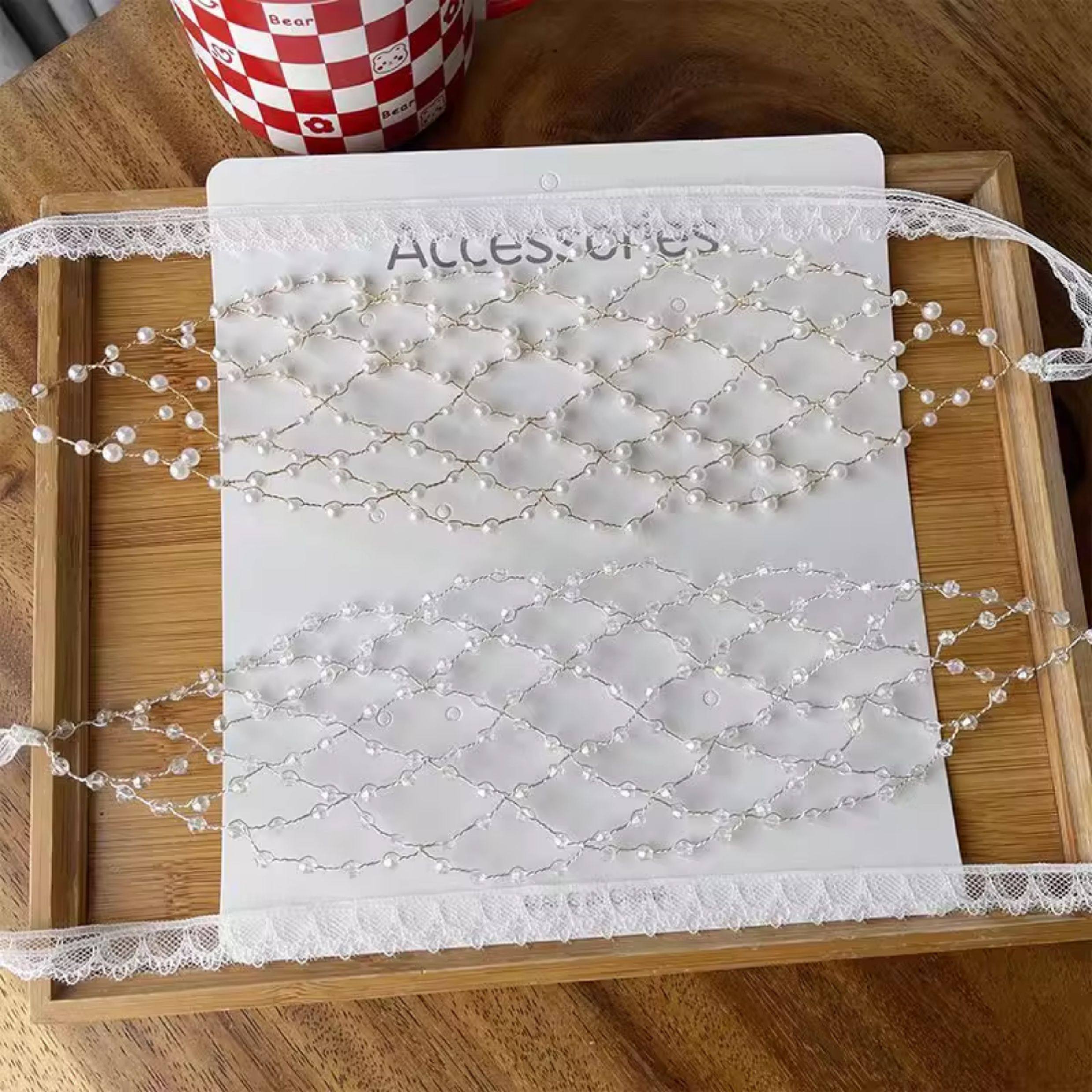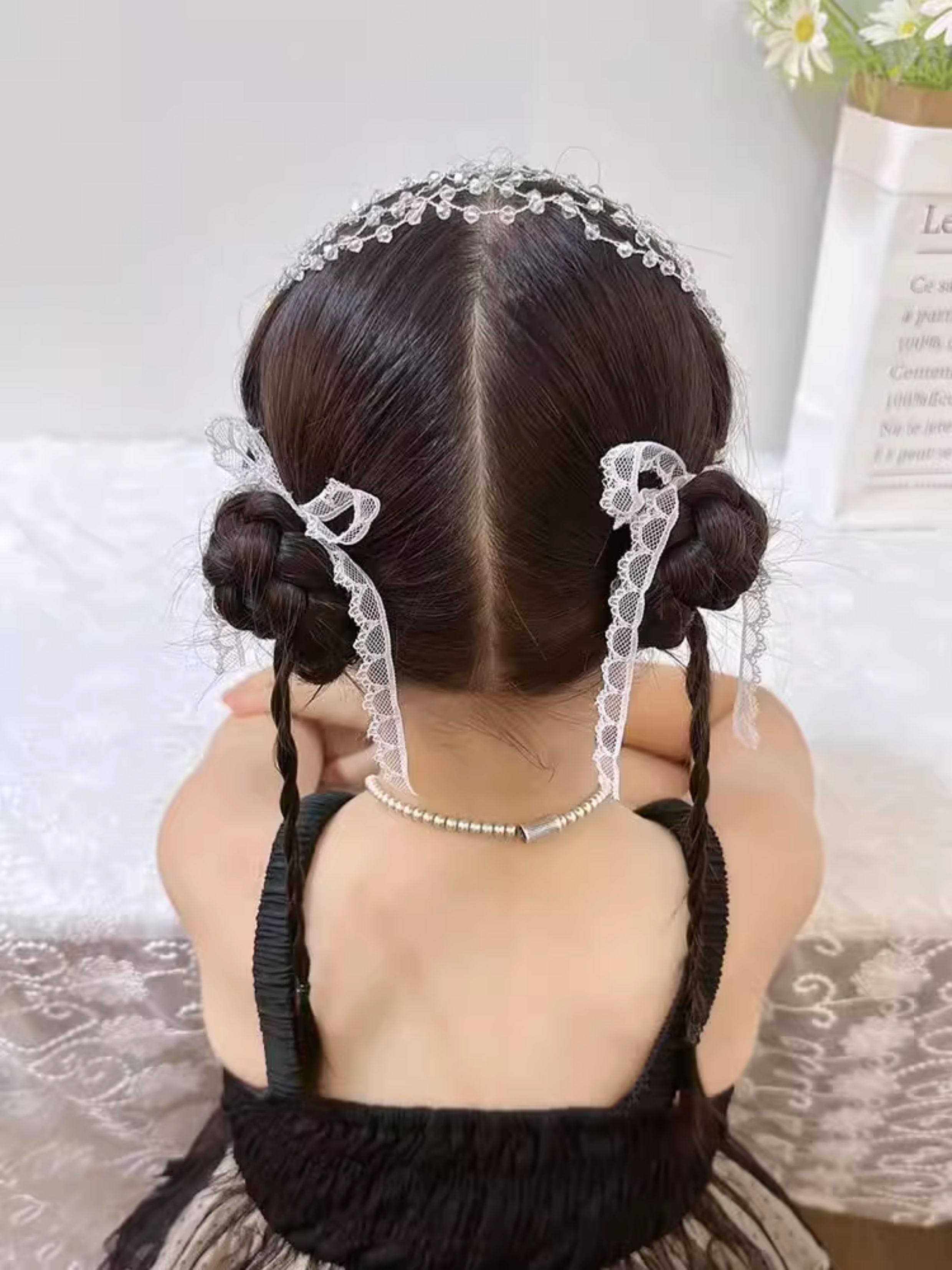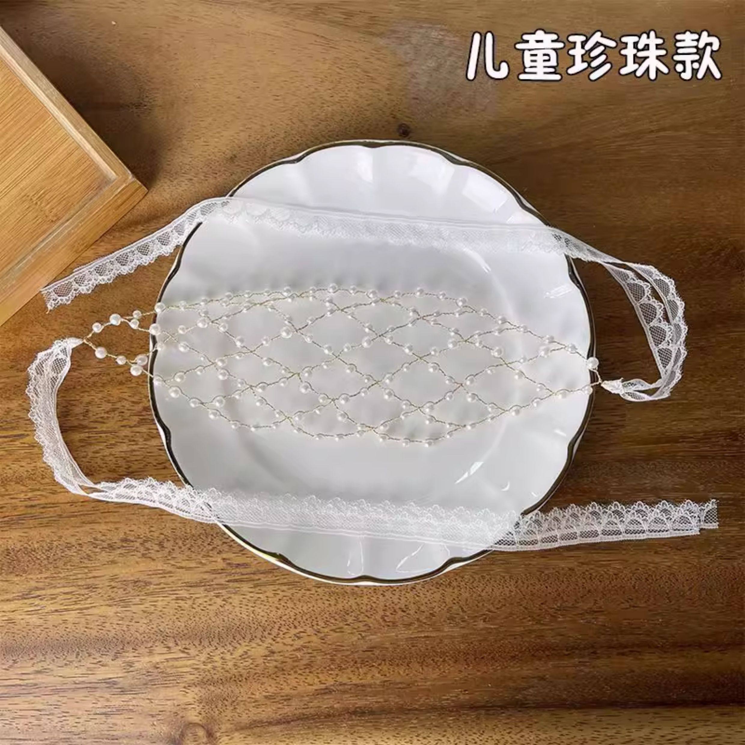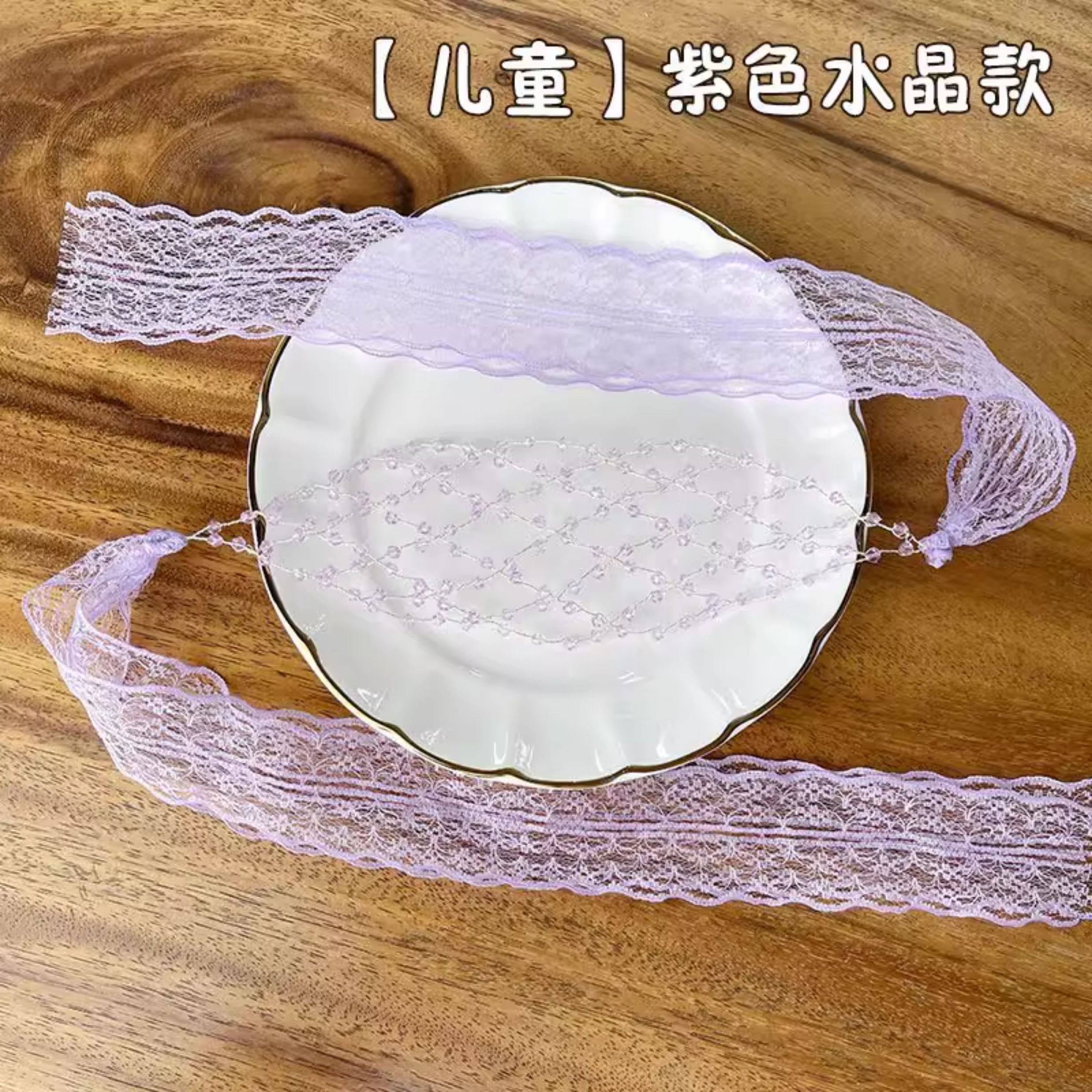 女童2025新高定精致手工编织串珠水晶网发饰网状珍珠蕾丝带编发箍