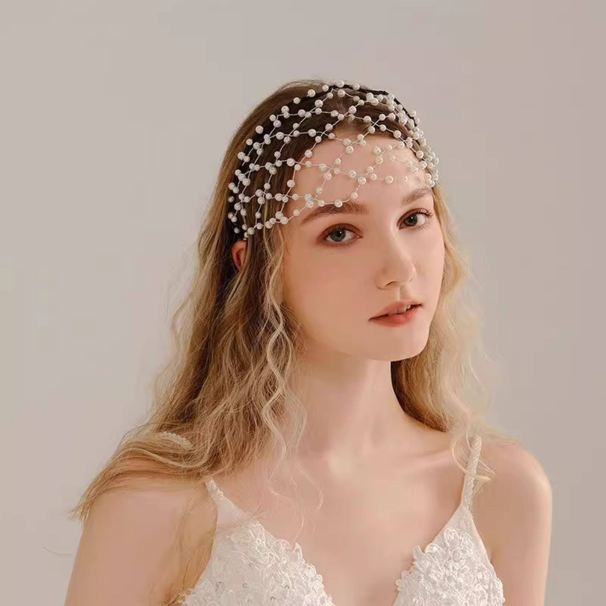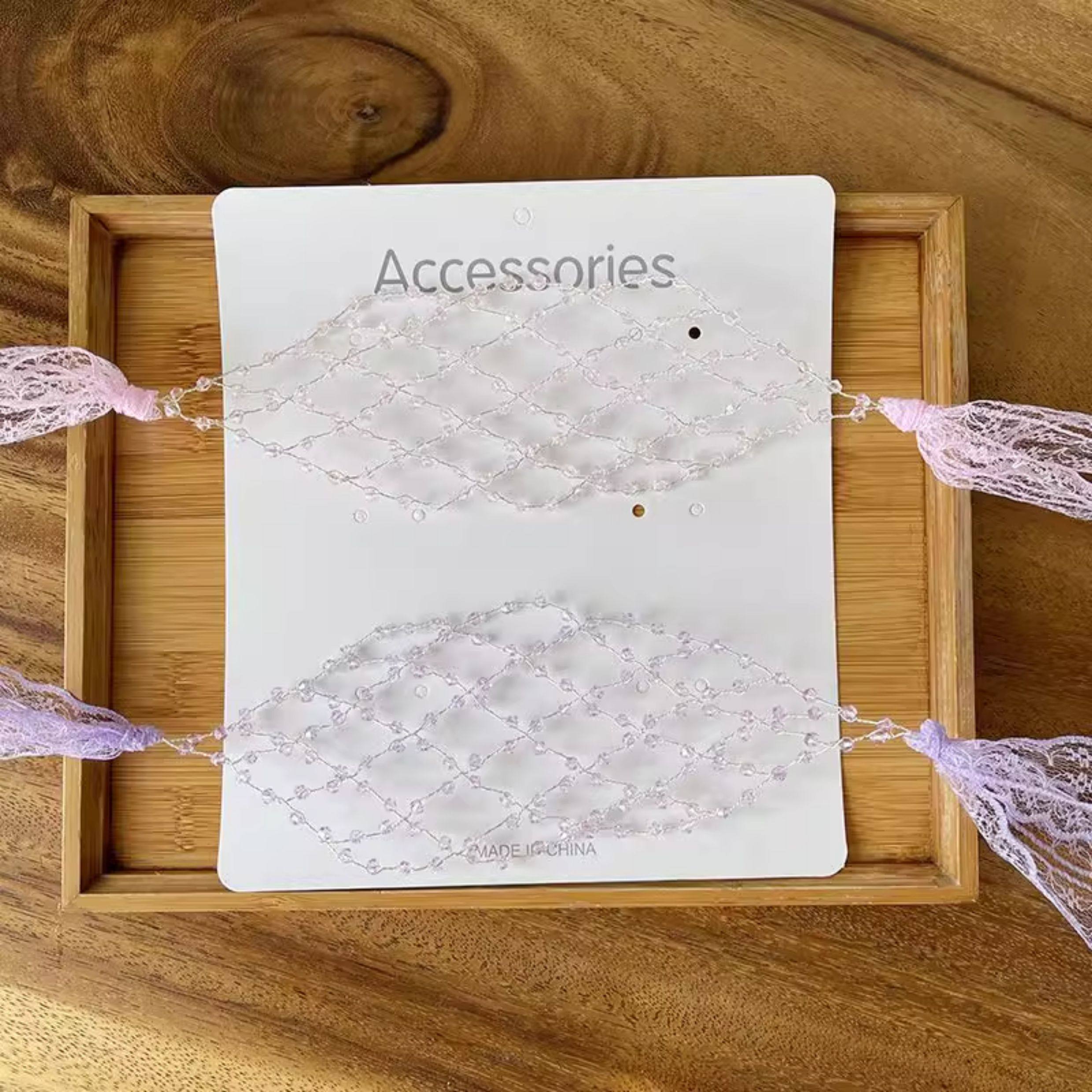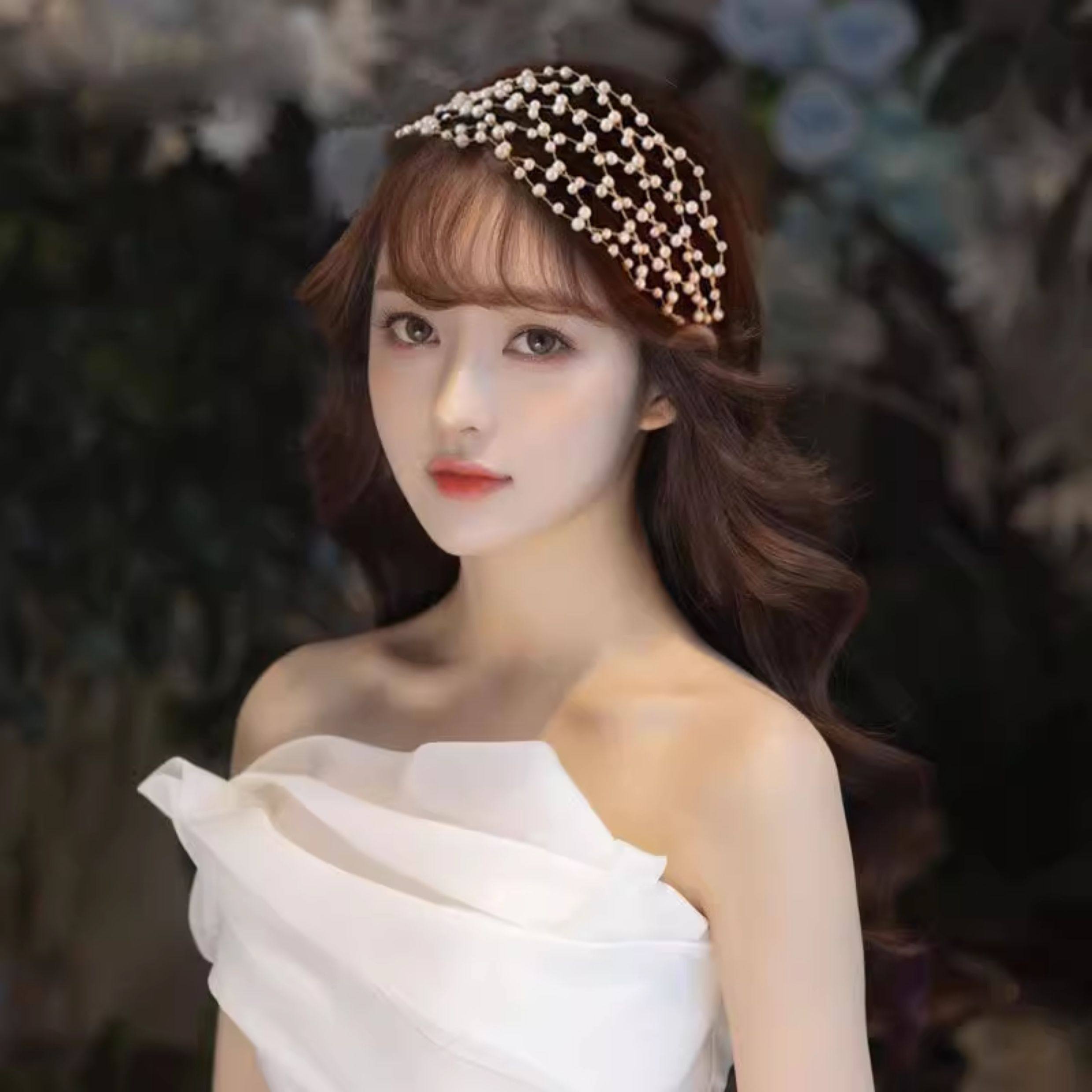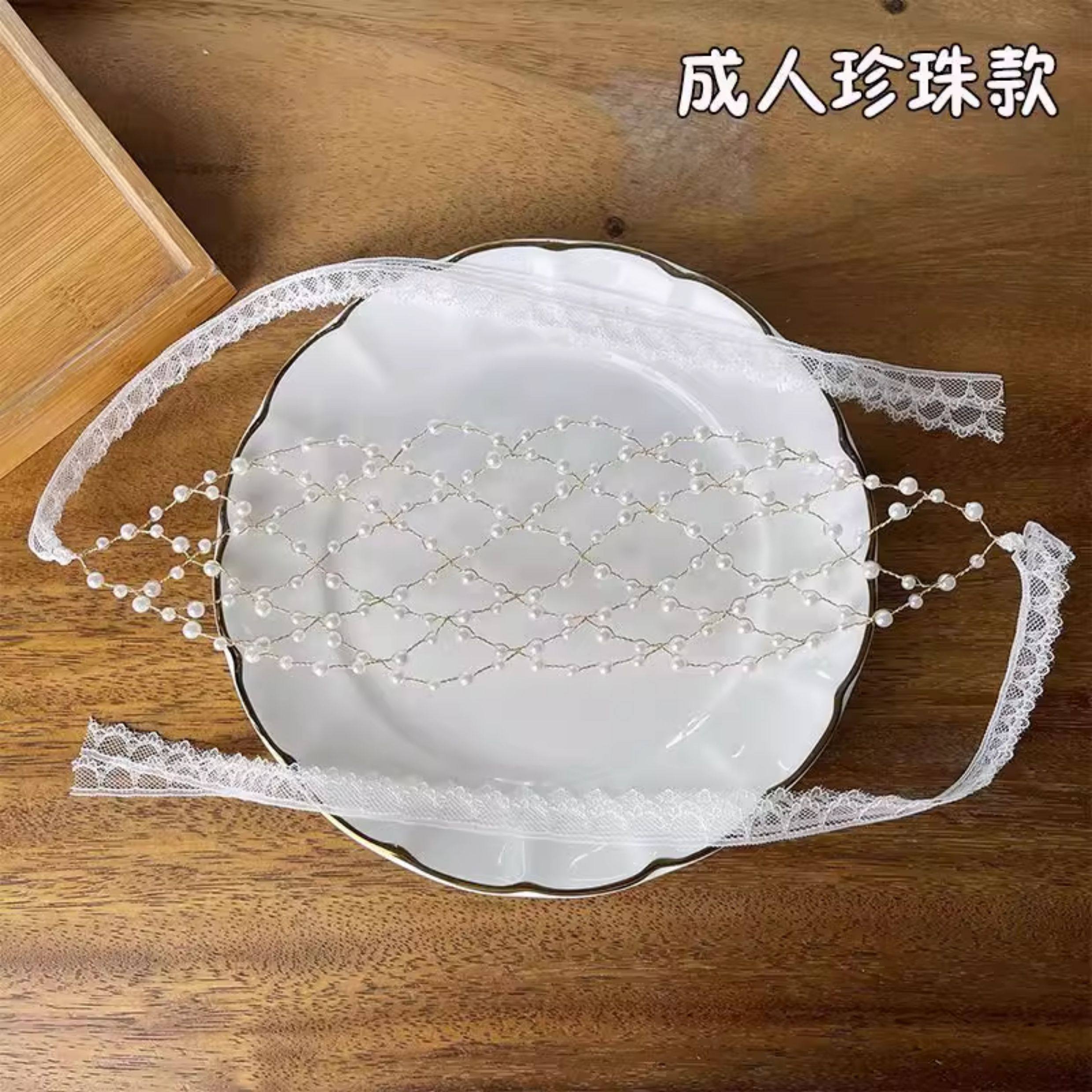 女童2025新高定精致手工编织串珠水晶网发饰网状珍珠蕾丝带编发箍