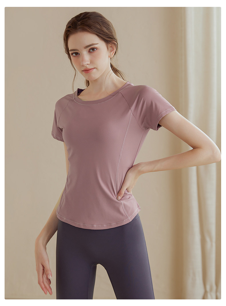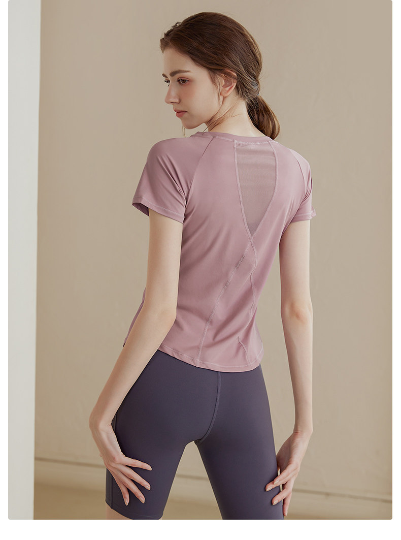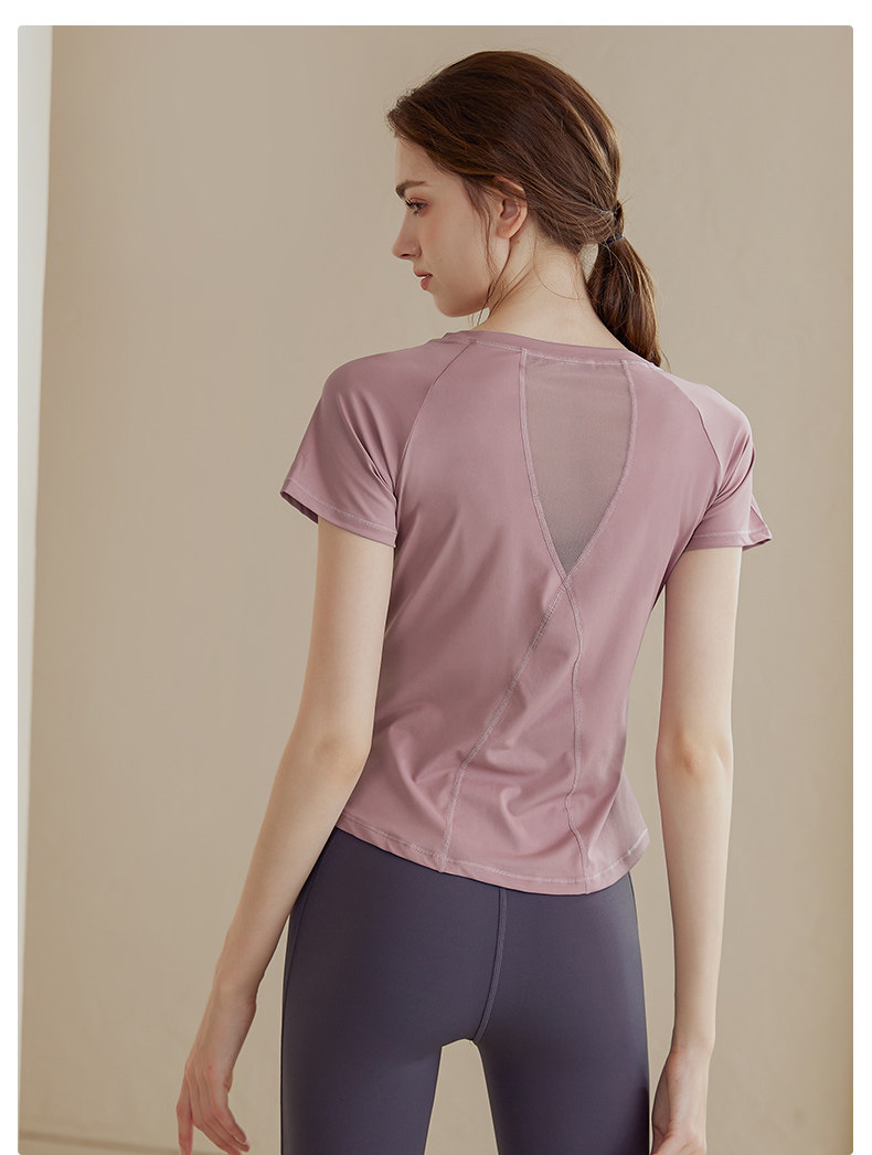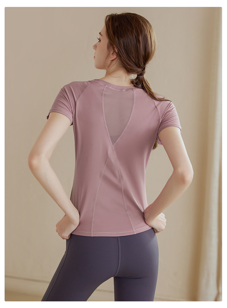 Mesh Quick-Drying Yoga Clothes for Women, Sports Tops, Short-Sleeved T-Shirts, Breathable, Slimming, Professional Running Training Fitness Clothes for Summer