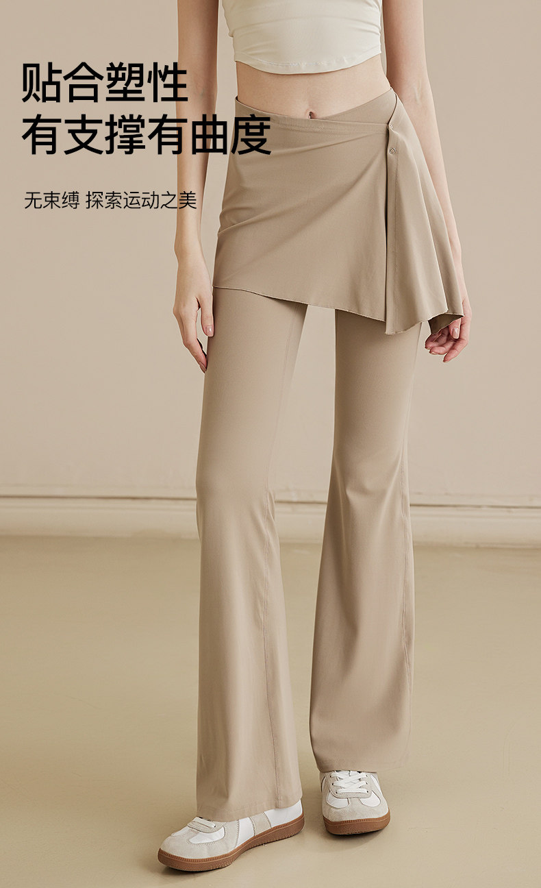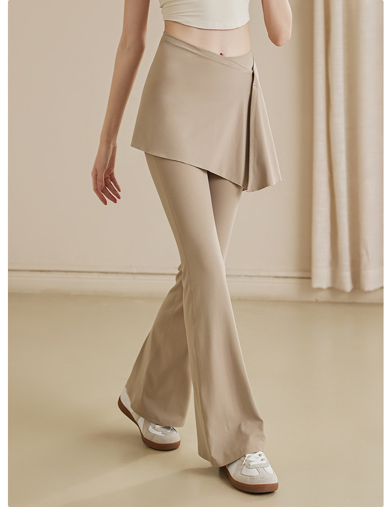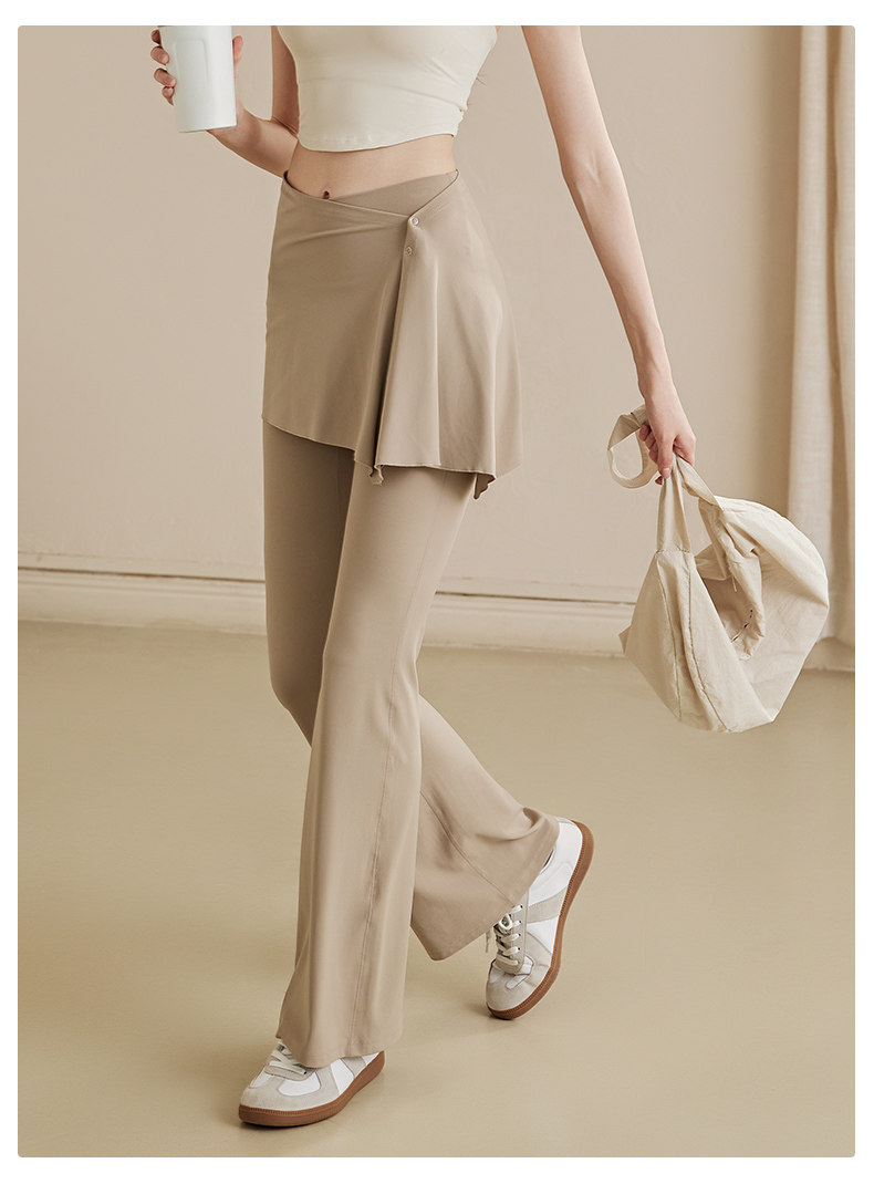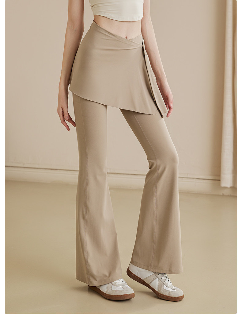 Fake Two-Piece Cover-Up Skirt Yoga Pants for Women, High-Waisted, Hip-Lifting, Pilates Training, Slimming, Flared Wide-Leg Fitness Pants