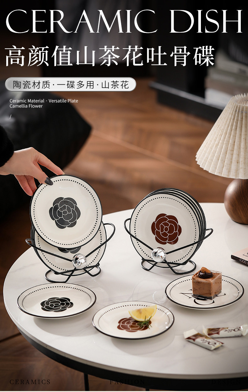 Bone spitting dish household new dining table garbage dish spitting bone dish light luxury high-end dish ceramic fruit dish