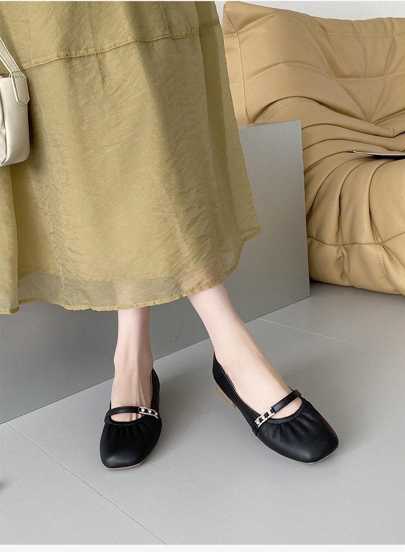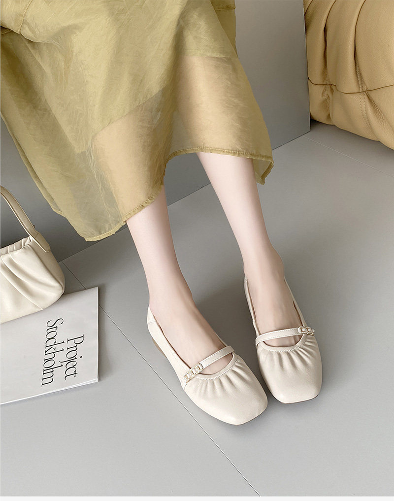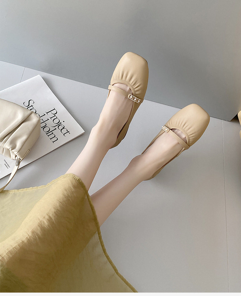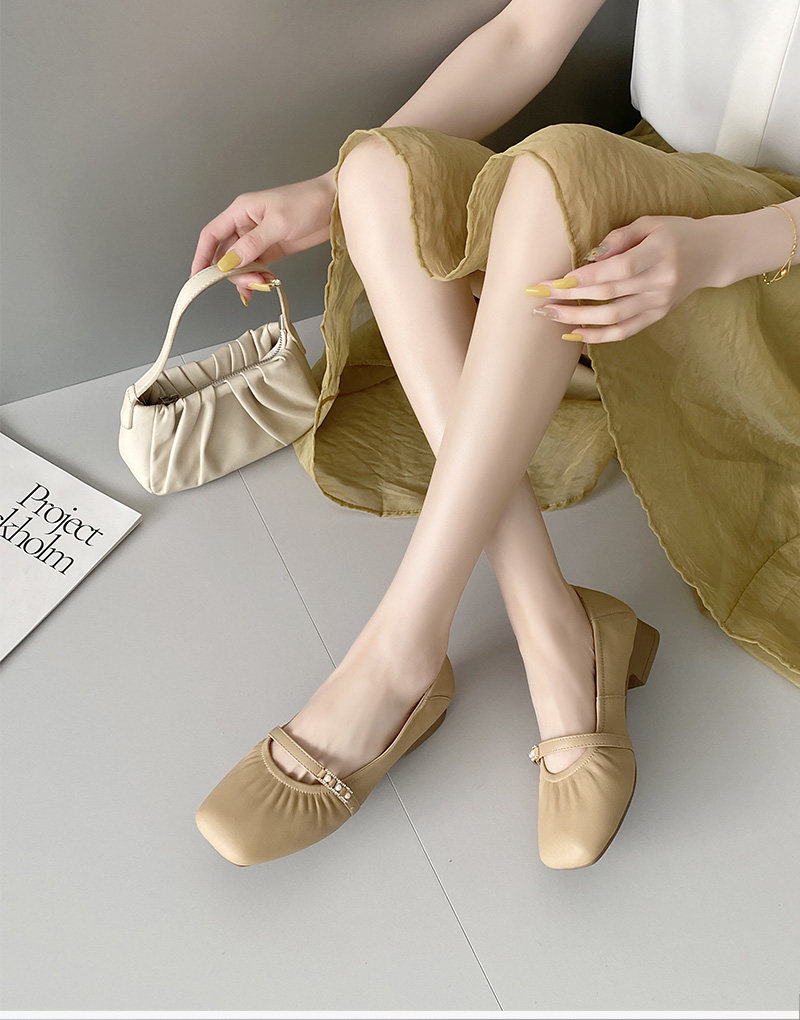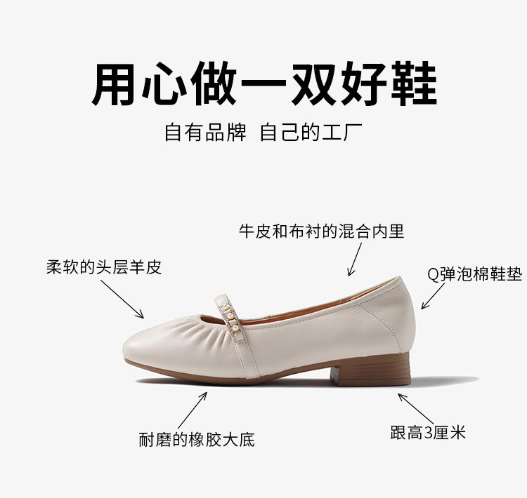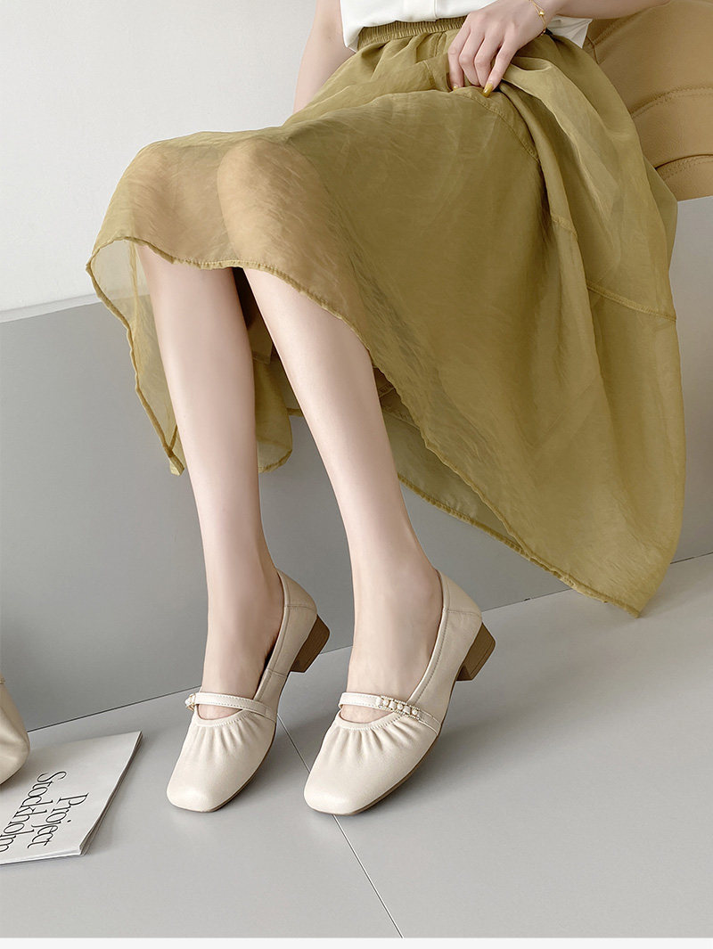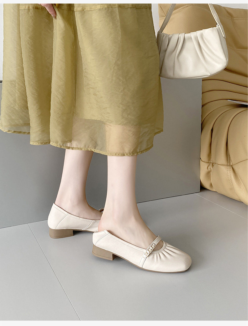 Sheepskin single shoes for women, low heel, soft leather, soft surface, soft sole, genuine leather, shallow mouth Mary Jane, comfortable and versatile pearl small leather shoes