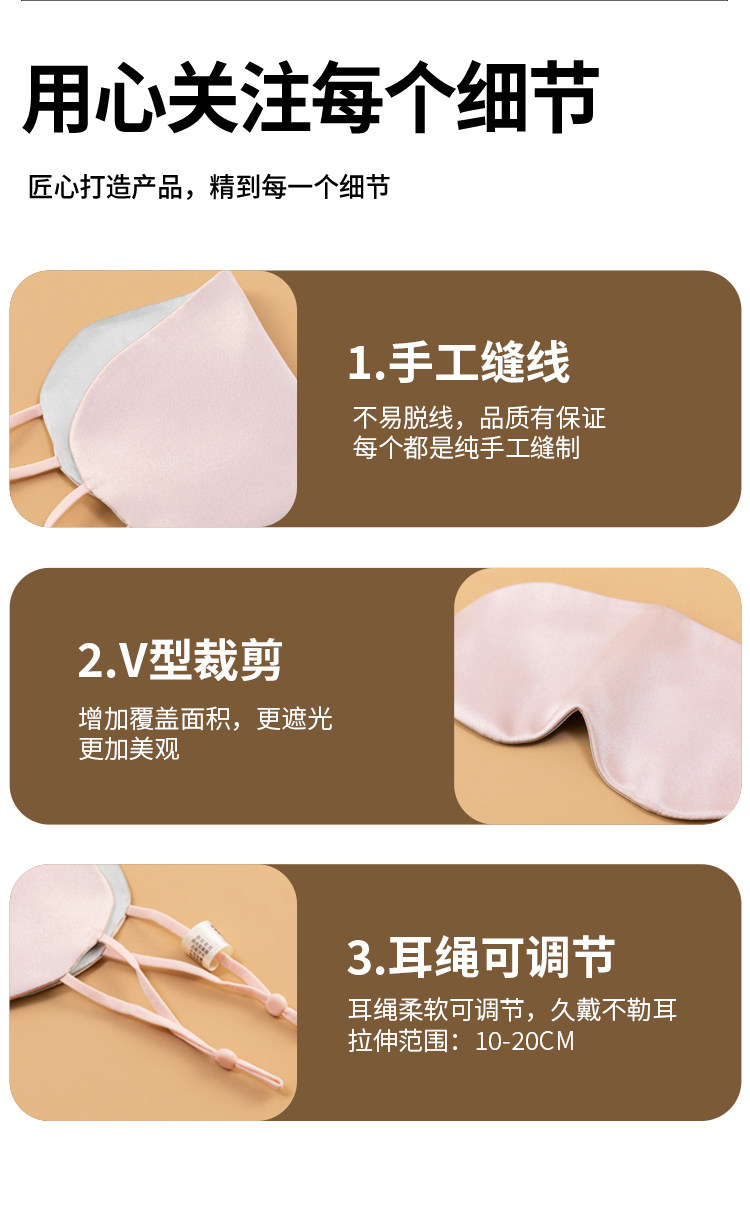 Lightweight Silk Eye Mask, 100% Mulberry Silk, Ear-Hanging Strap, Pull-Over Style, Sleep Shading, Nap, 19.5 Momme